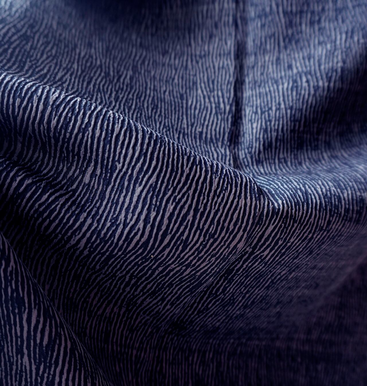 深い紺色が染められた小紋です。