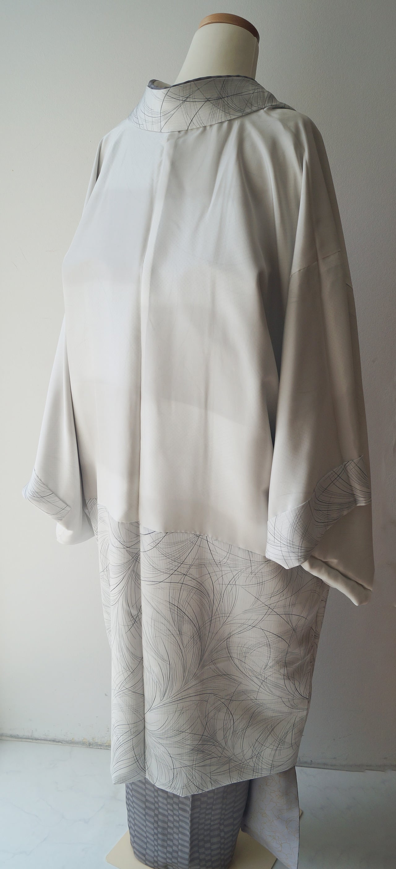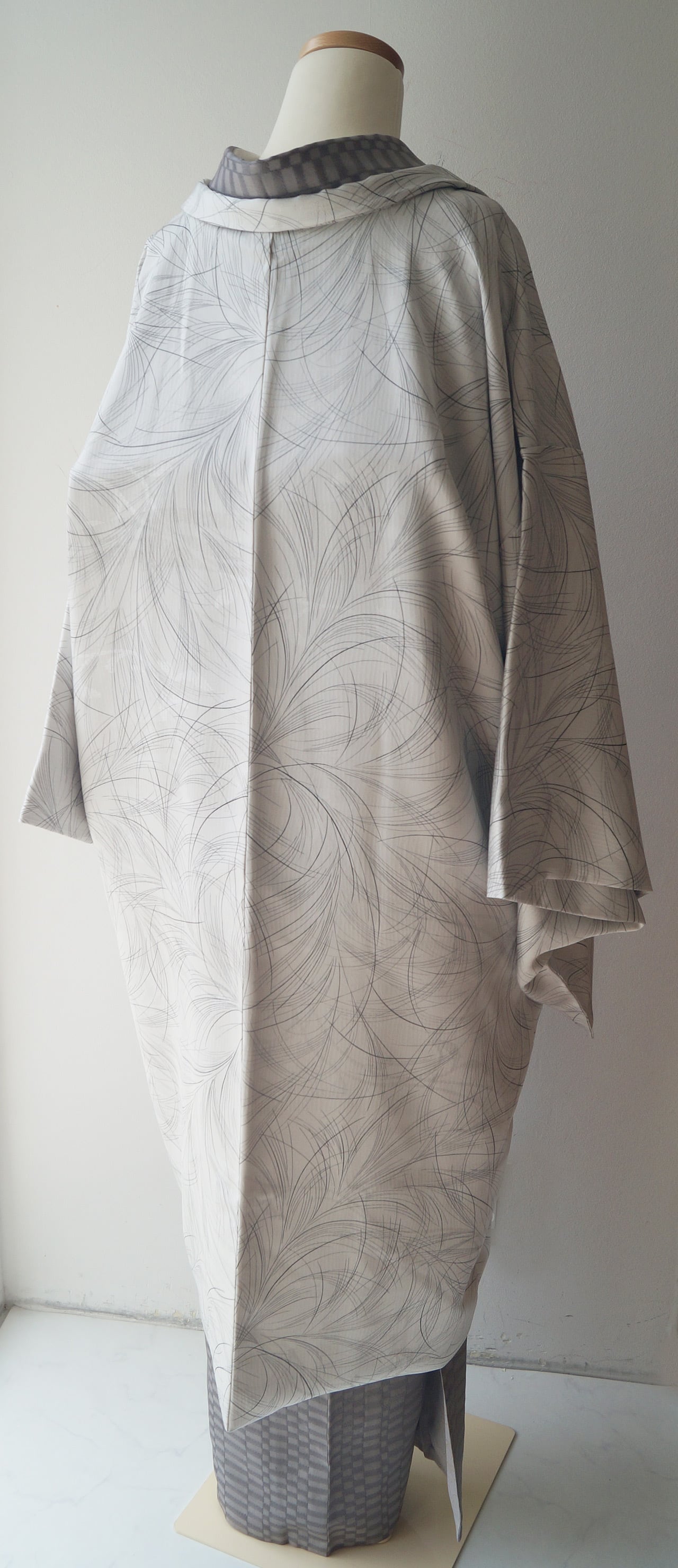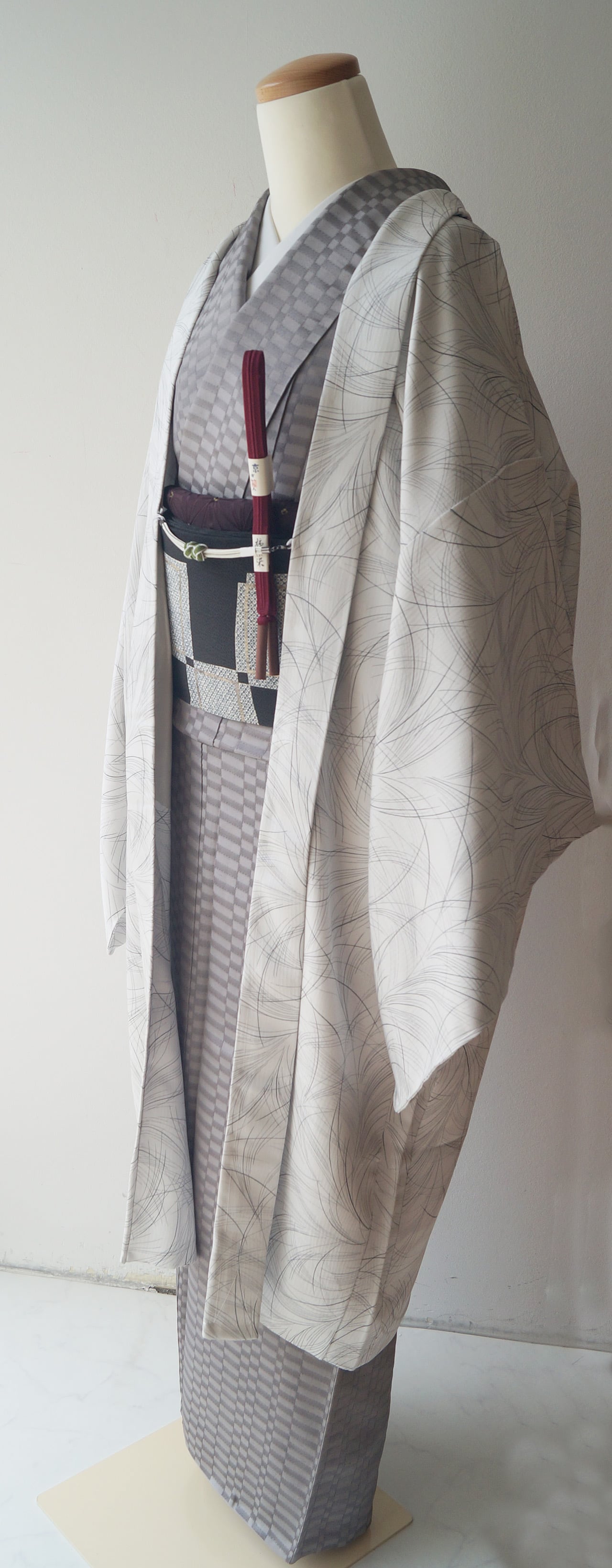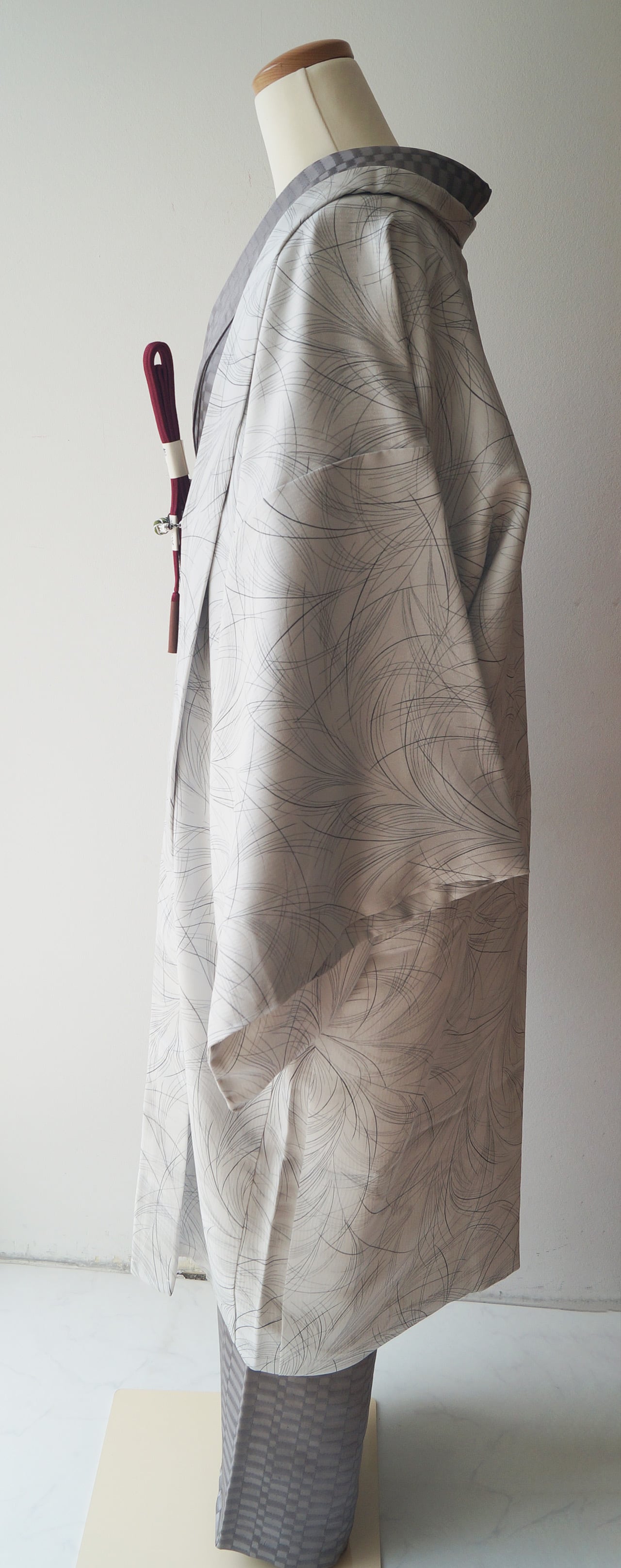 【袷羽織】白練色 抽象植物柄 袷羽織