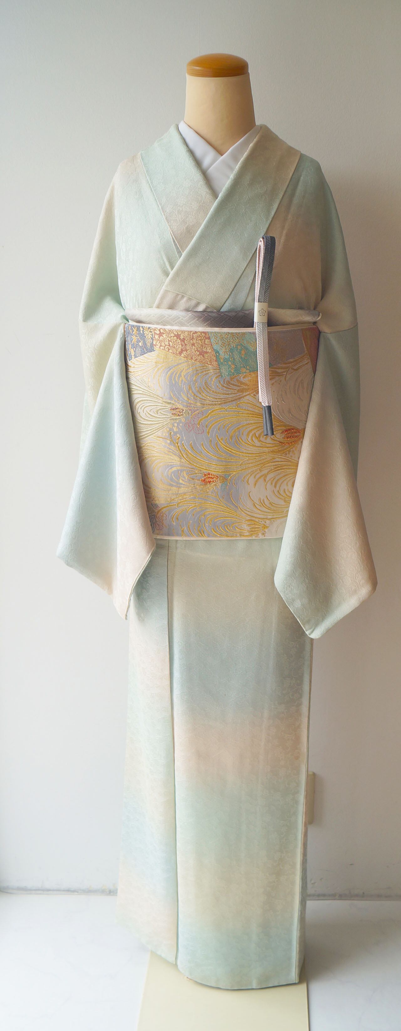 ふんわりとした象牙色で段暈しが織り出され