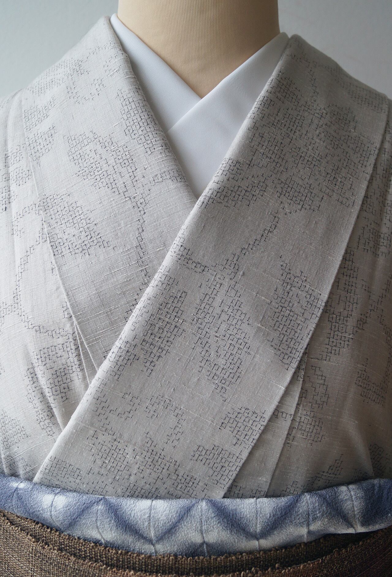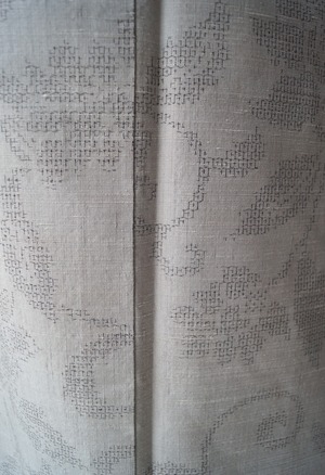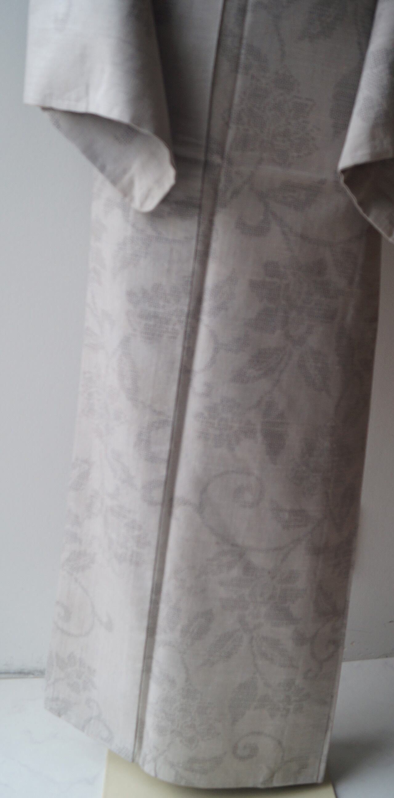 白鼠色に花唐草文の紬です。