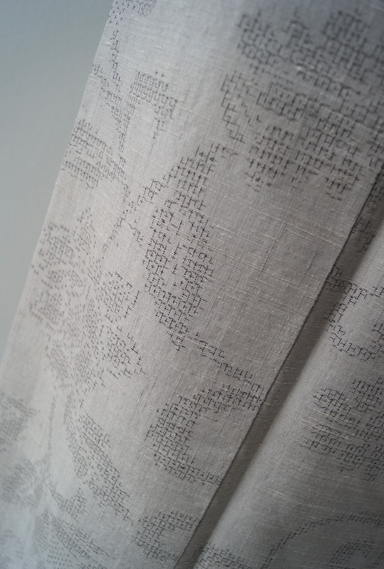 若干の張りと織節の残る紬地