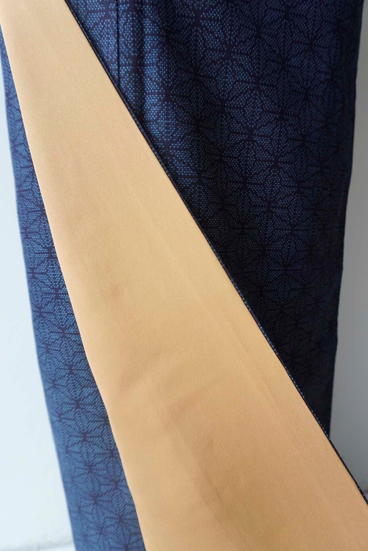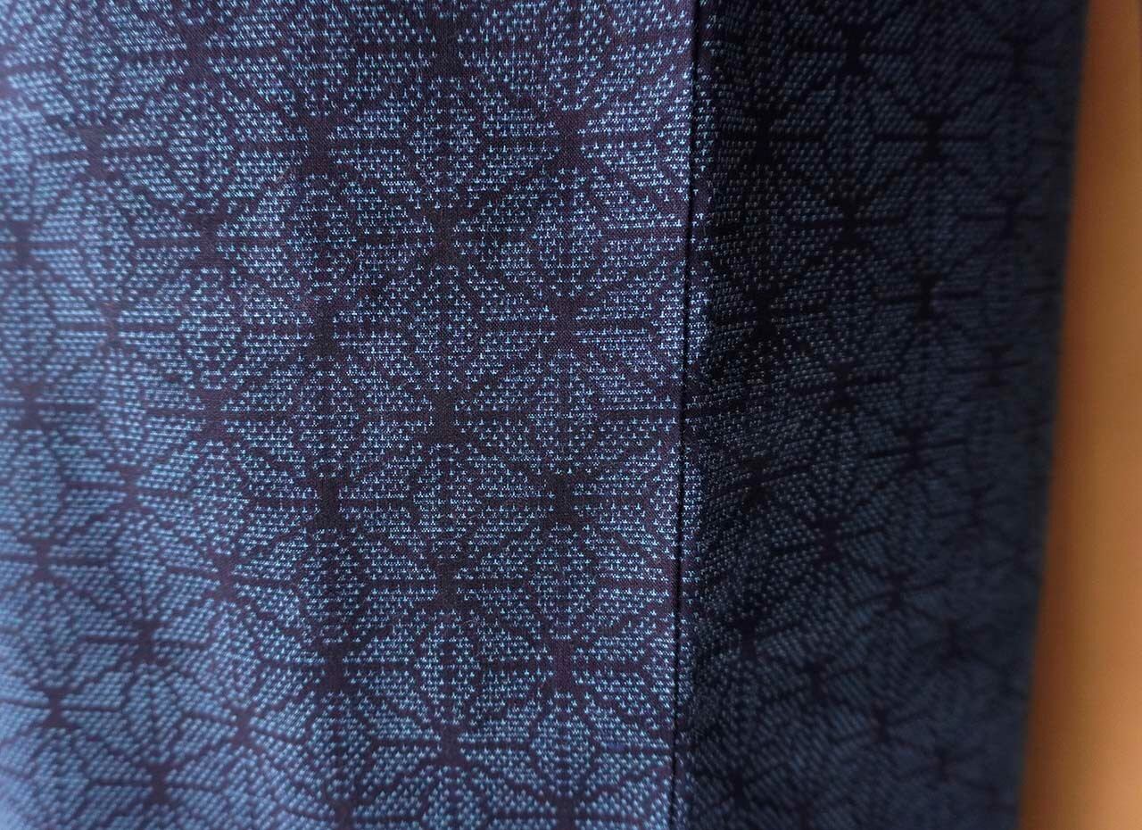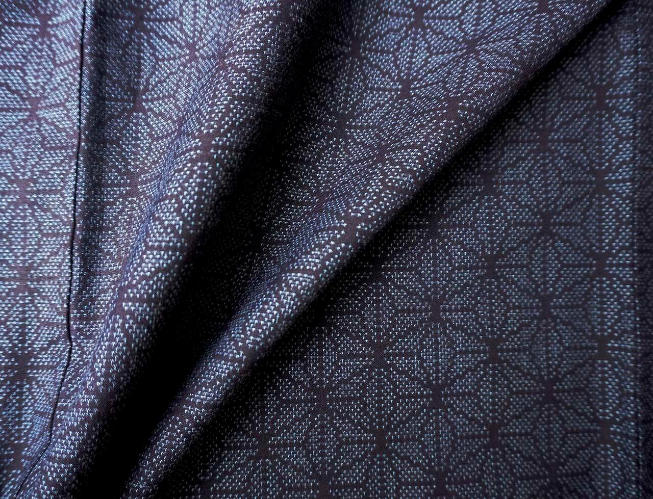 藍色×青藤色の麻の葉文の綿薩摩紬です。