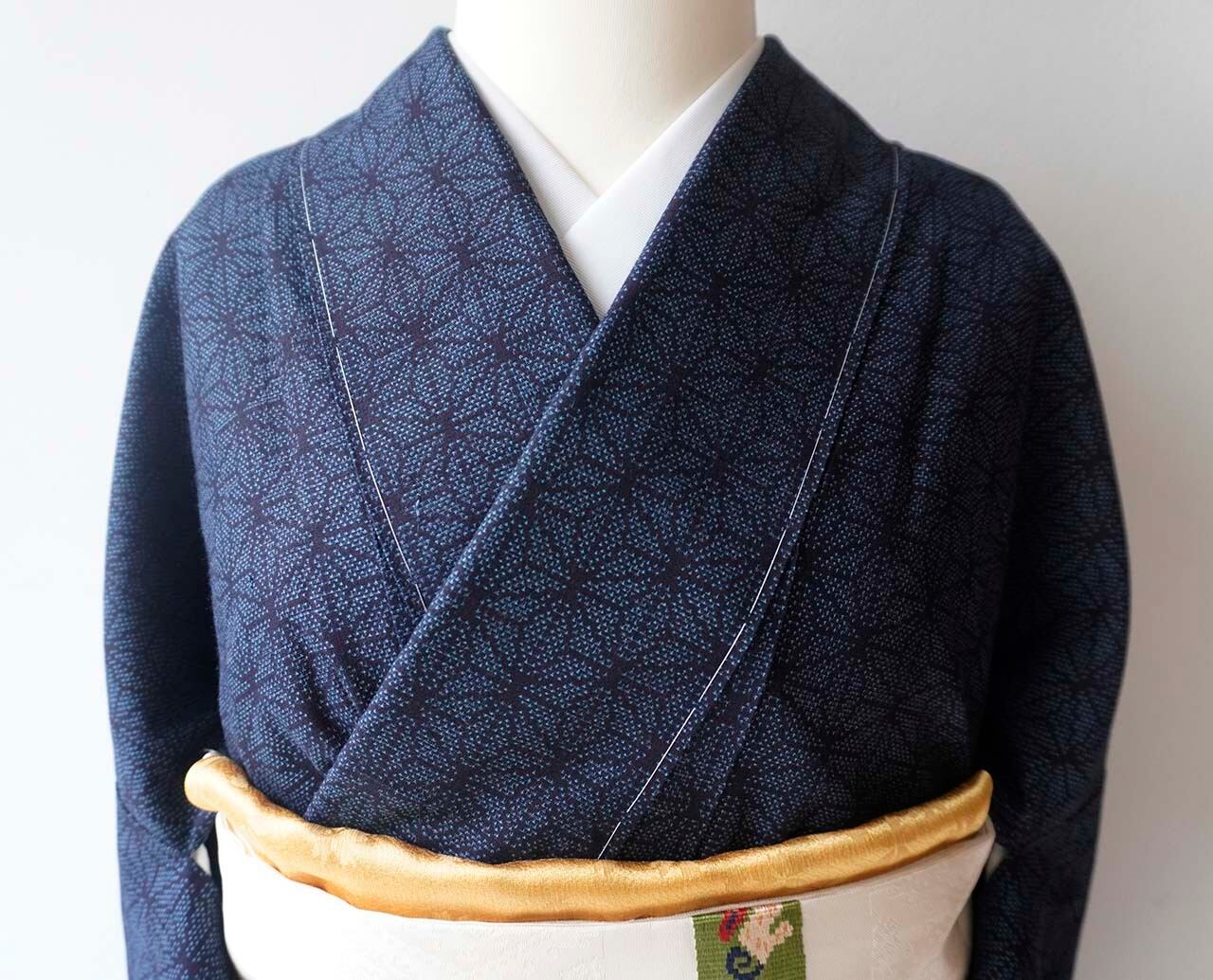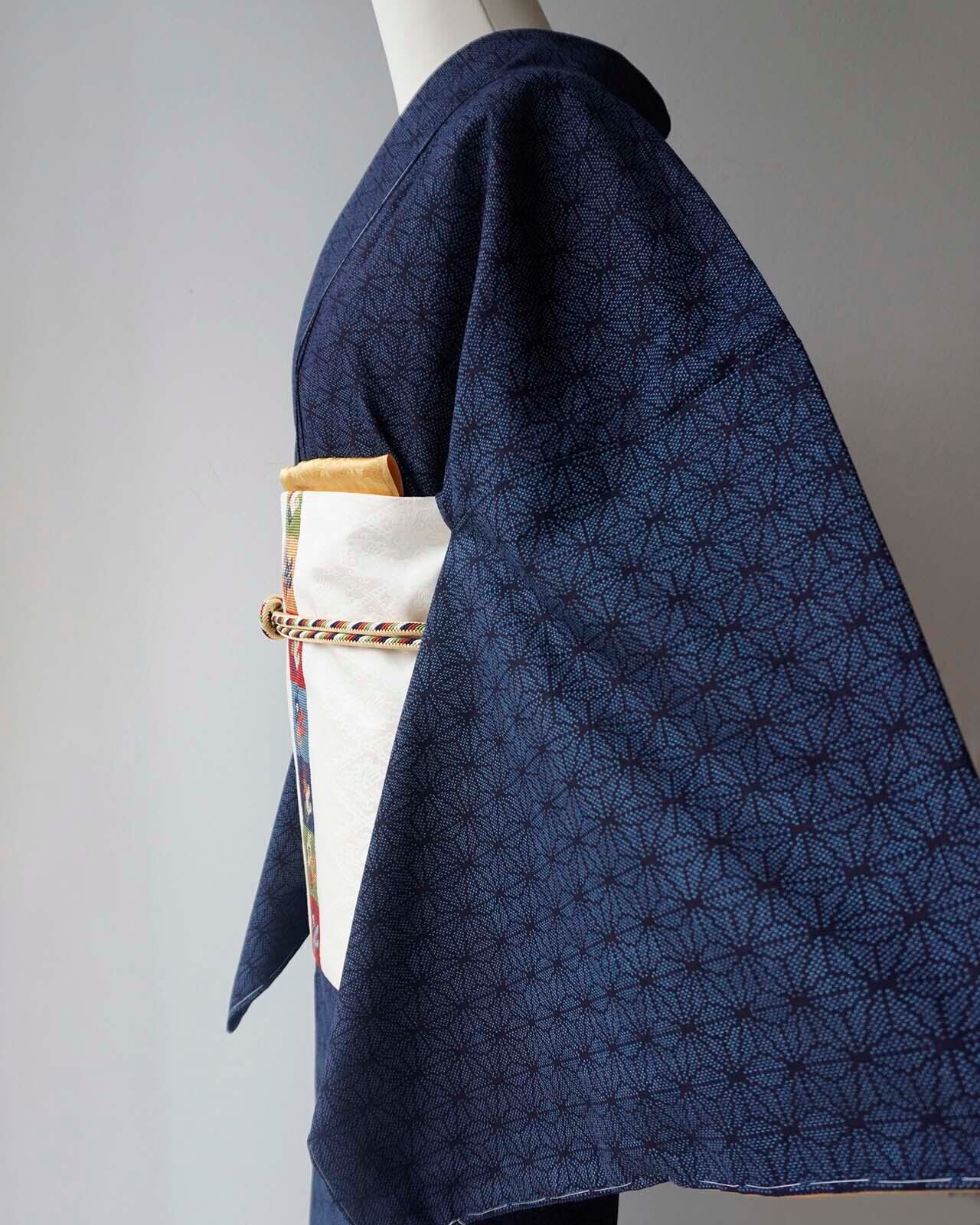 お顔映りの良い藍地に正統派の麻の葉文様。