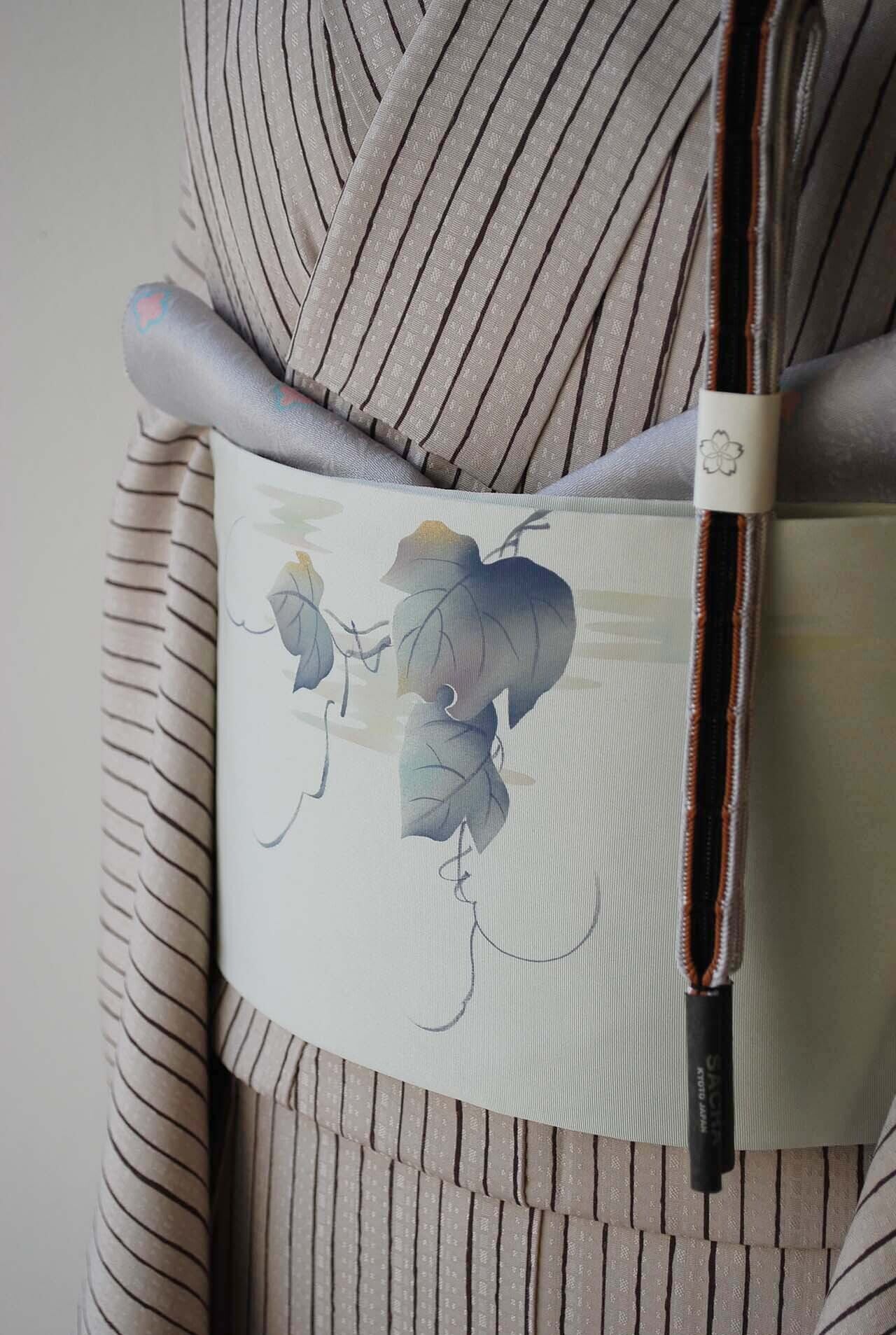 【なごや帯】千草鼠地 蔦文塩瀬なごや帯