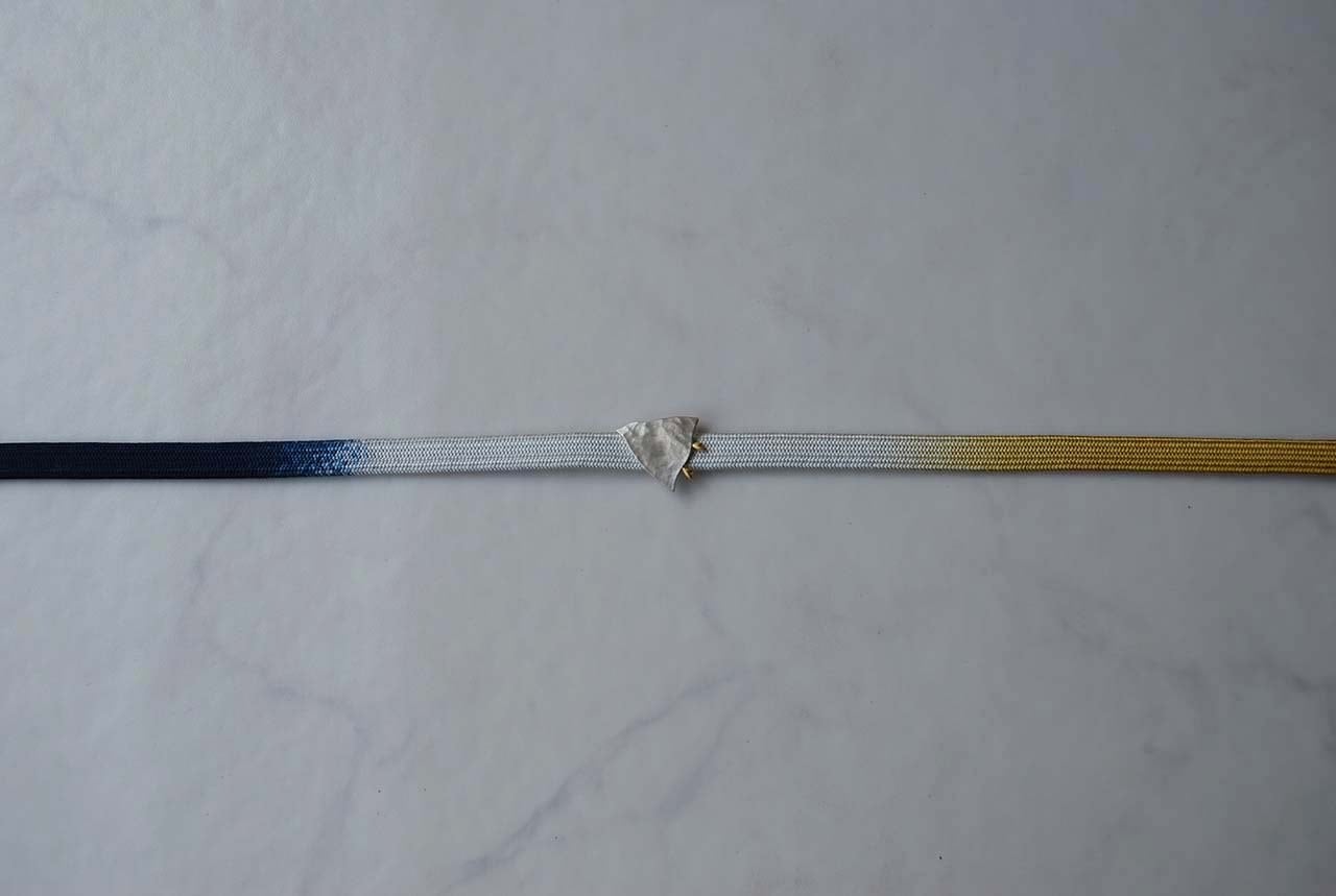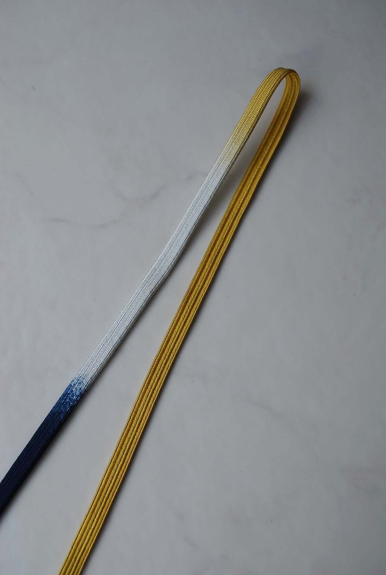 【帯締め】藤黄×濃藍 三色暈し三分紐 250912㉟