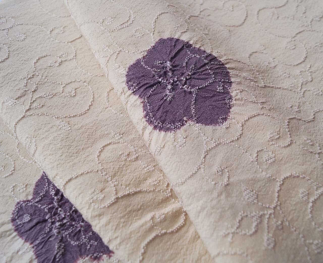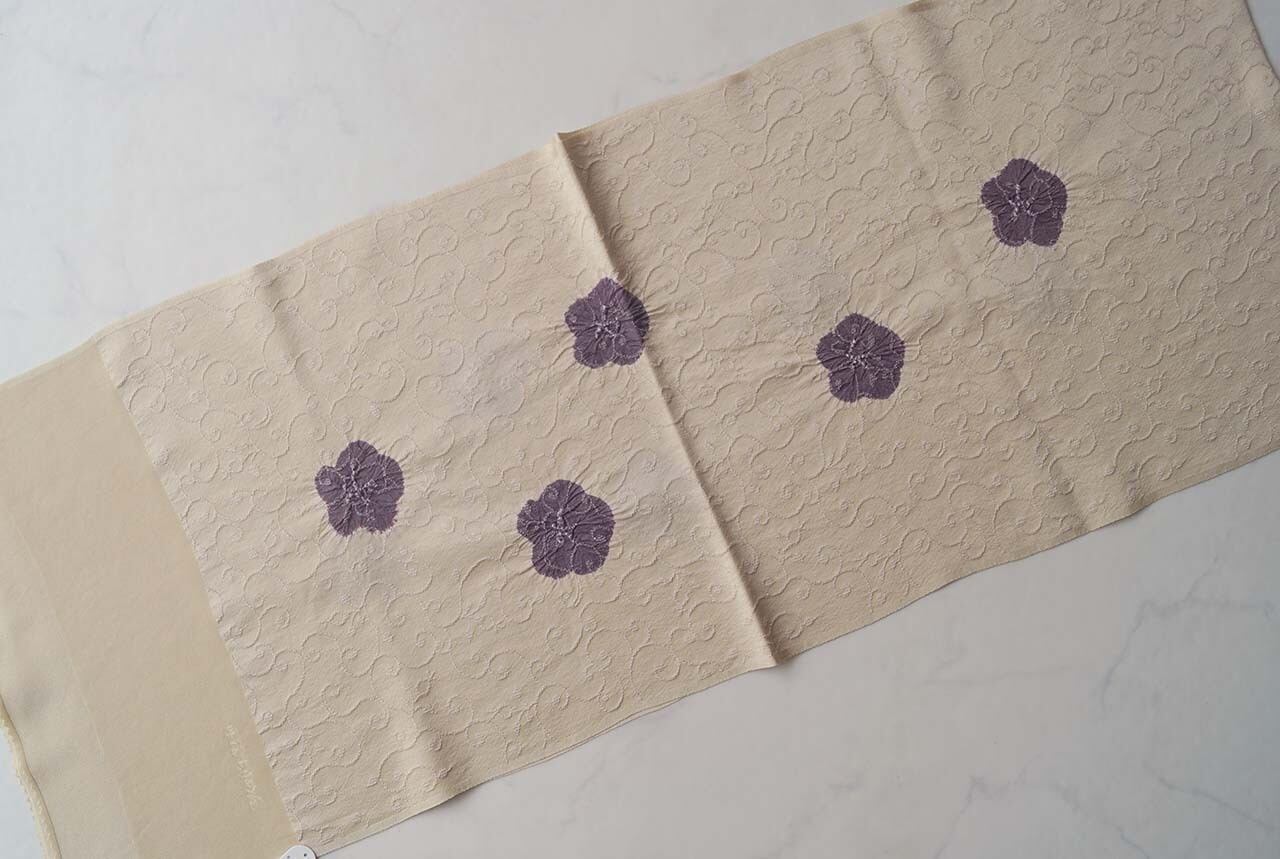 【衿秀・帯揚げ】蒸栗色×濃色 帯揚げ 防染糸 唐草地紋 梅花飛び絞り 251018⑦