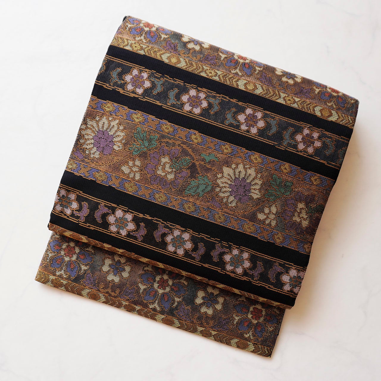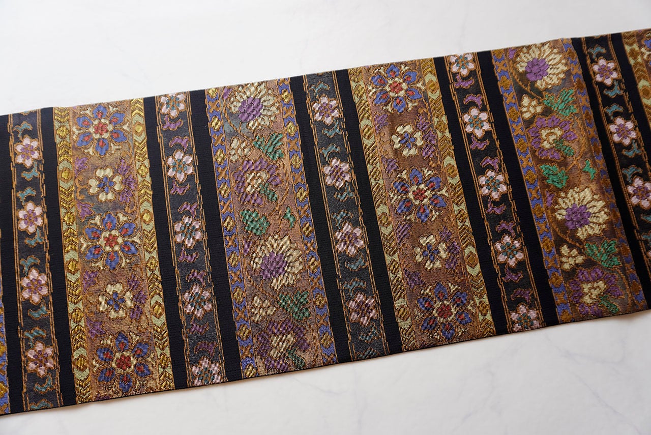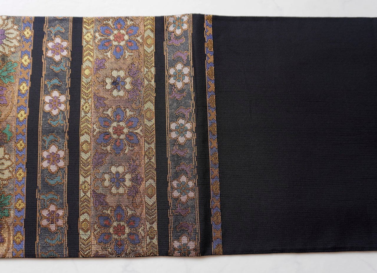 【ふくろ帯】東京ますいわや扱い 黒地 花横段文 ふくろ帯