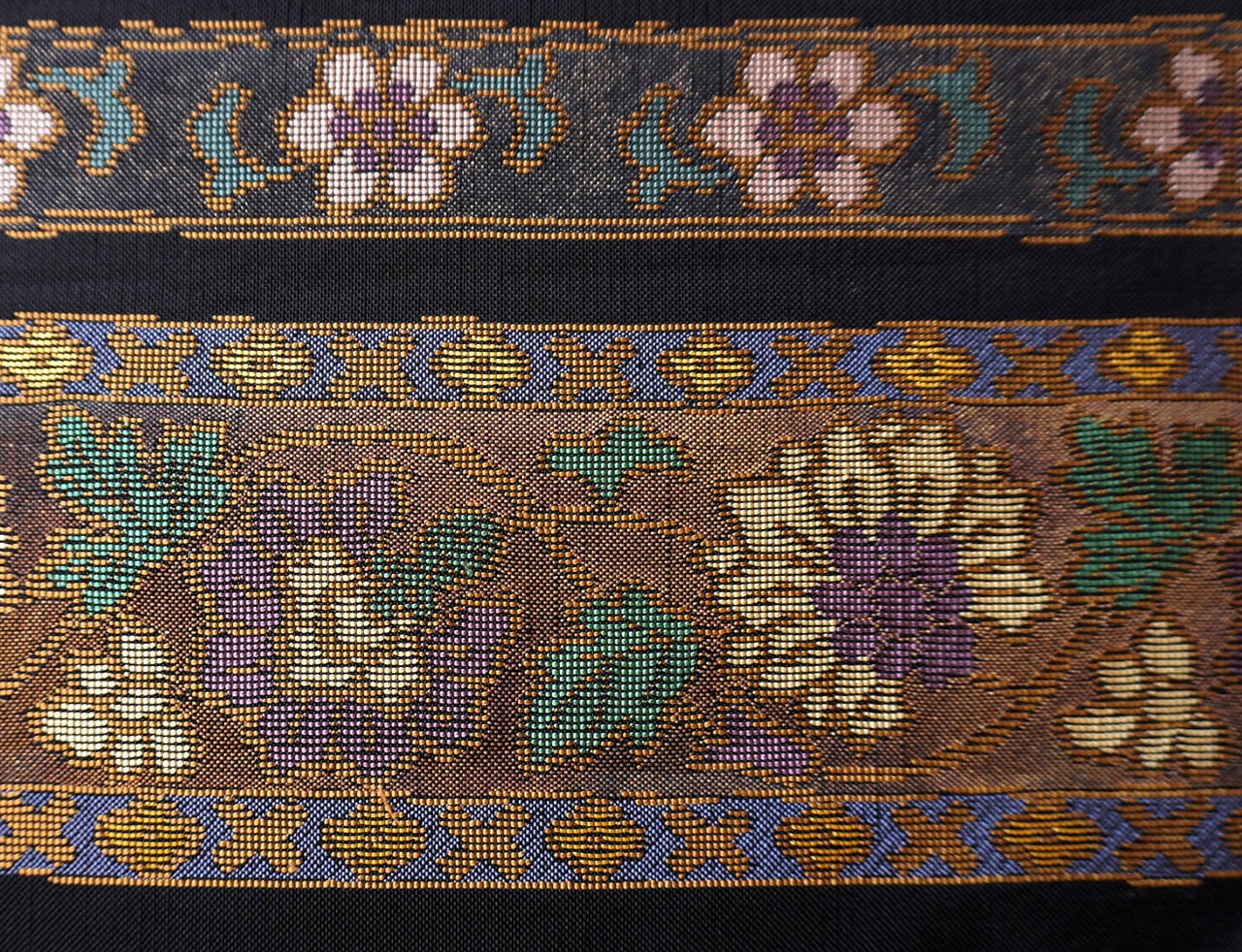 横段状に花文が織り出された