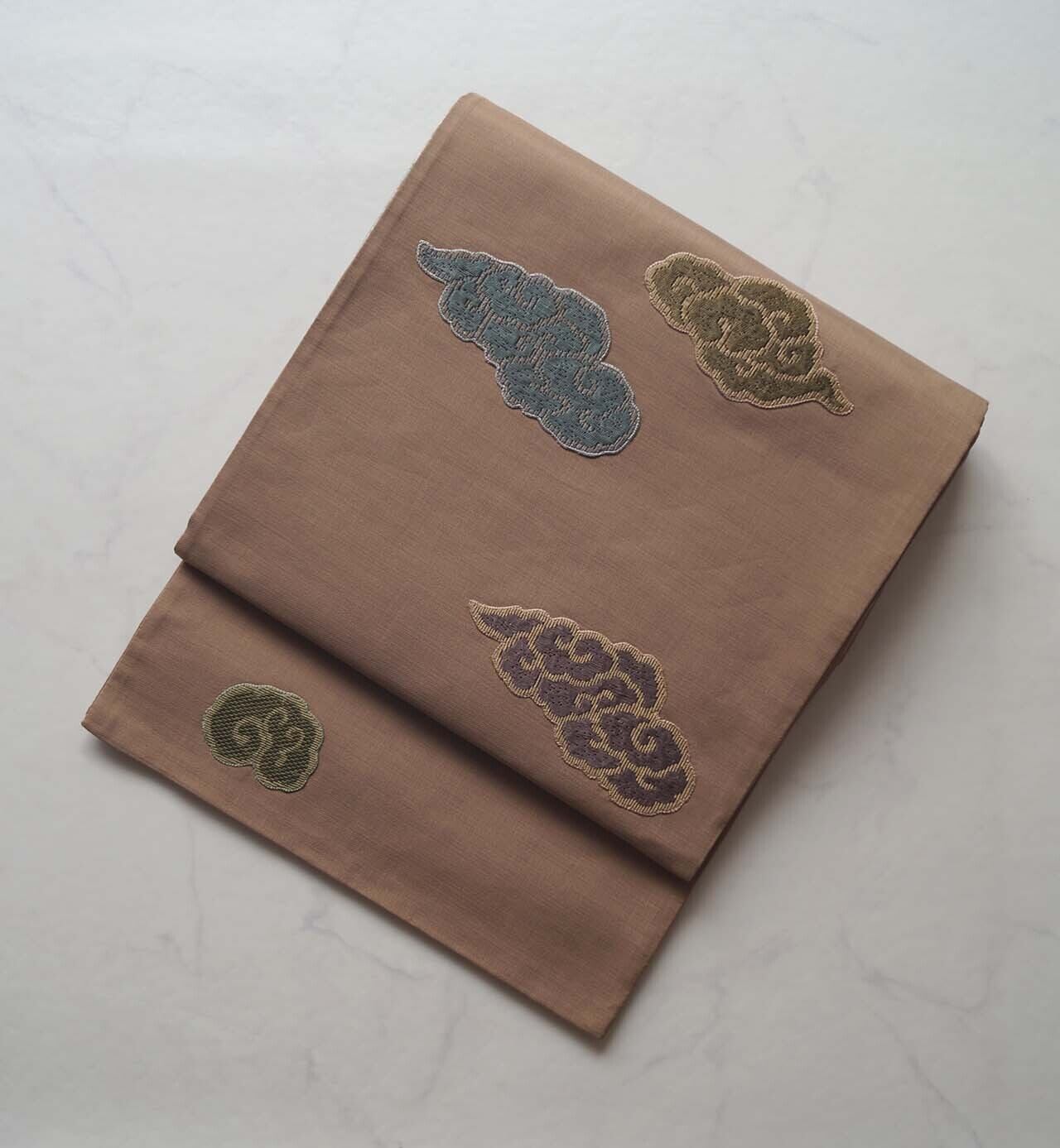 【ふくろ帯】渋紙色地 瑞雲文 ふくろ帯