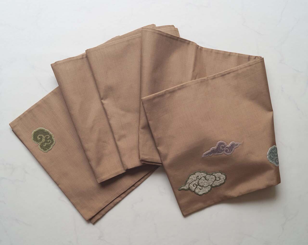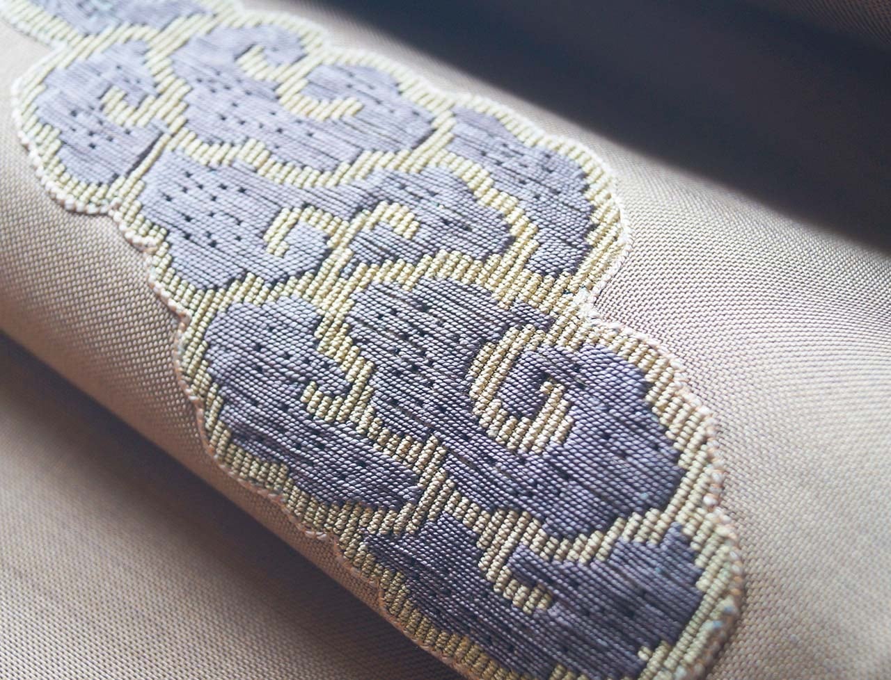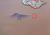 瑞雲の渦は刺繍によって織り出され