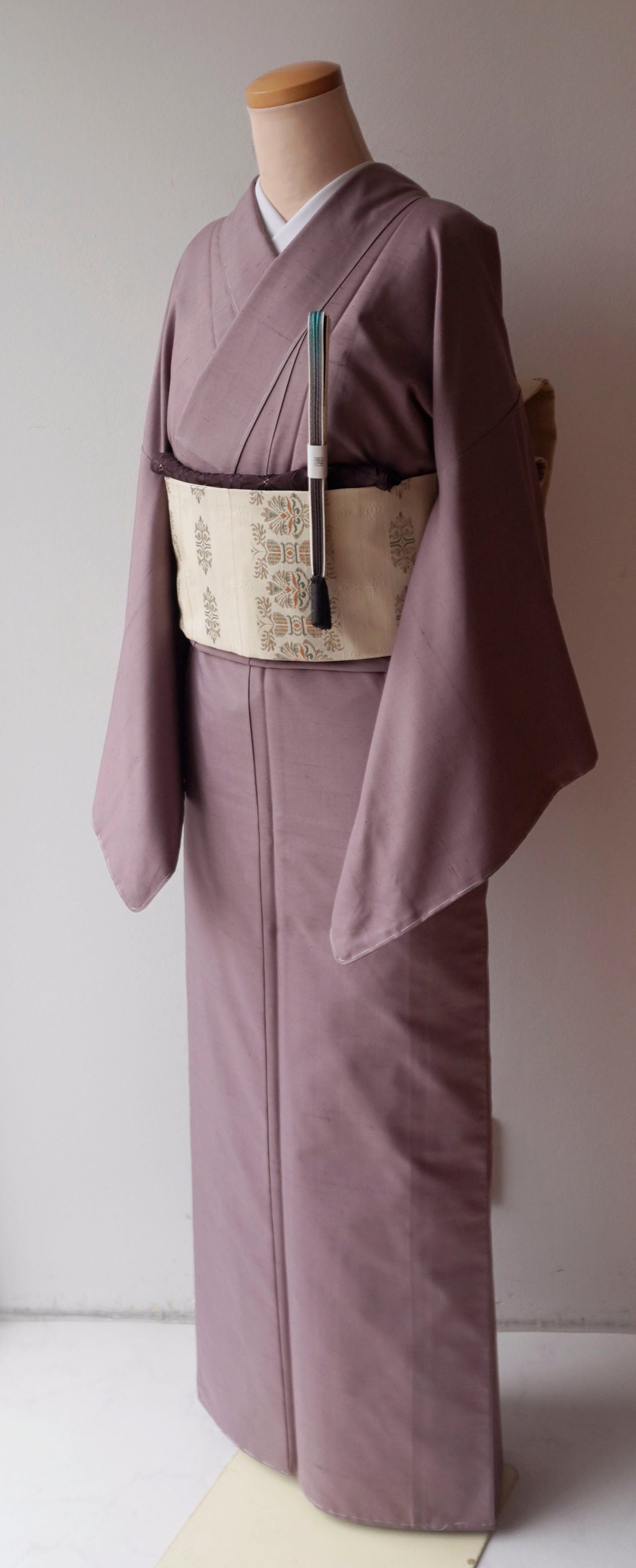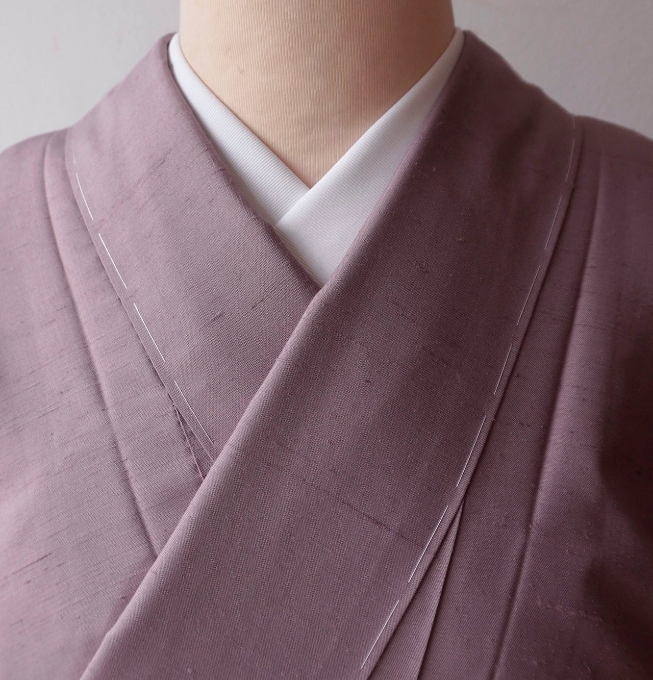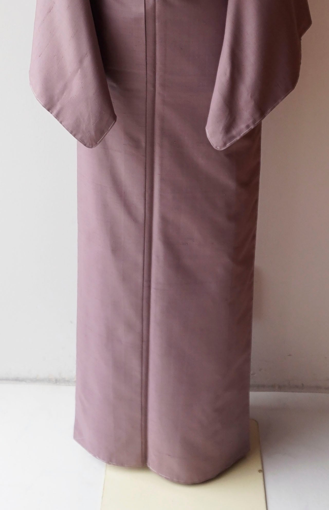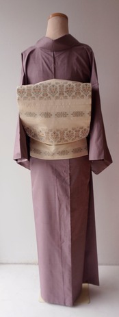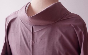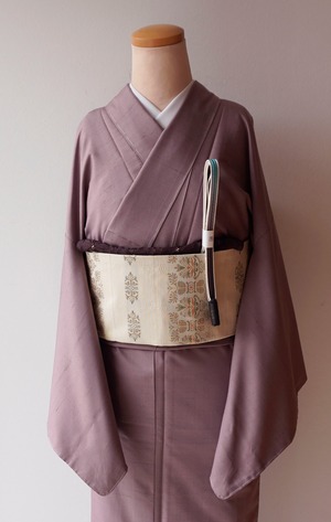 灰味がかった淡い赤紫系のお色の無地紬です。