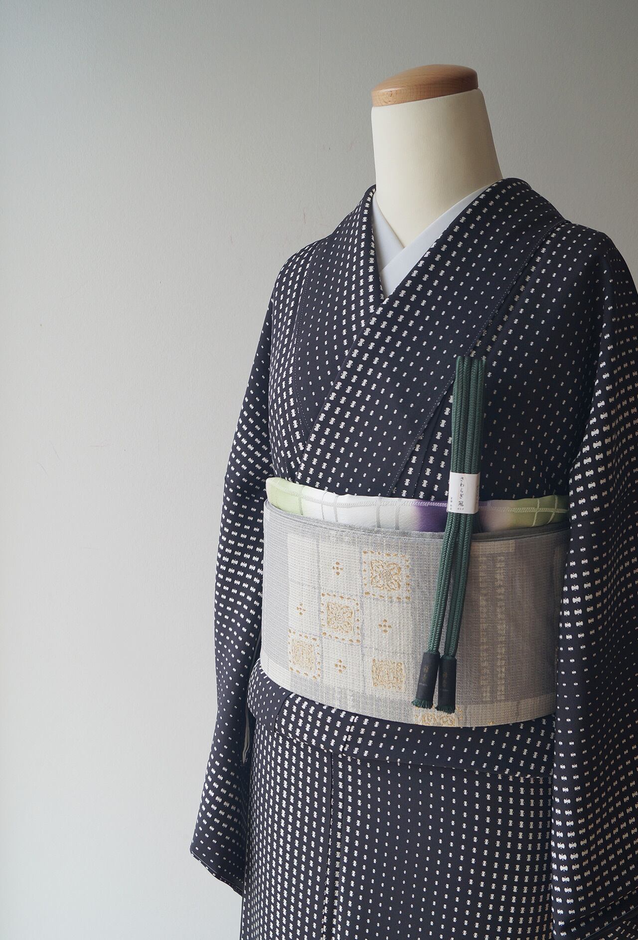 モダンでシンプルなお柄ですので帯合わせも幅広く、