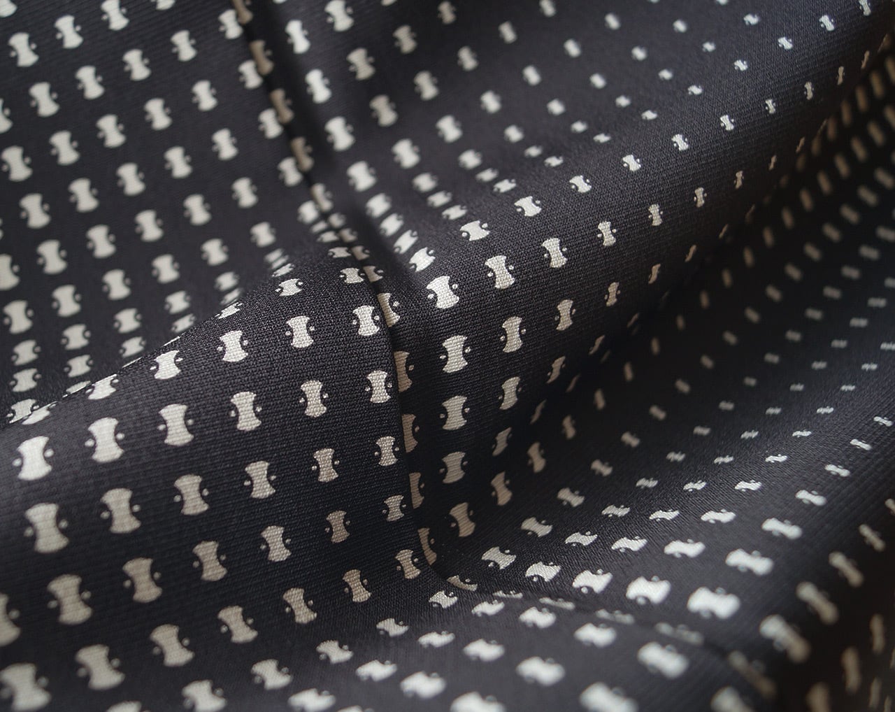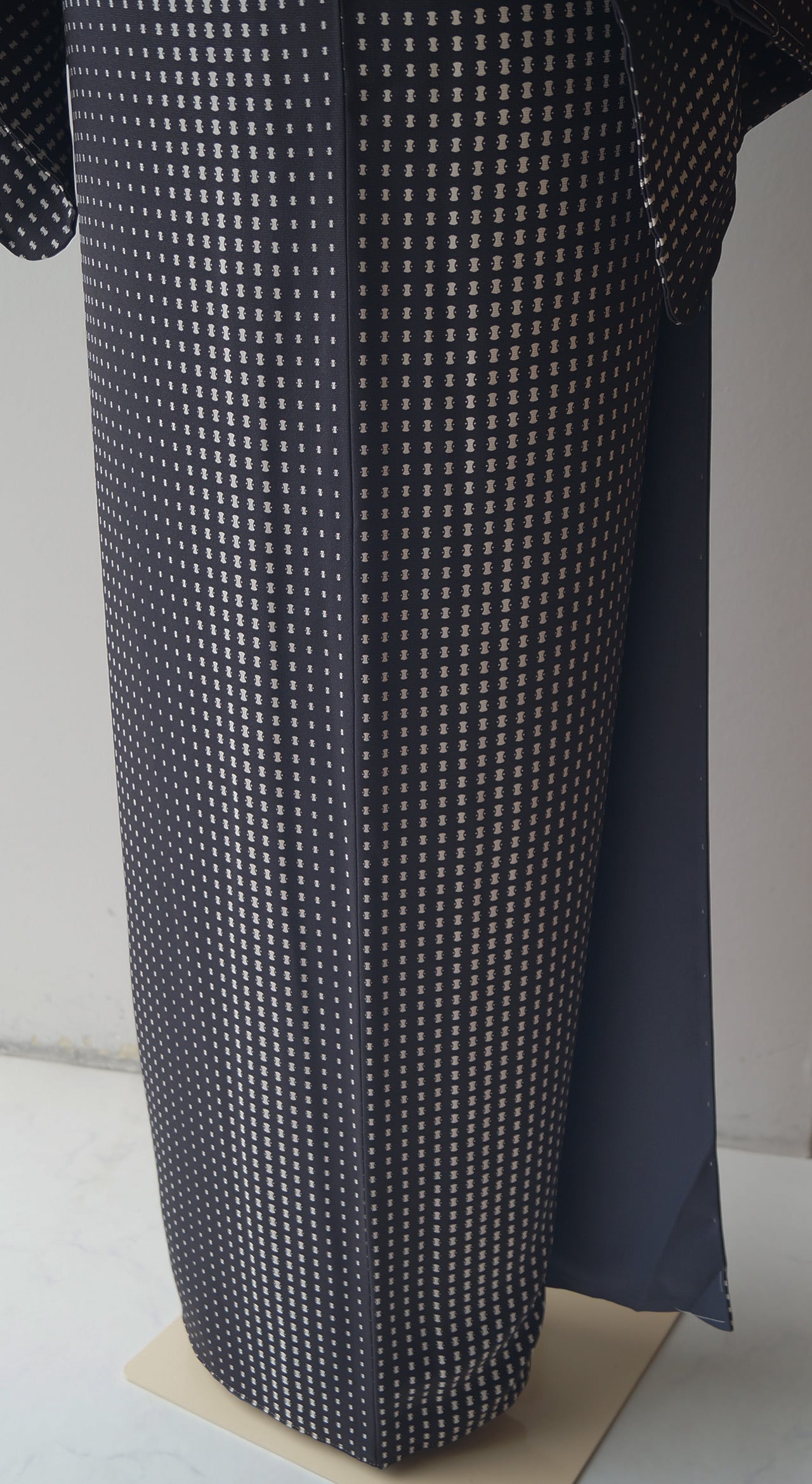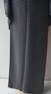 黒地に分銅グラデーション柄の小紋です。