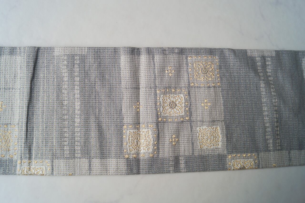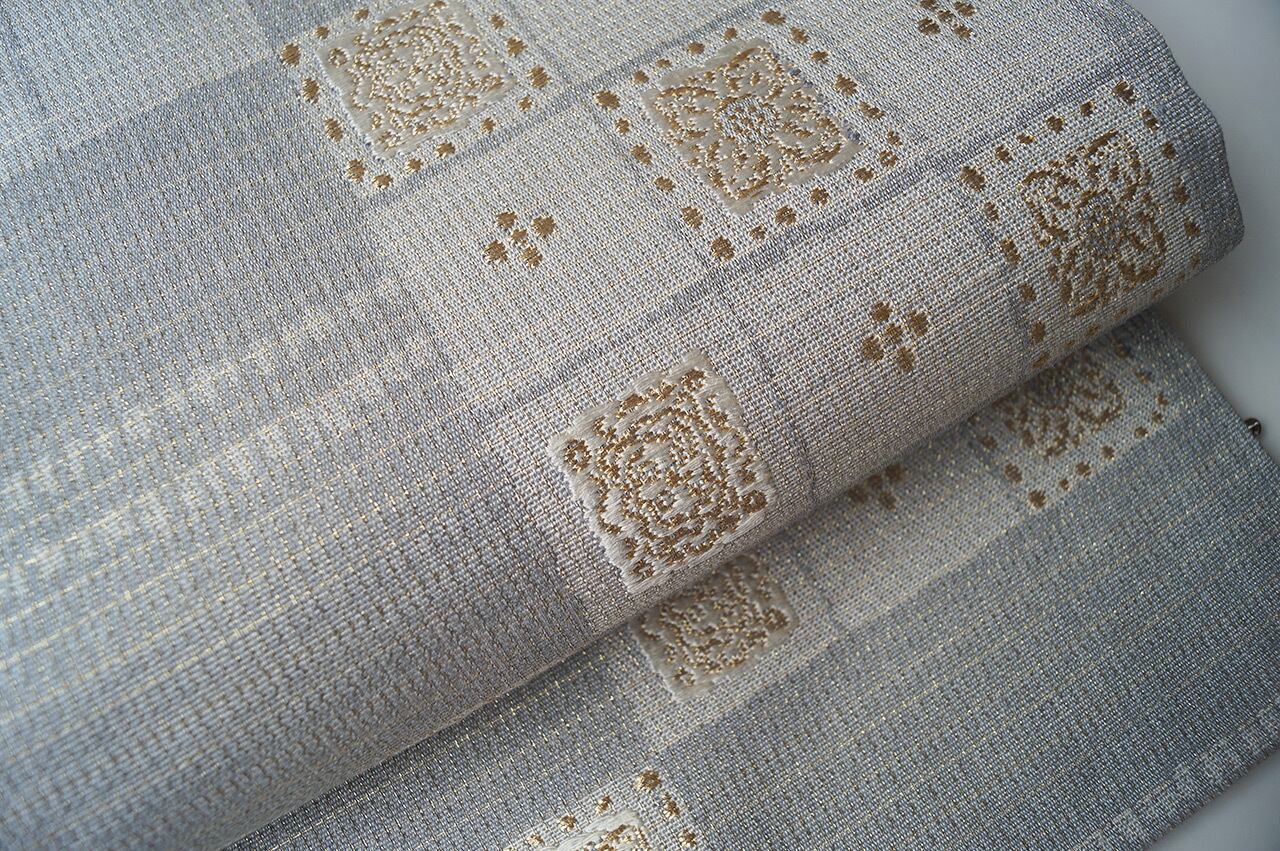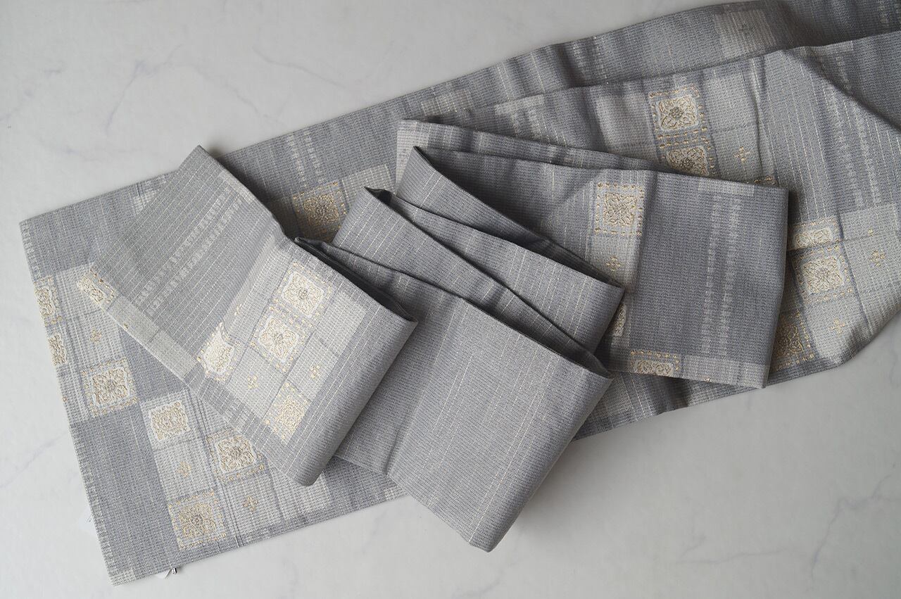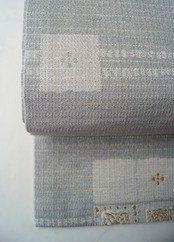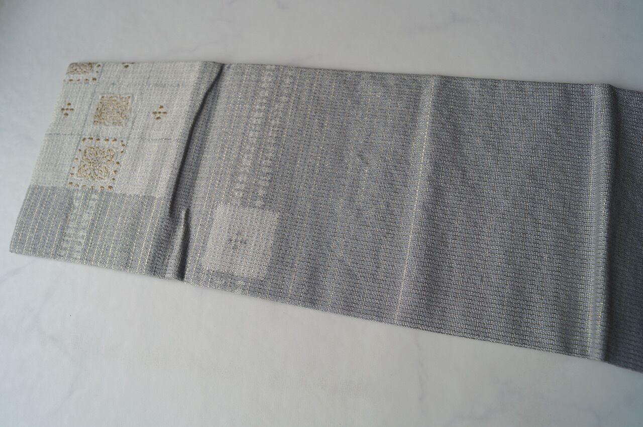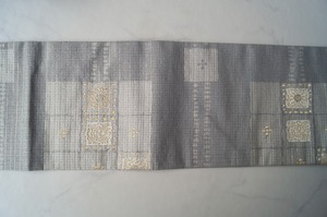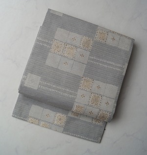 灰青地変わり市松文の紬地なごや帯です。