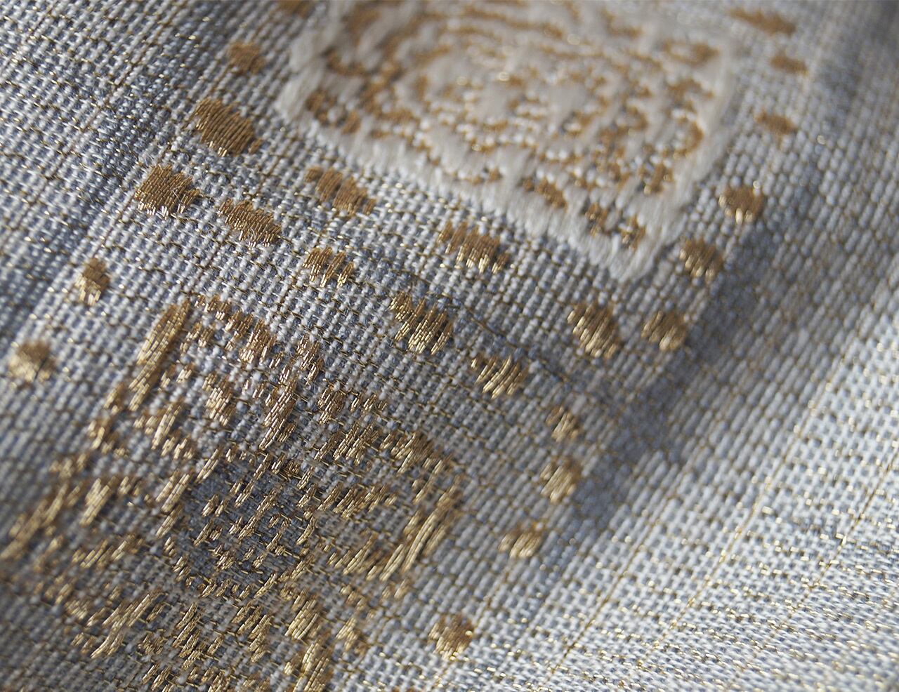 軽めの紬地に金糸が織り込まれており、