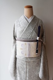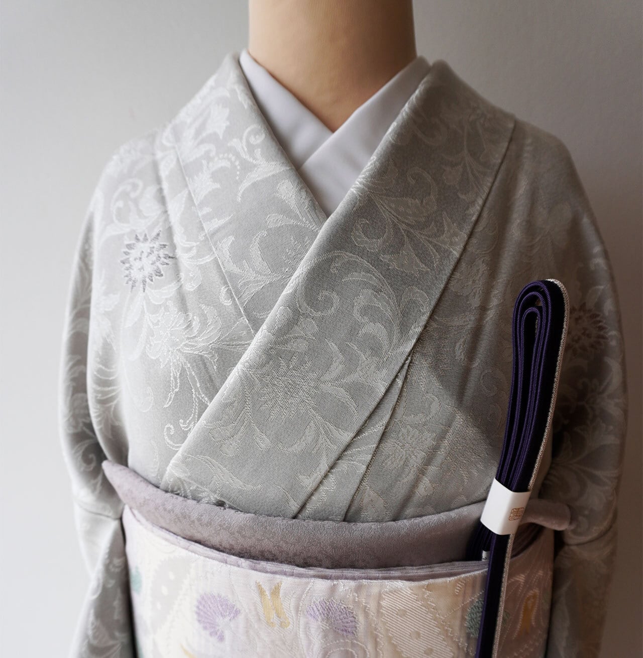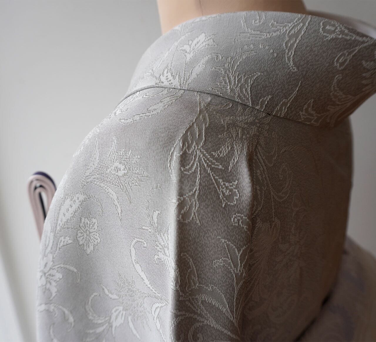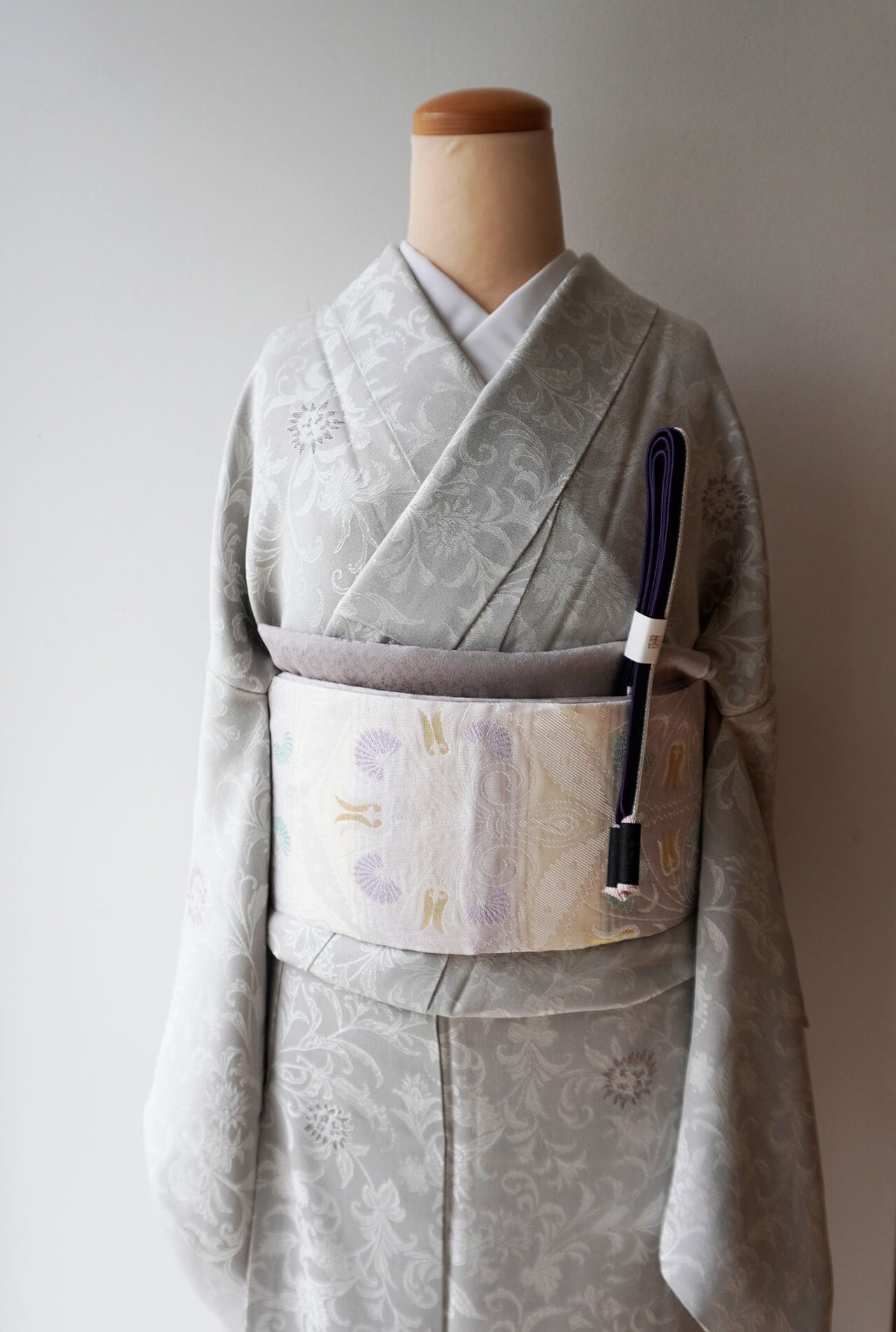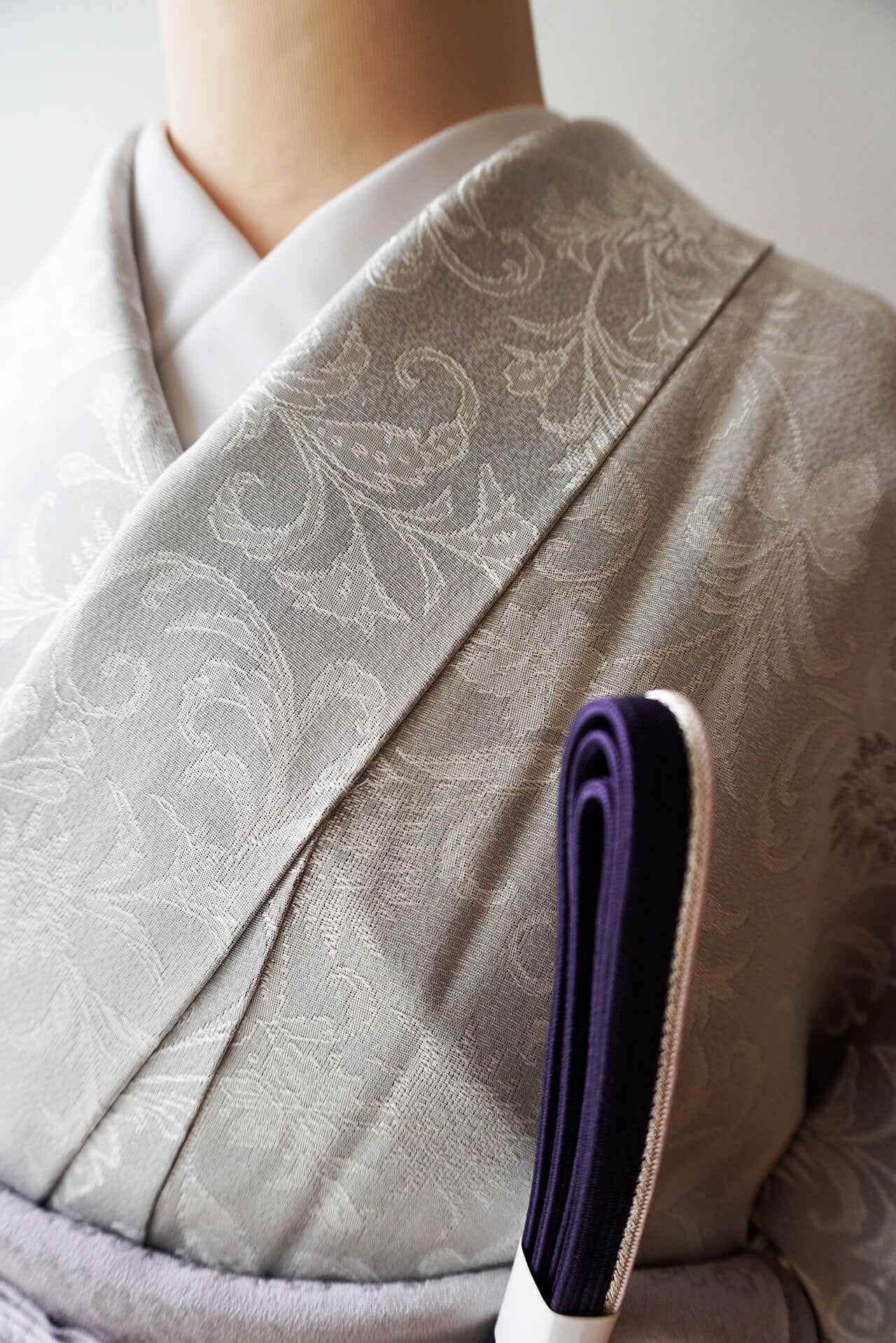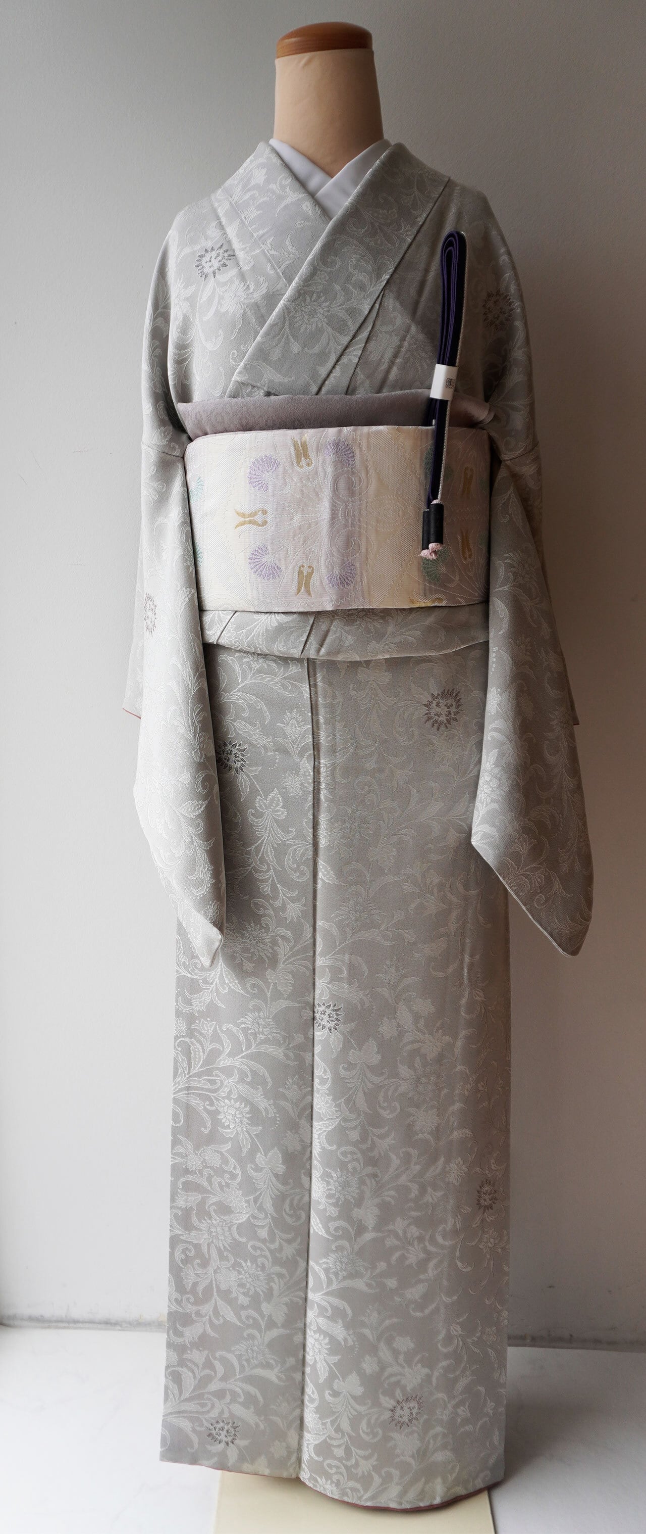 【袷】白鼠色 金唐花織 京都印象派 橋本恵 お召し