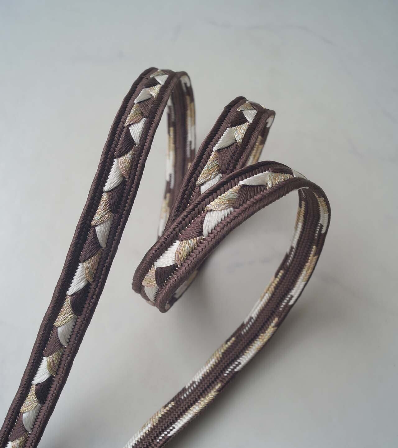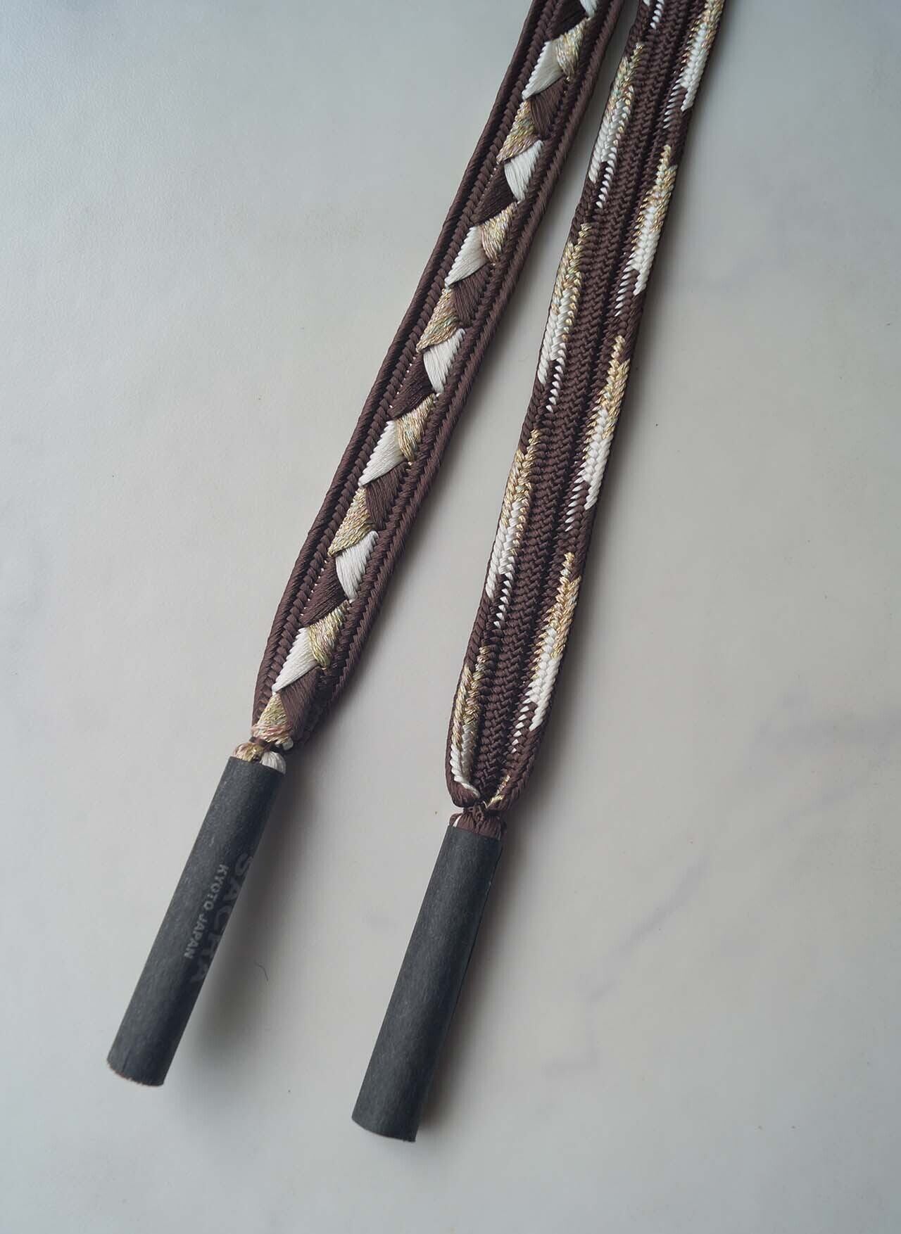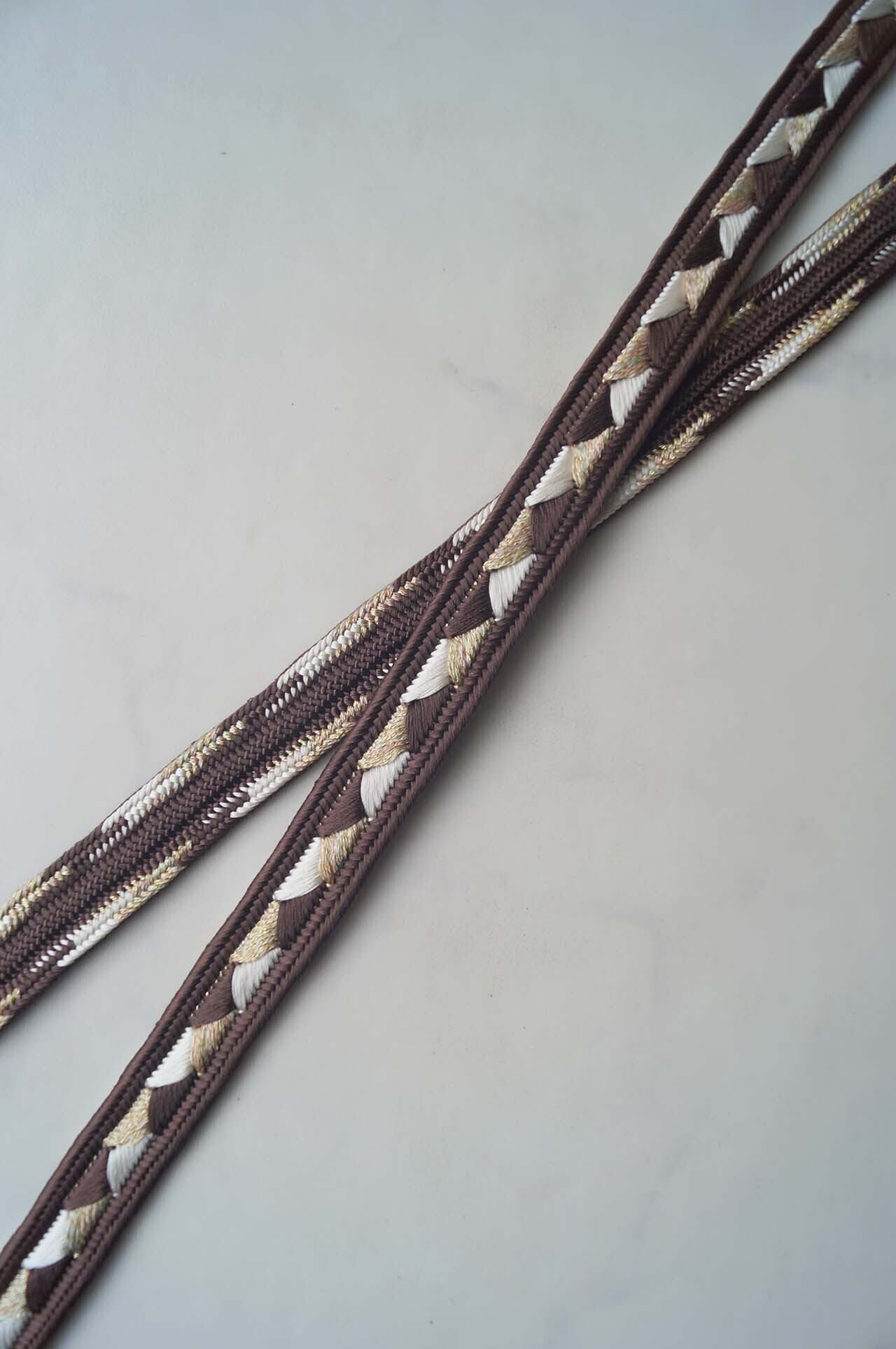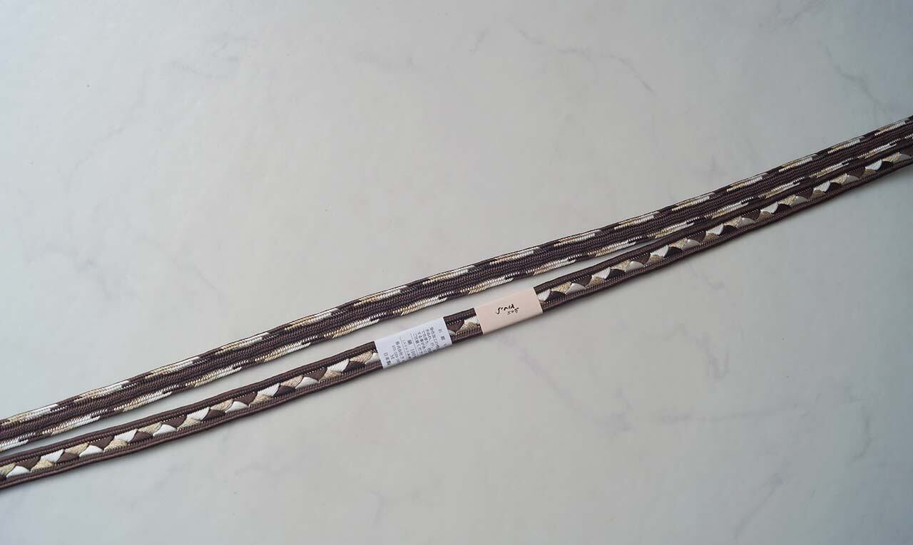 ベースの黒茶色に白色と金糸が交互に織り込まれ、お色味の組み合わせが素敵です。
