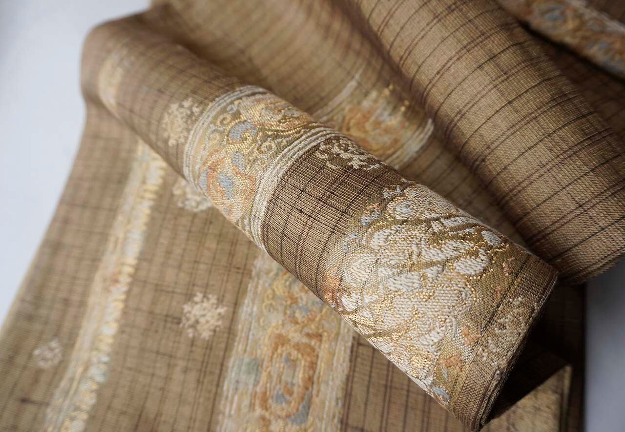 金糸が規則的に織り込まれ、