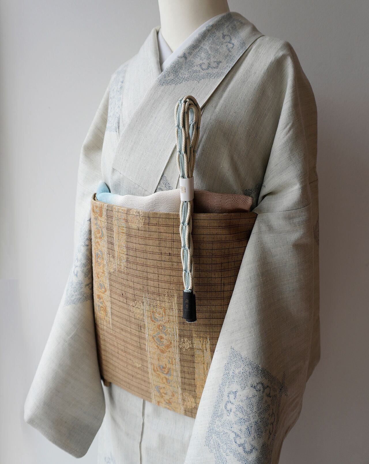 淡いトーンと金糸で表現されたお柄は、