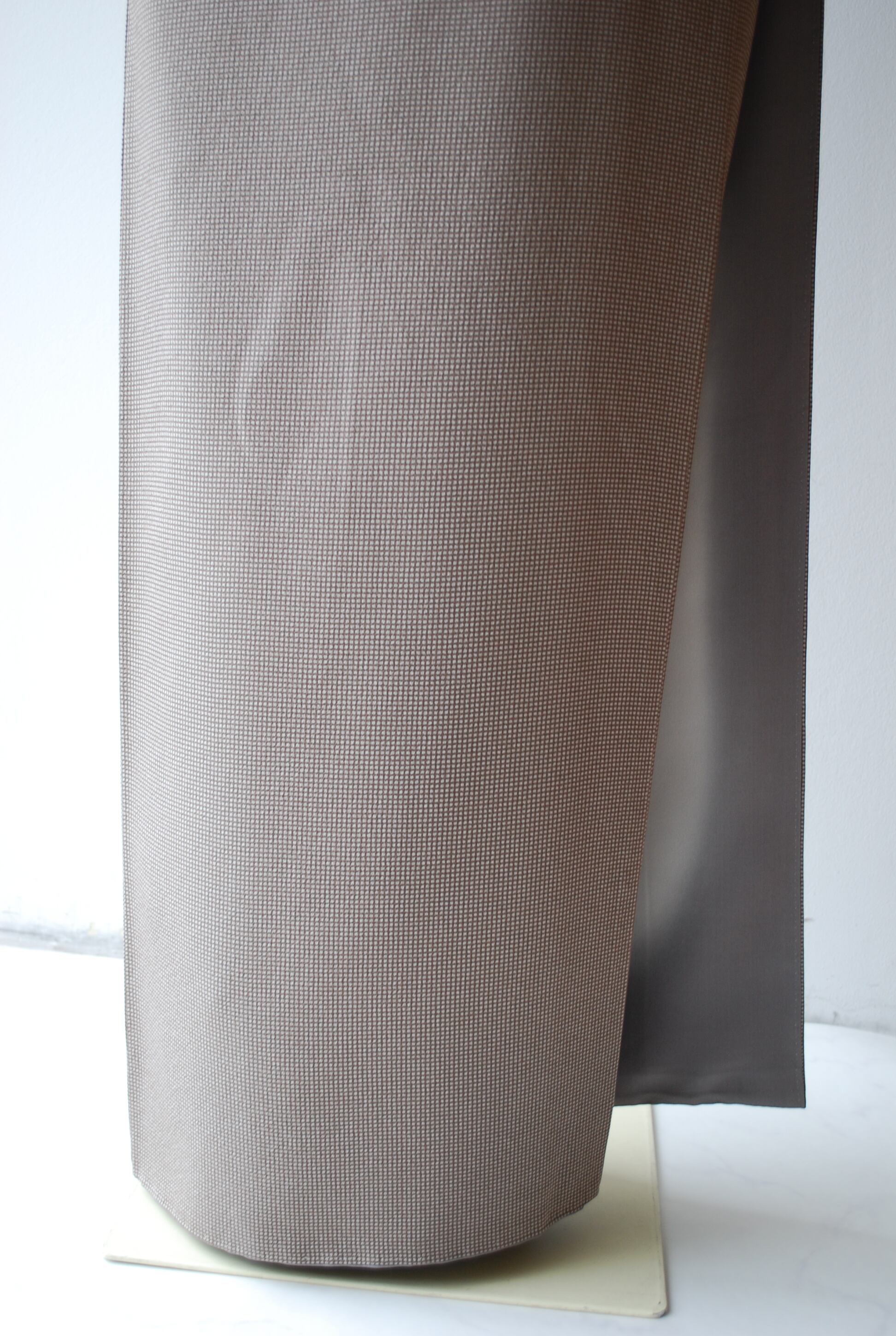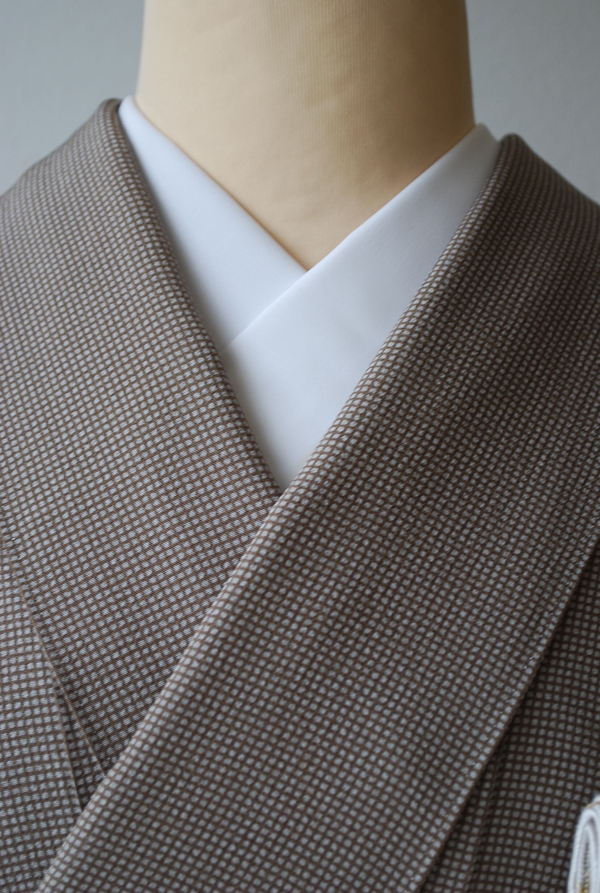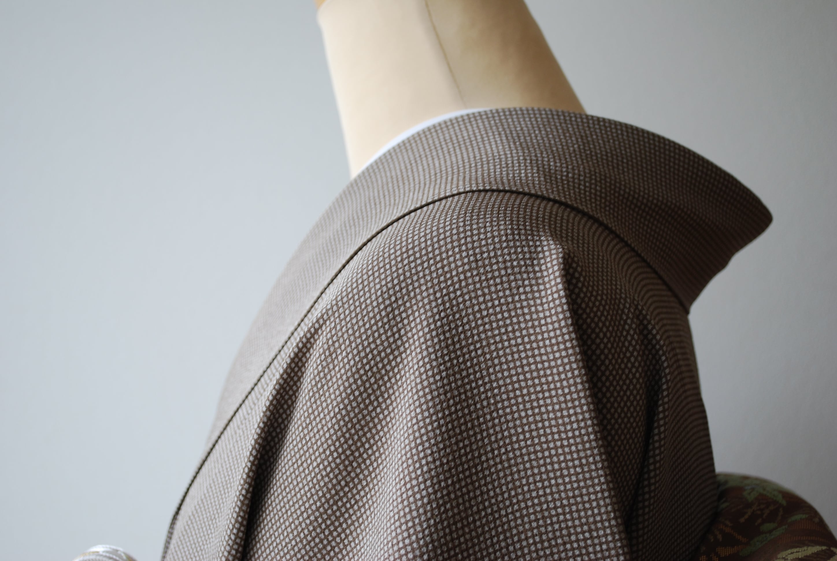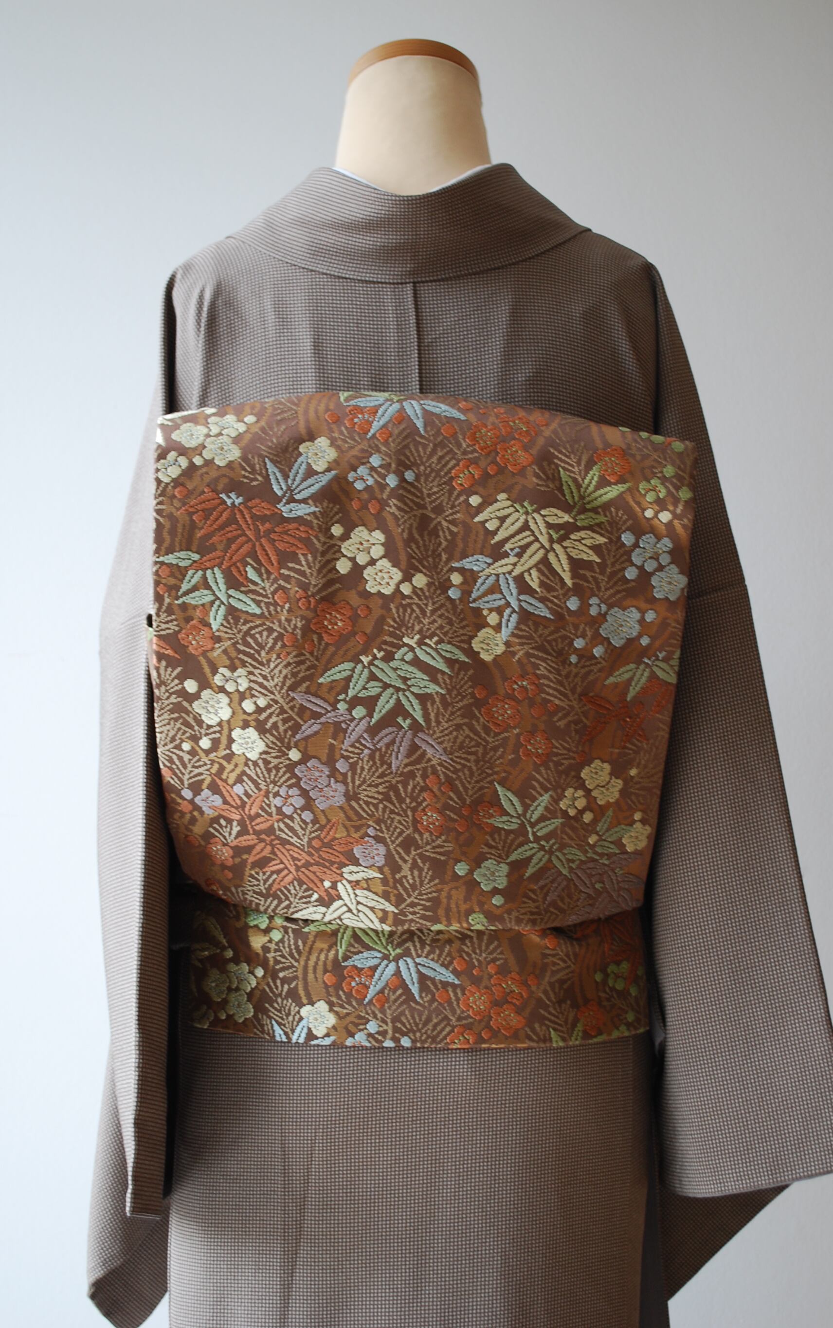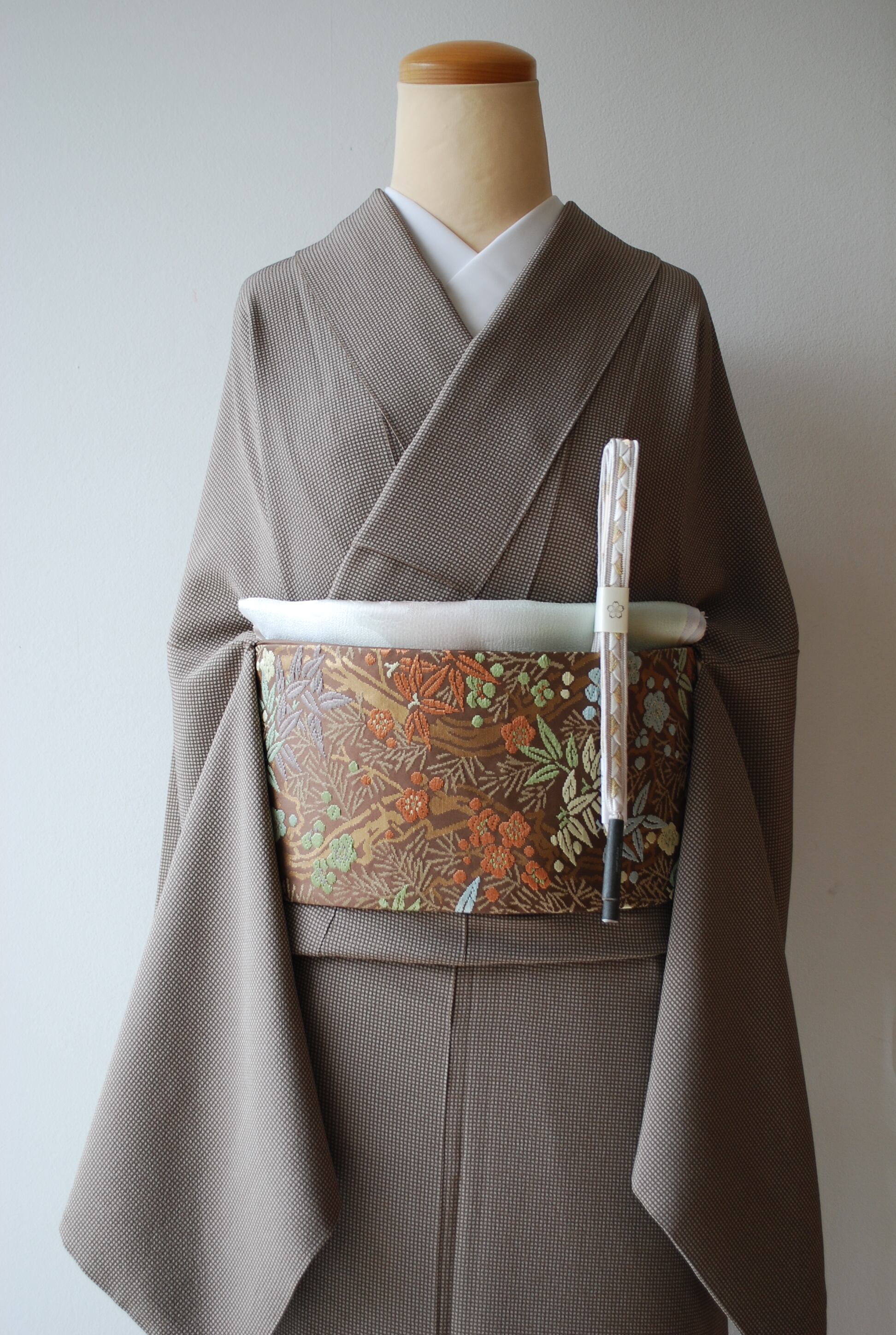 茶系の地色に紫がかったグレーの角通しが並んだ