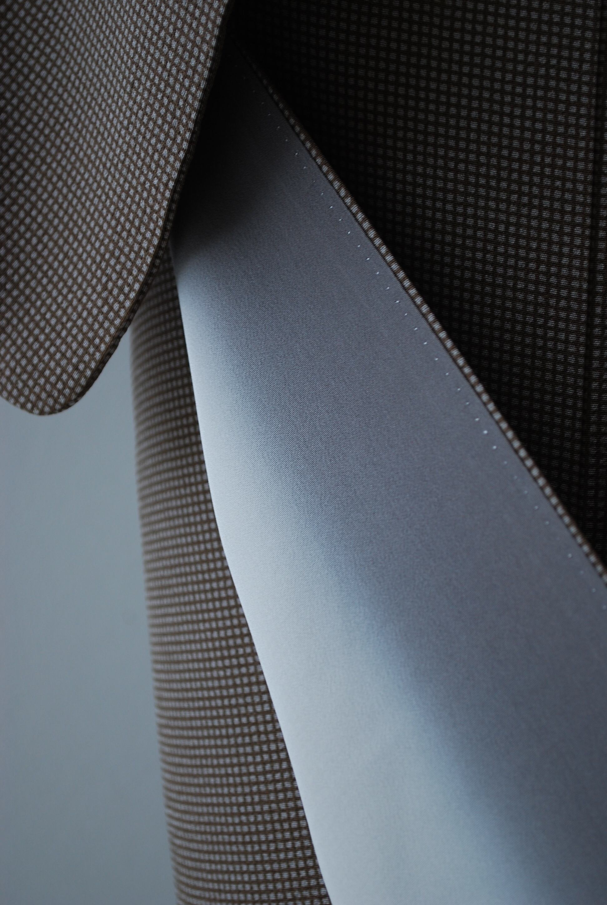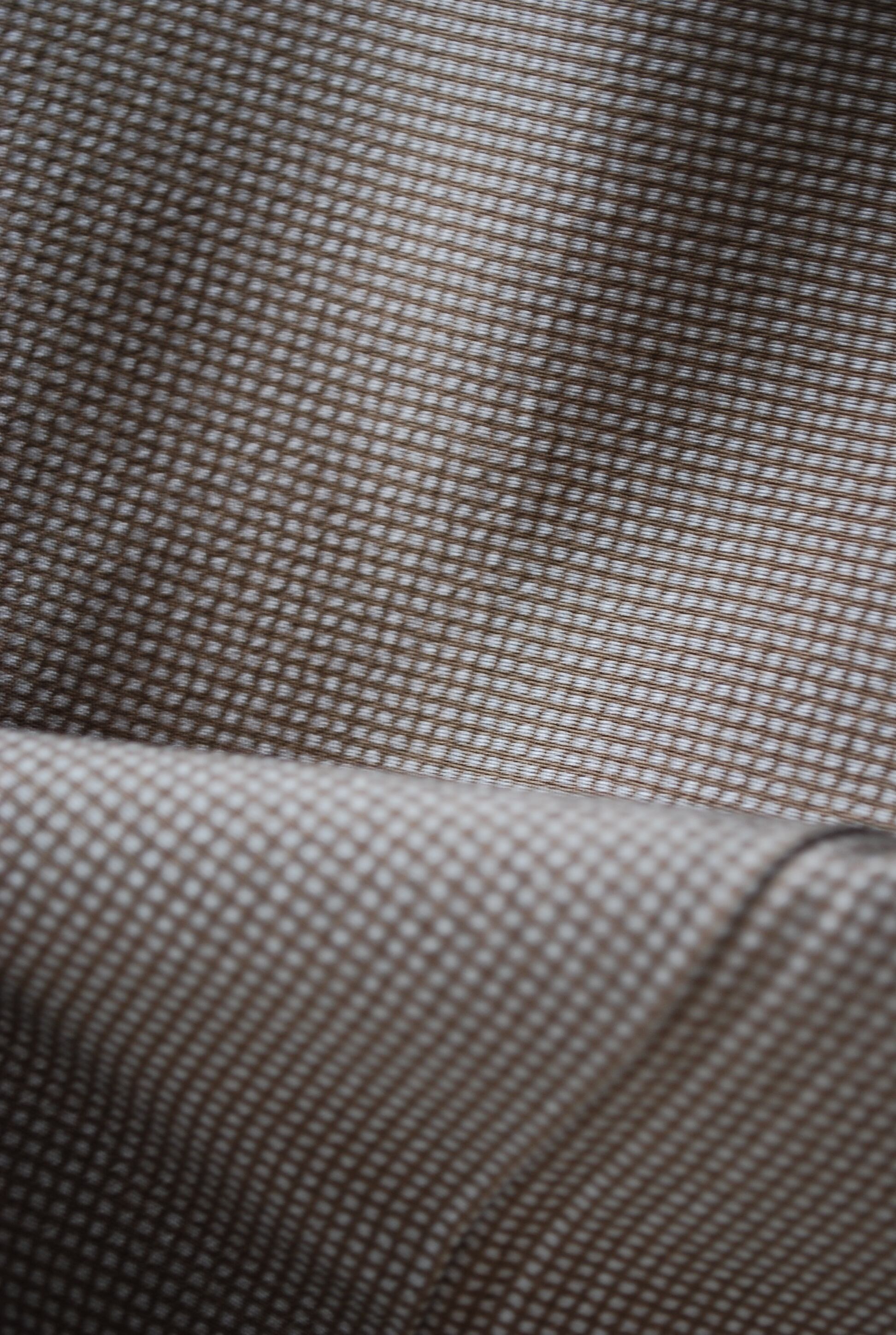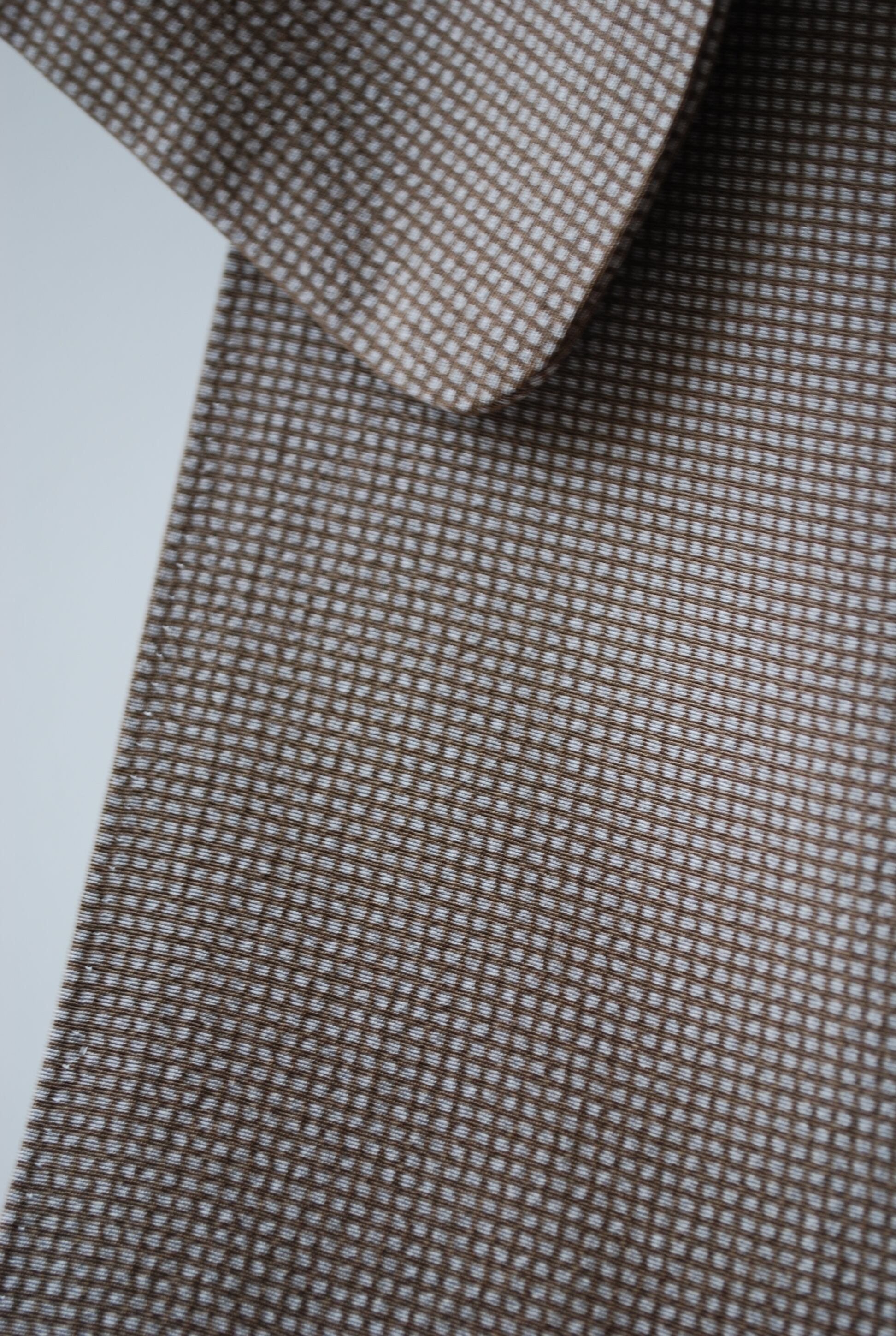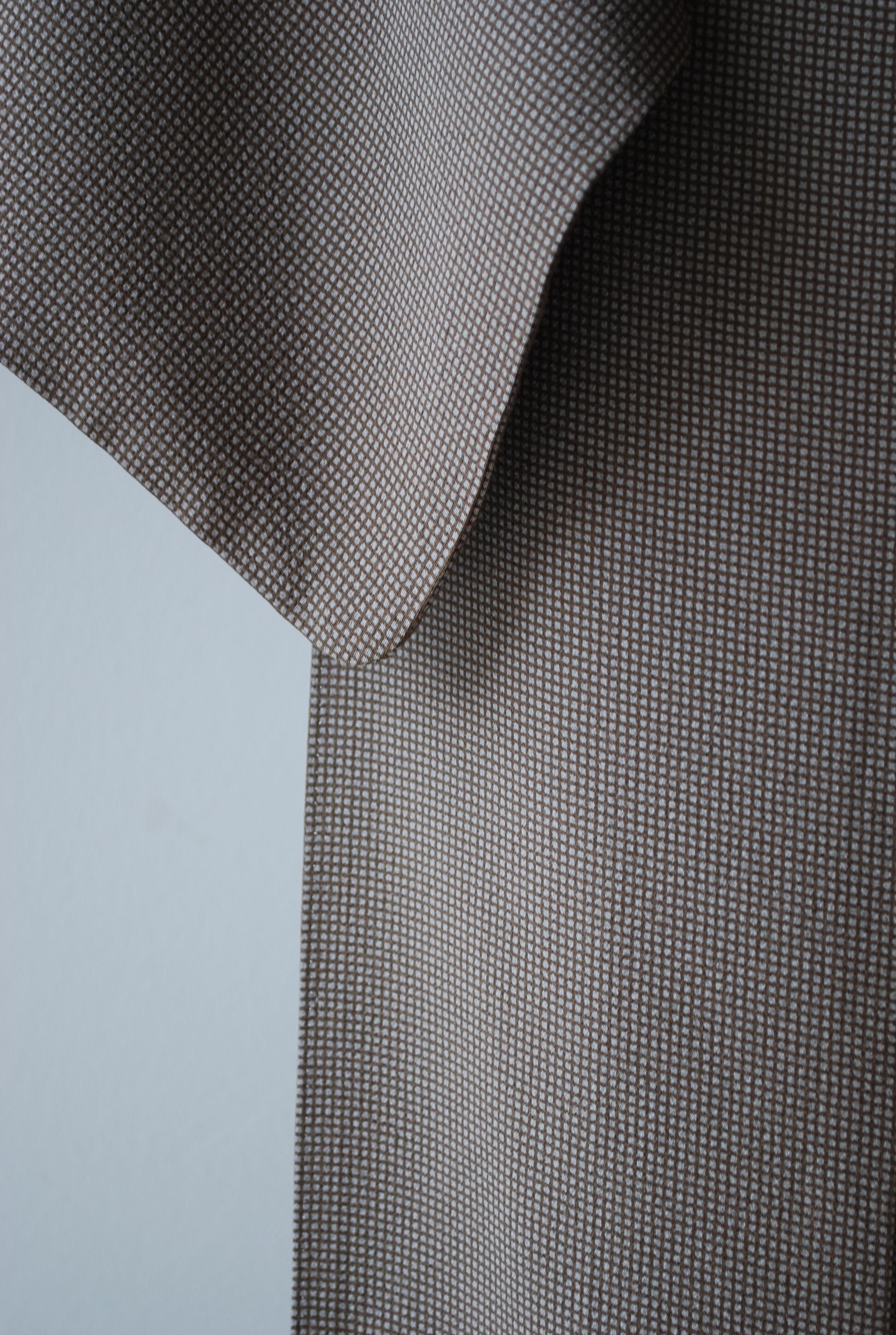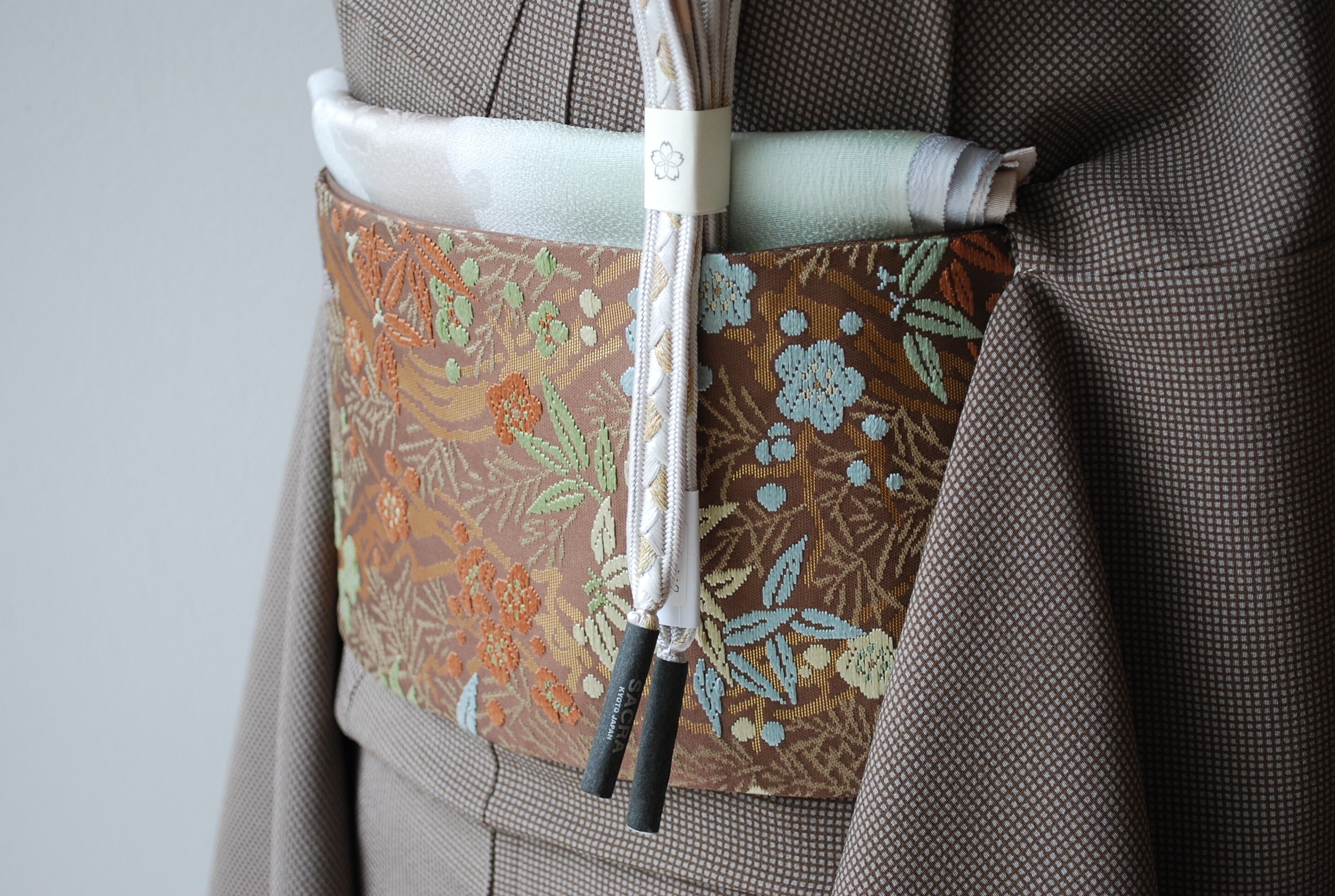 茶系の地色に紫がかったグレーの角通しが並んだ