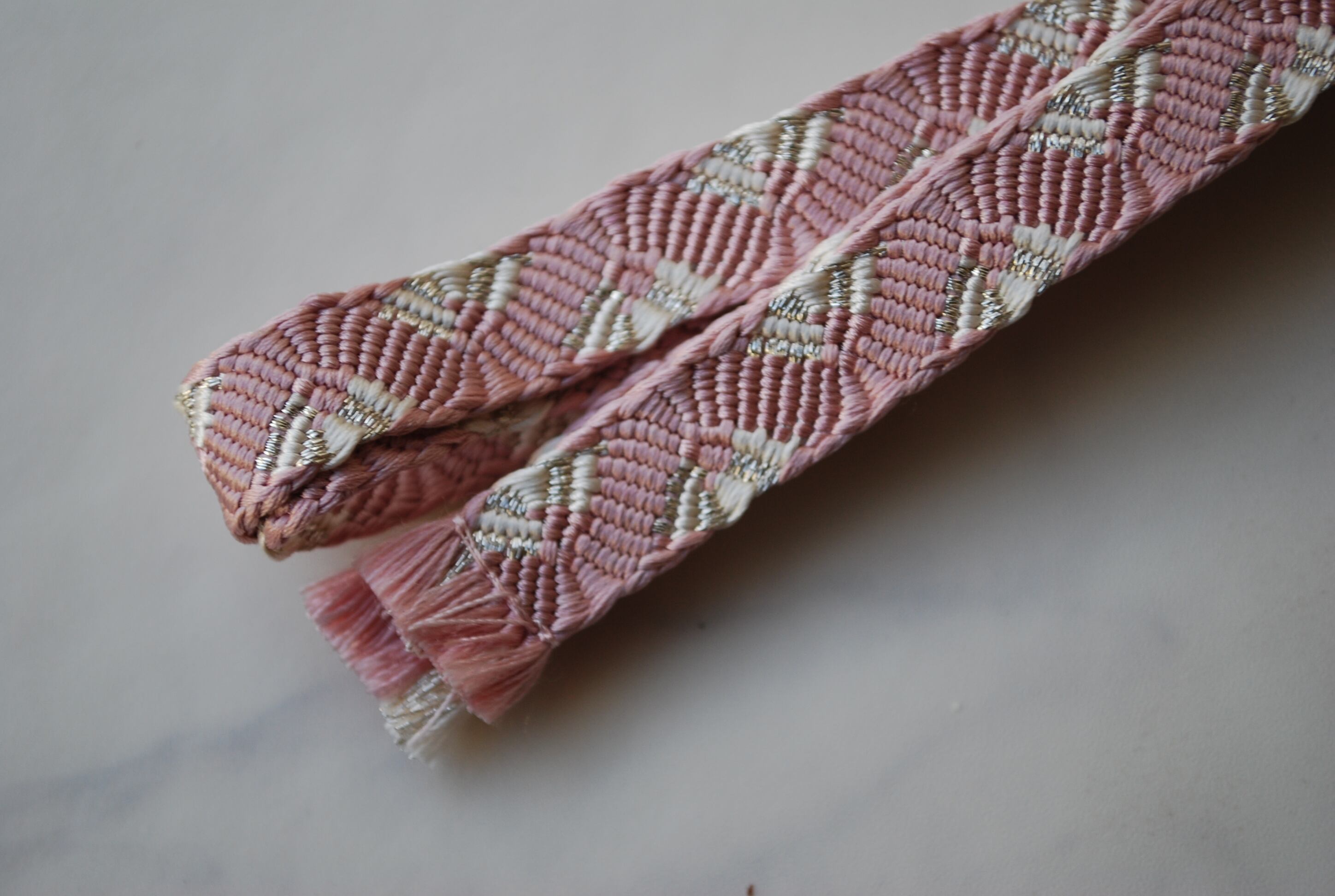 【帯締め】撫子色 波文 白銀散らし三分紐 250903⑳