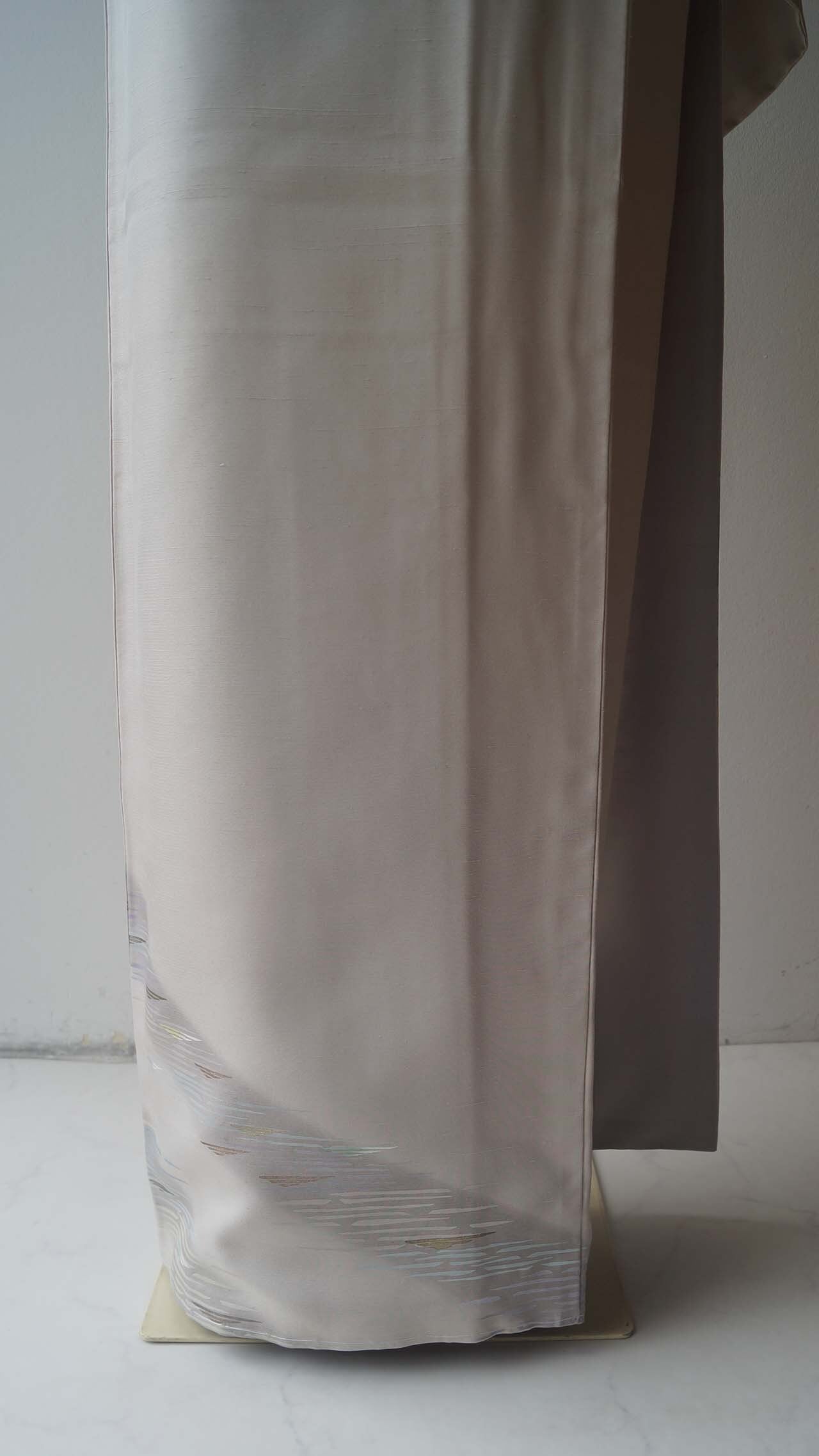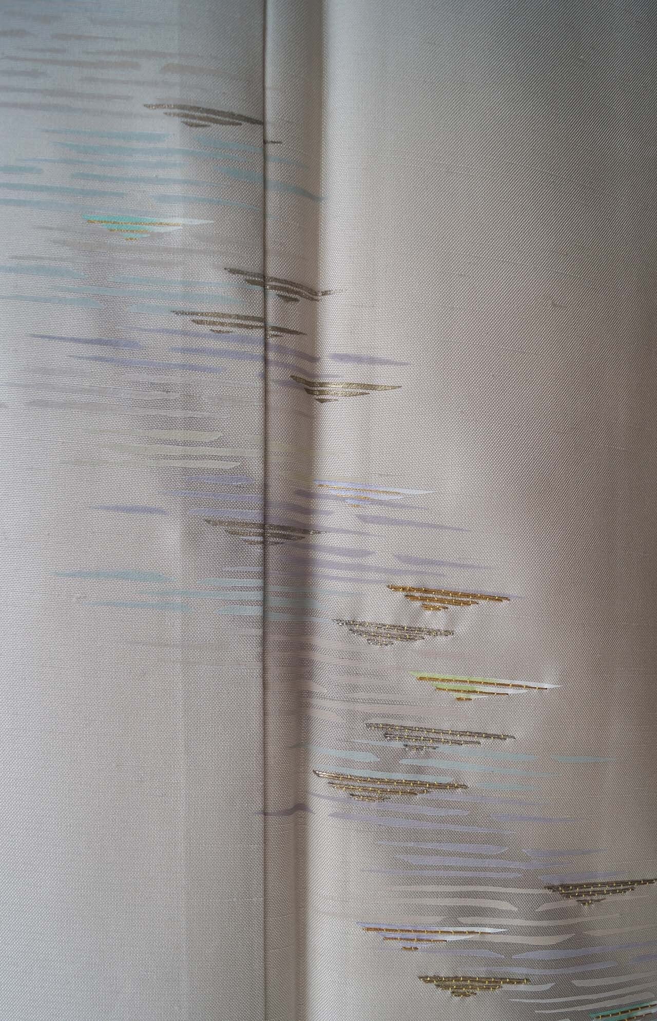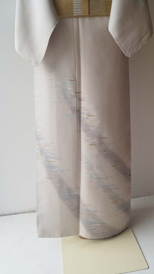 【袷】灰白色 斜め縞に霞文 付下げ