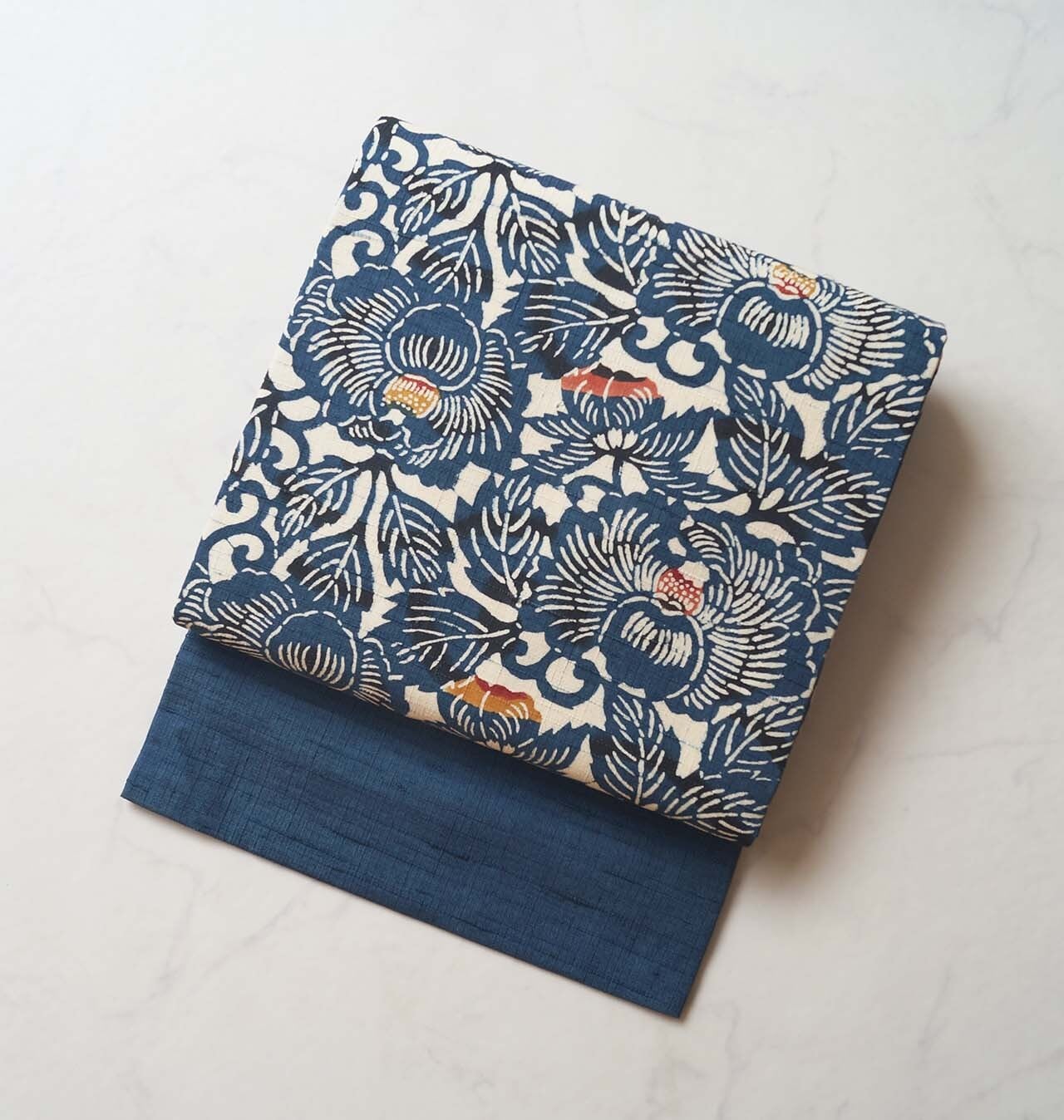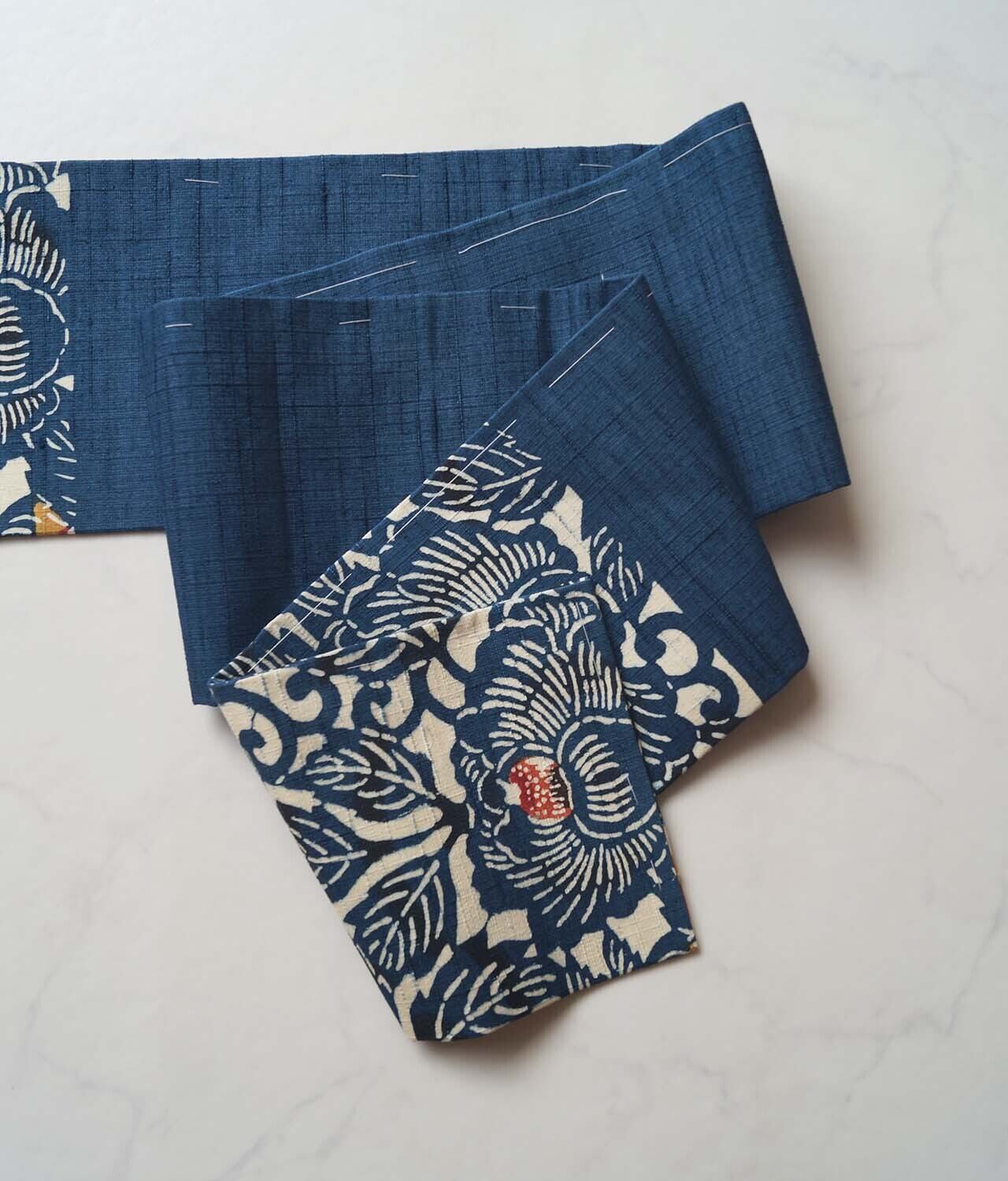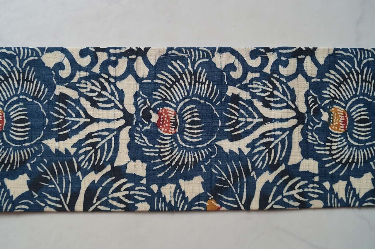 【なごや帯】濃藍色地 椿文 紬なごや帯