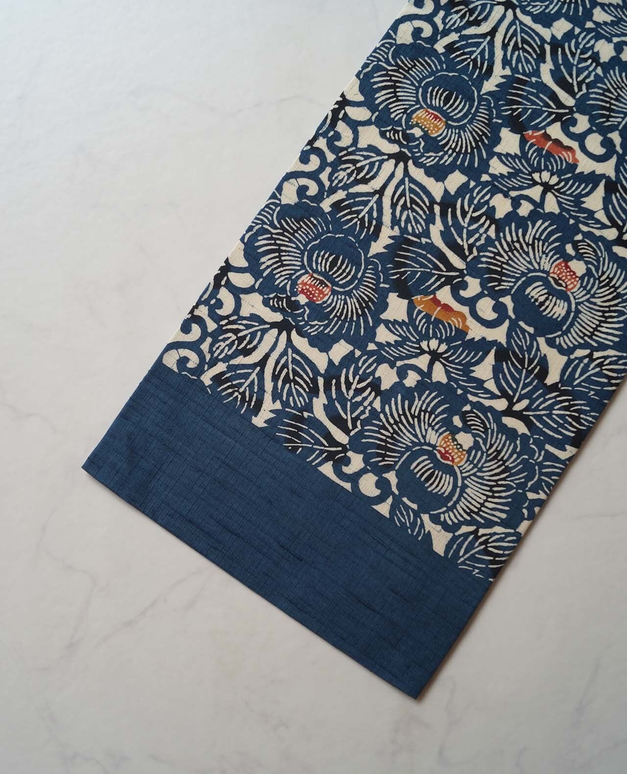 深い藍色の濃淡、黒色で染められ