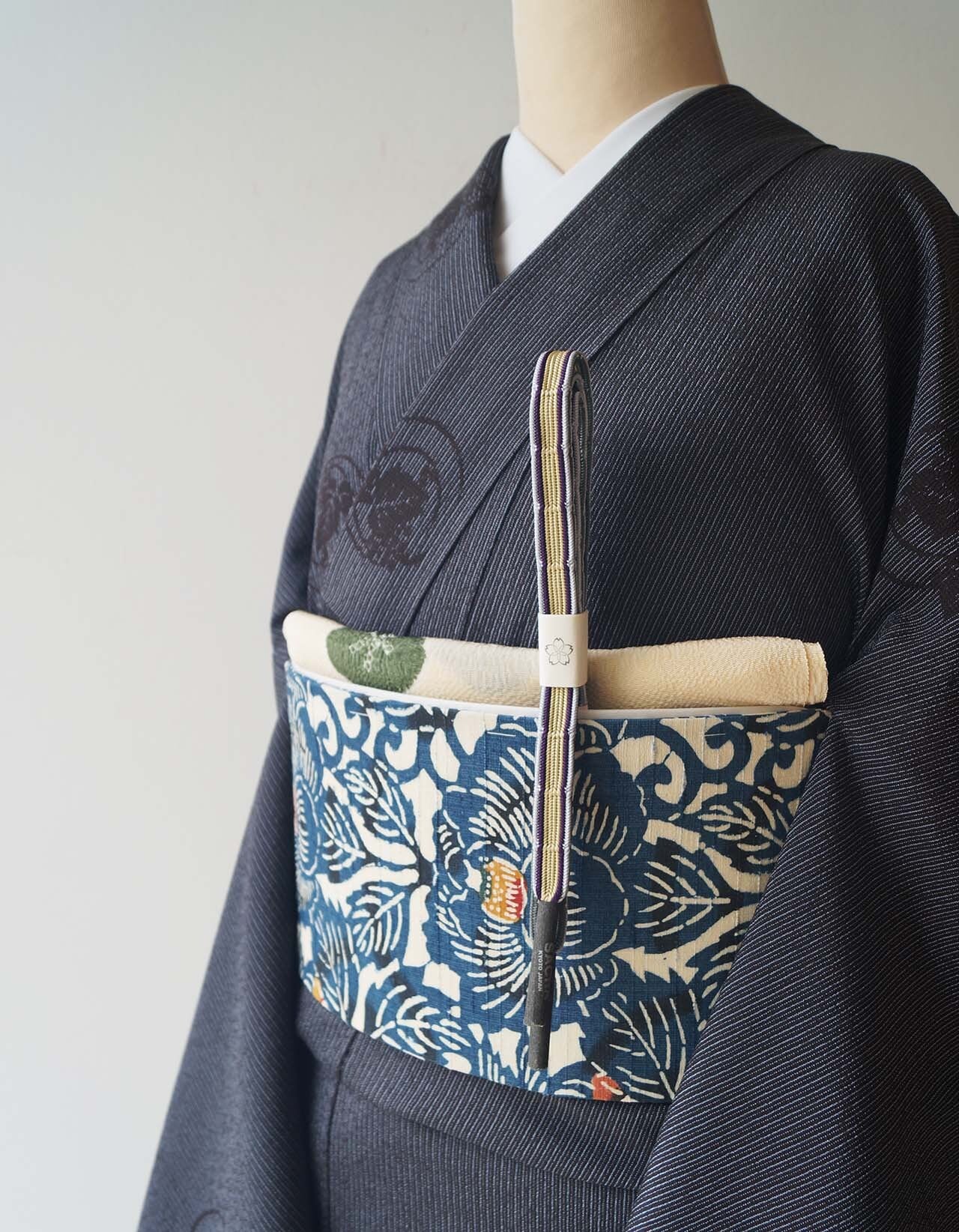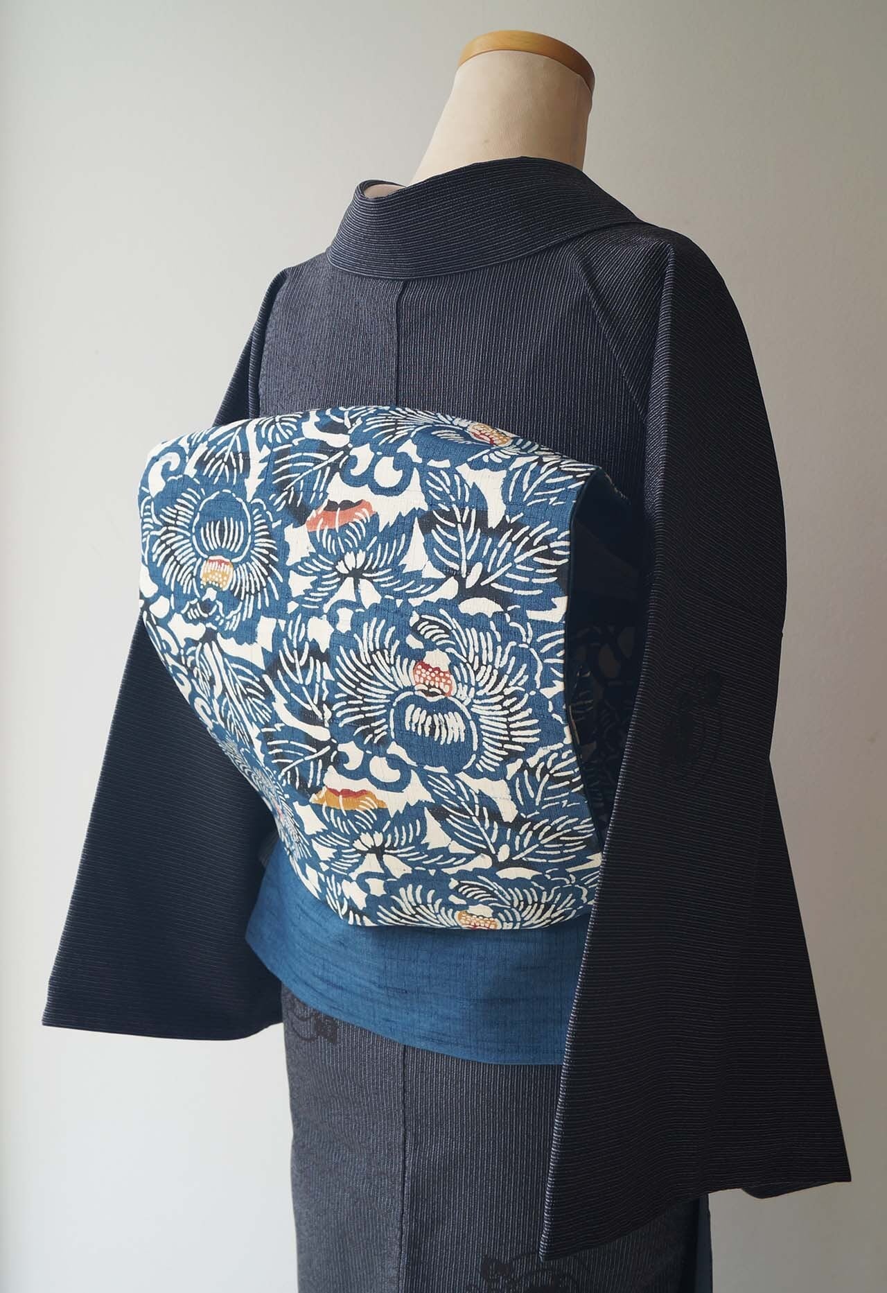 紬地の生成り色とのコントラストが