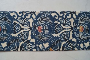 椿文の紬地の型染めなごや帯です。