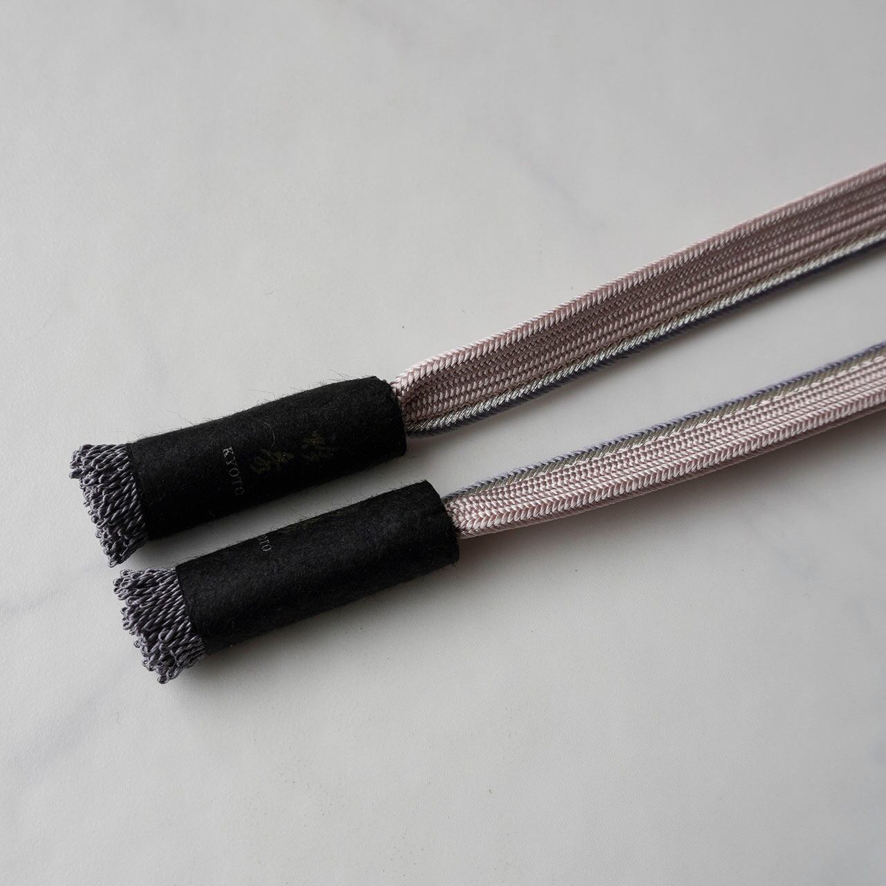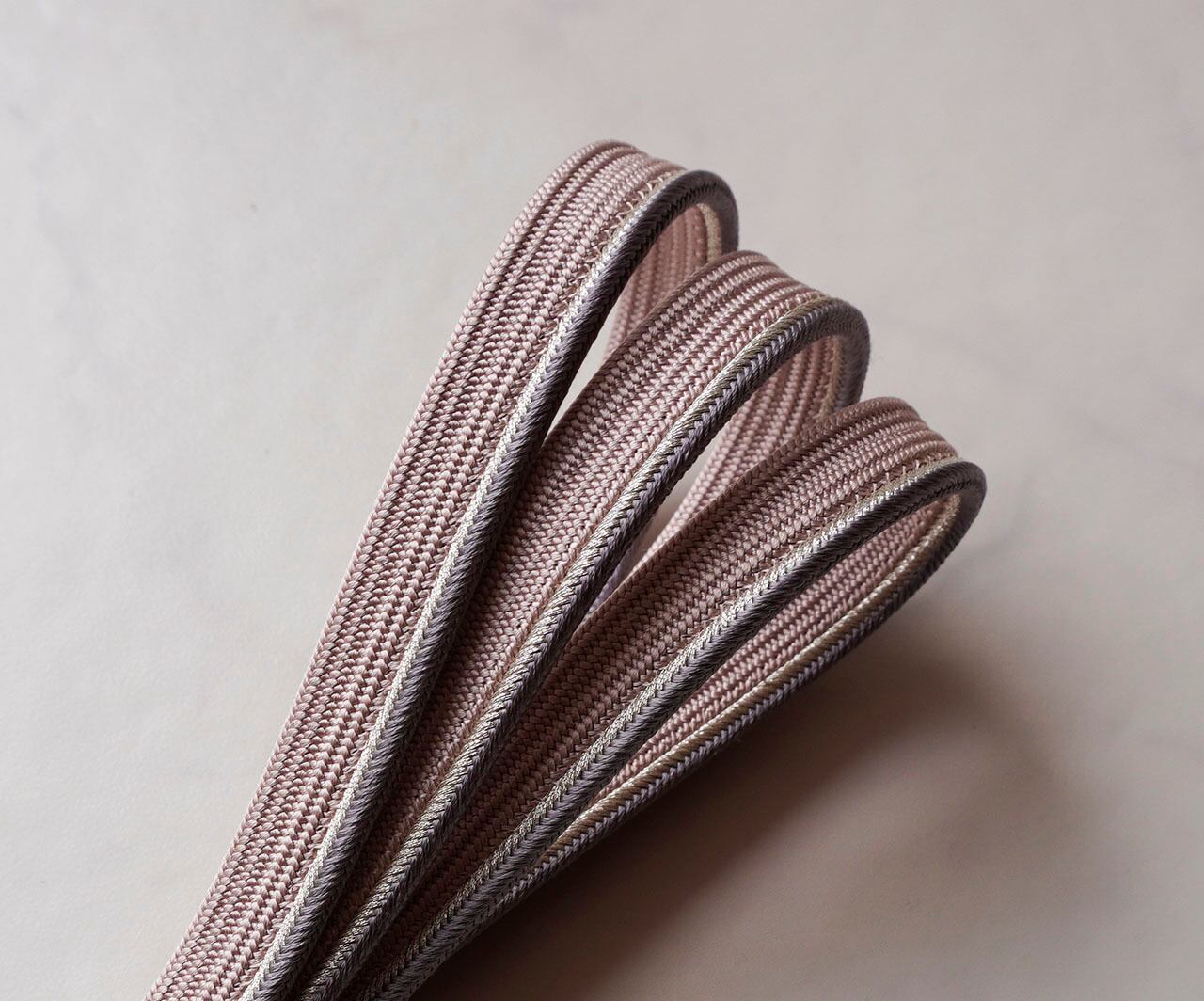 【衿秀・帯締め】薄虹色×紫鼠×銀 肩耳高麗組 撚り房帯締め No.251018㉓