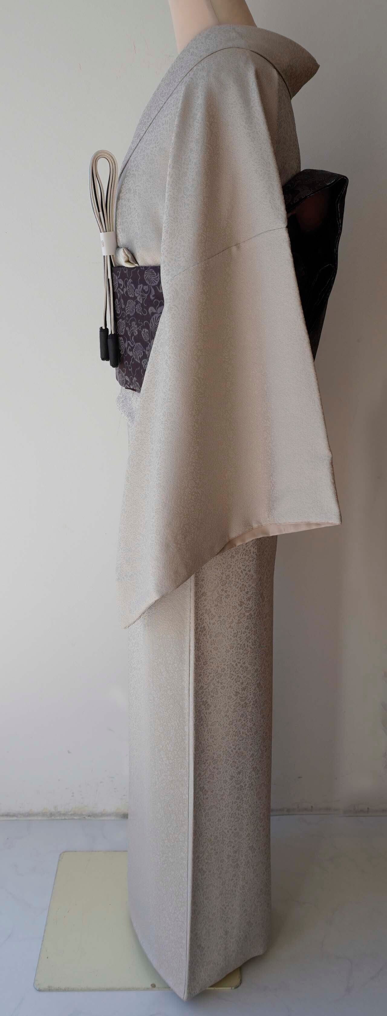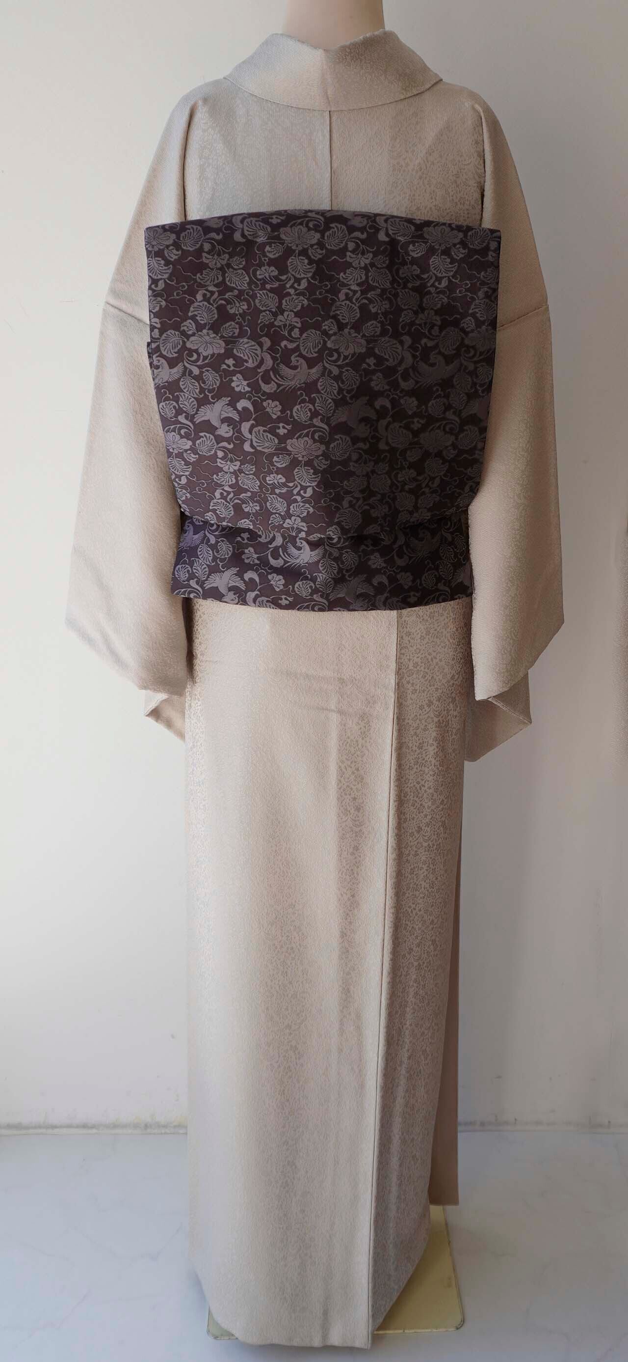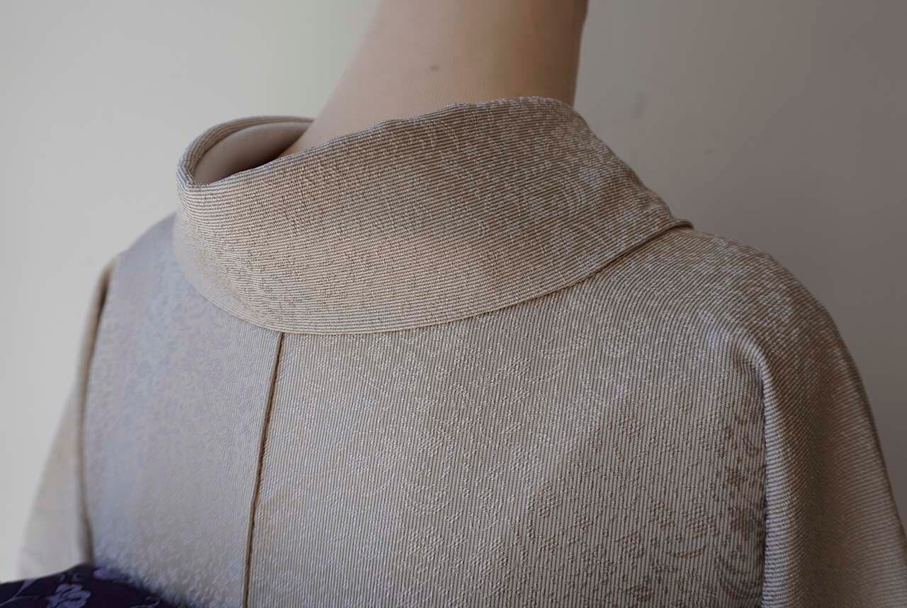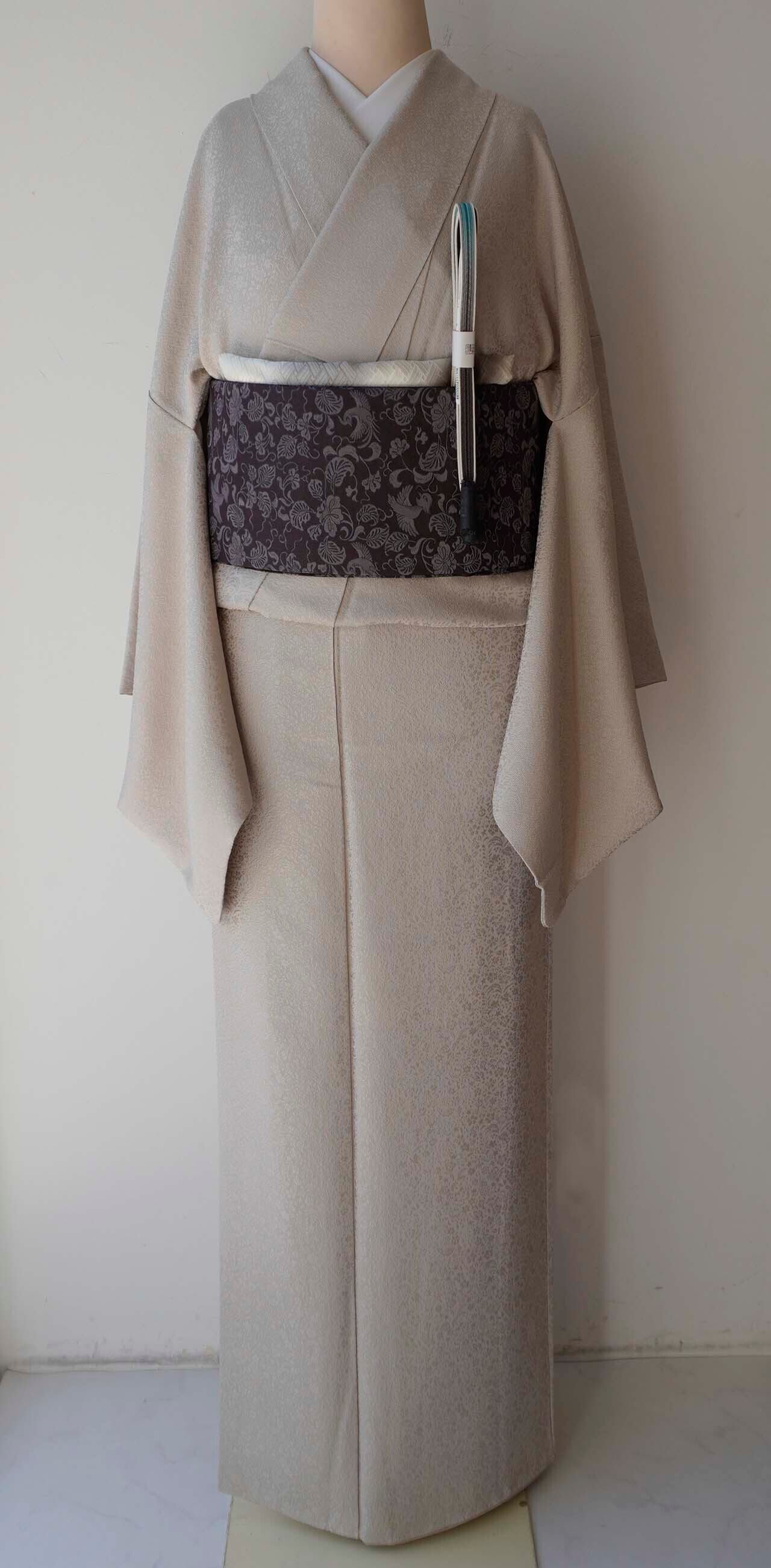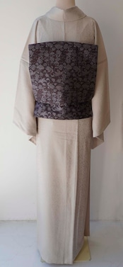 【袷】枯野色地 草花地紋×万筋 色無地