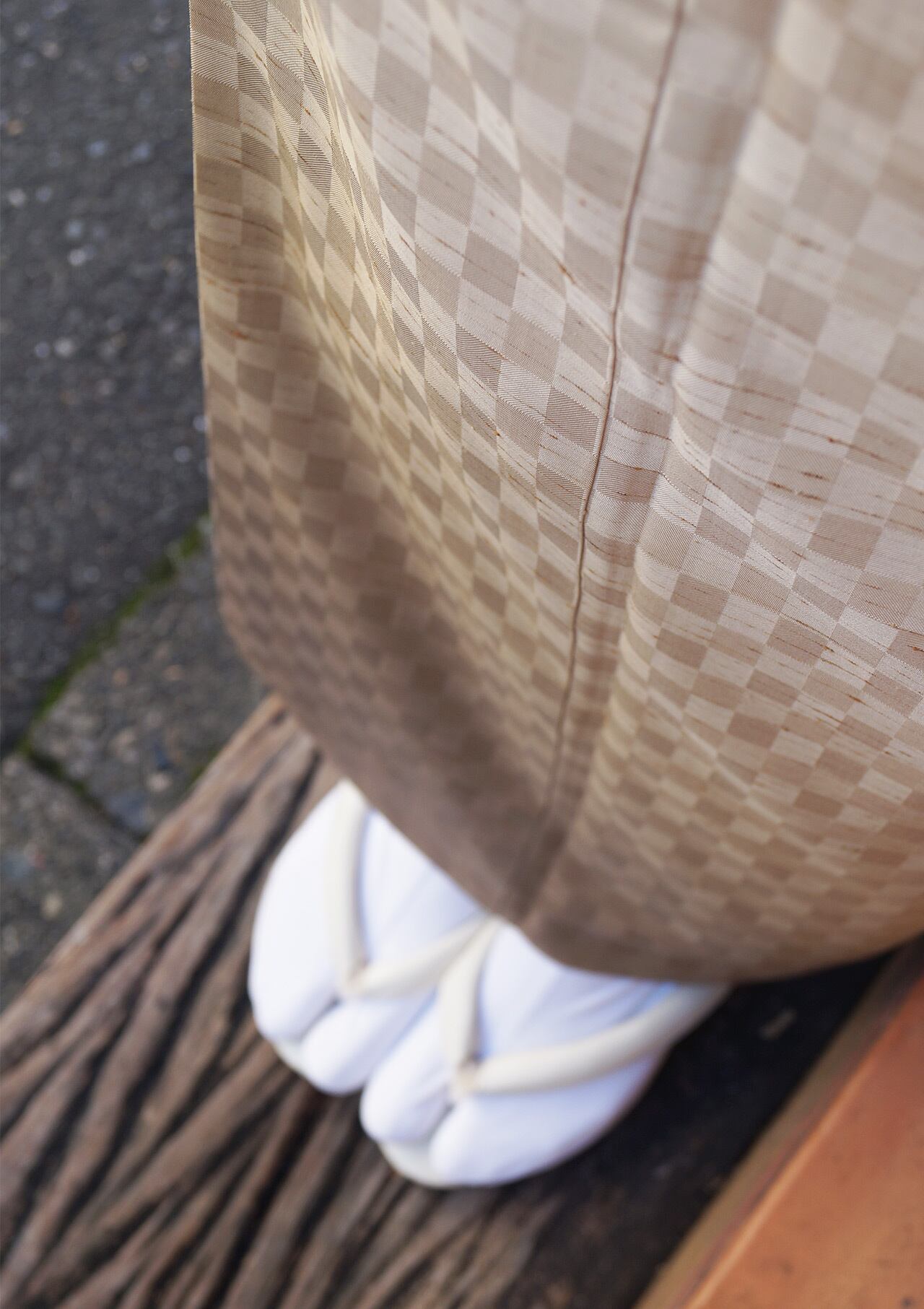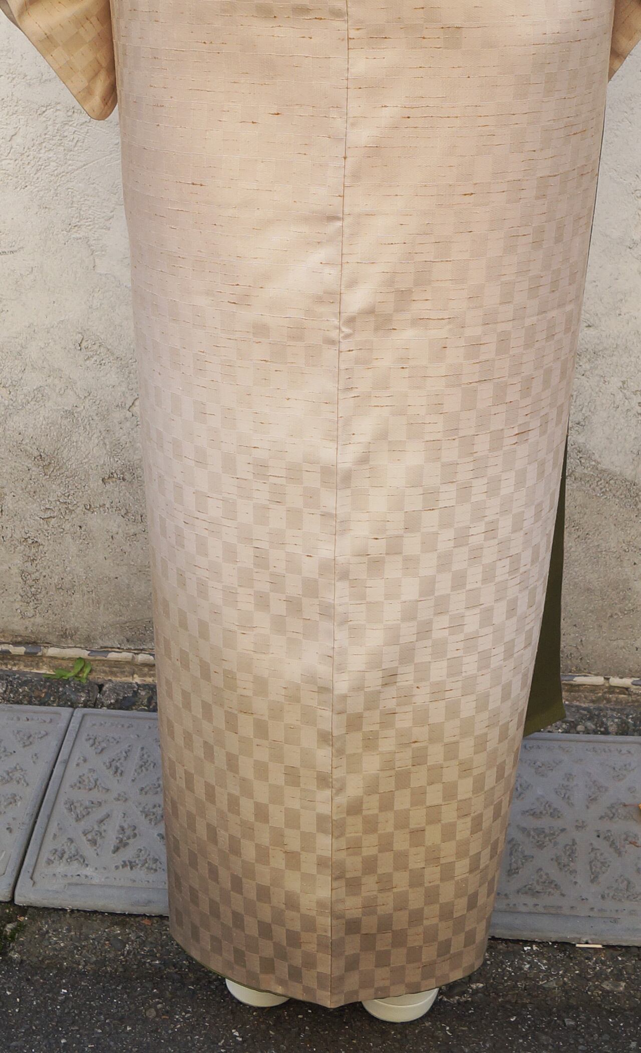 肌色市松地紋の裾暈かし、