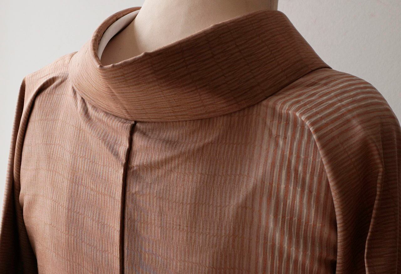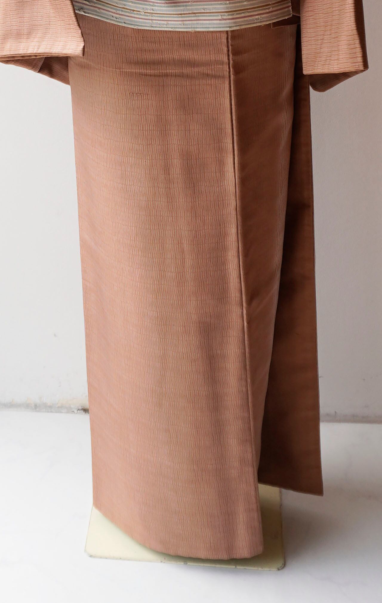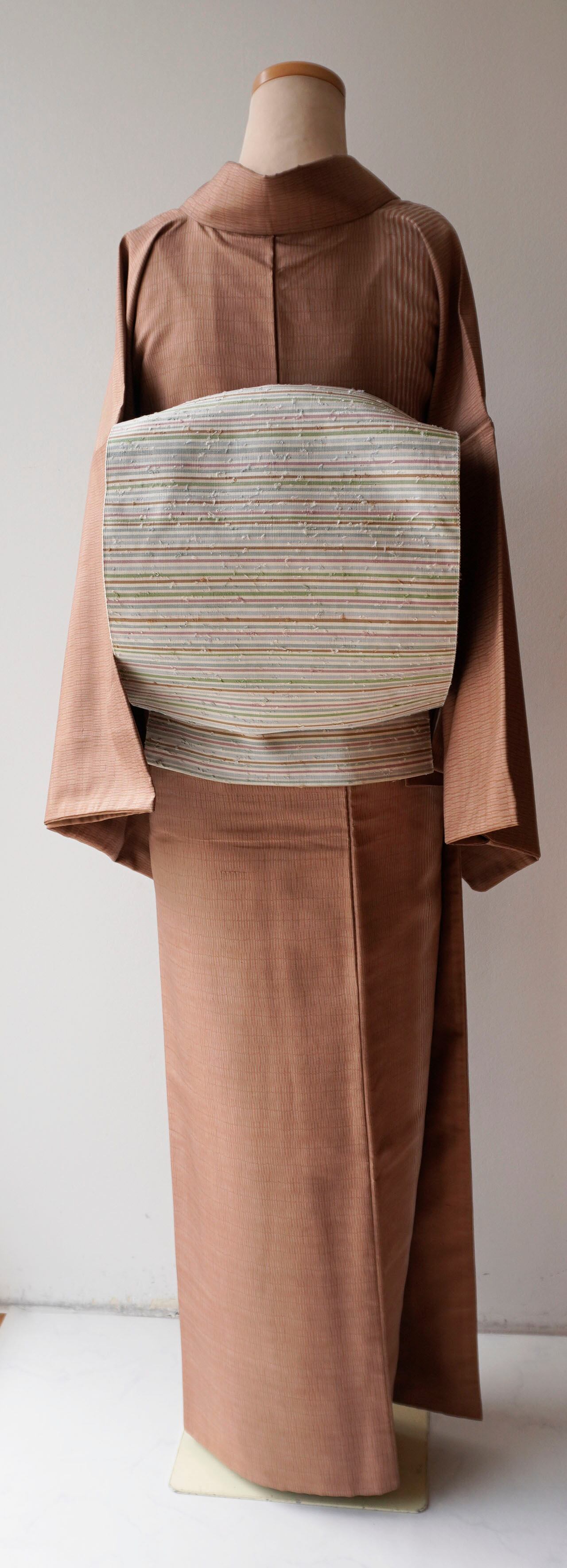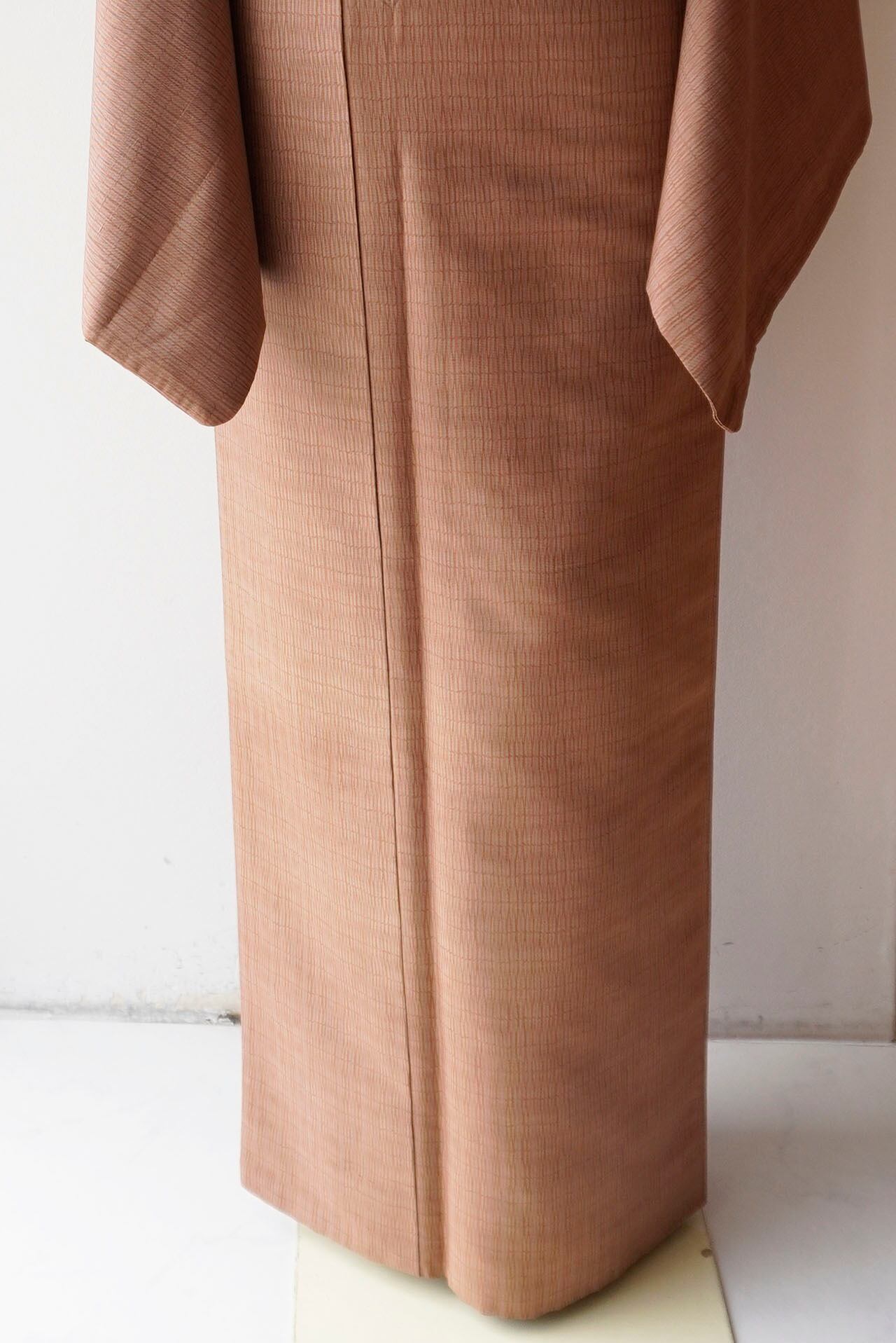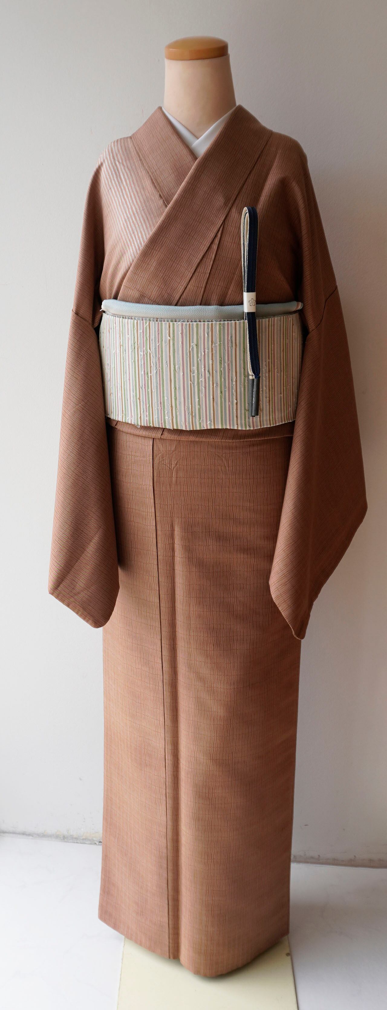 【袷】伝統工芸伝承者 供田寧男 茶系 変わり縞文 紬