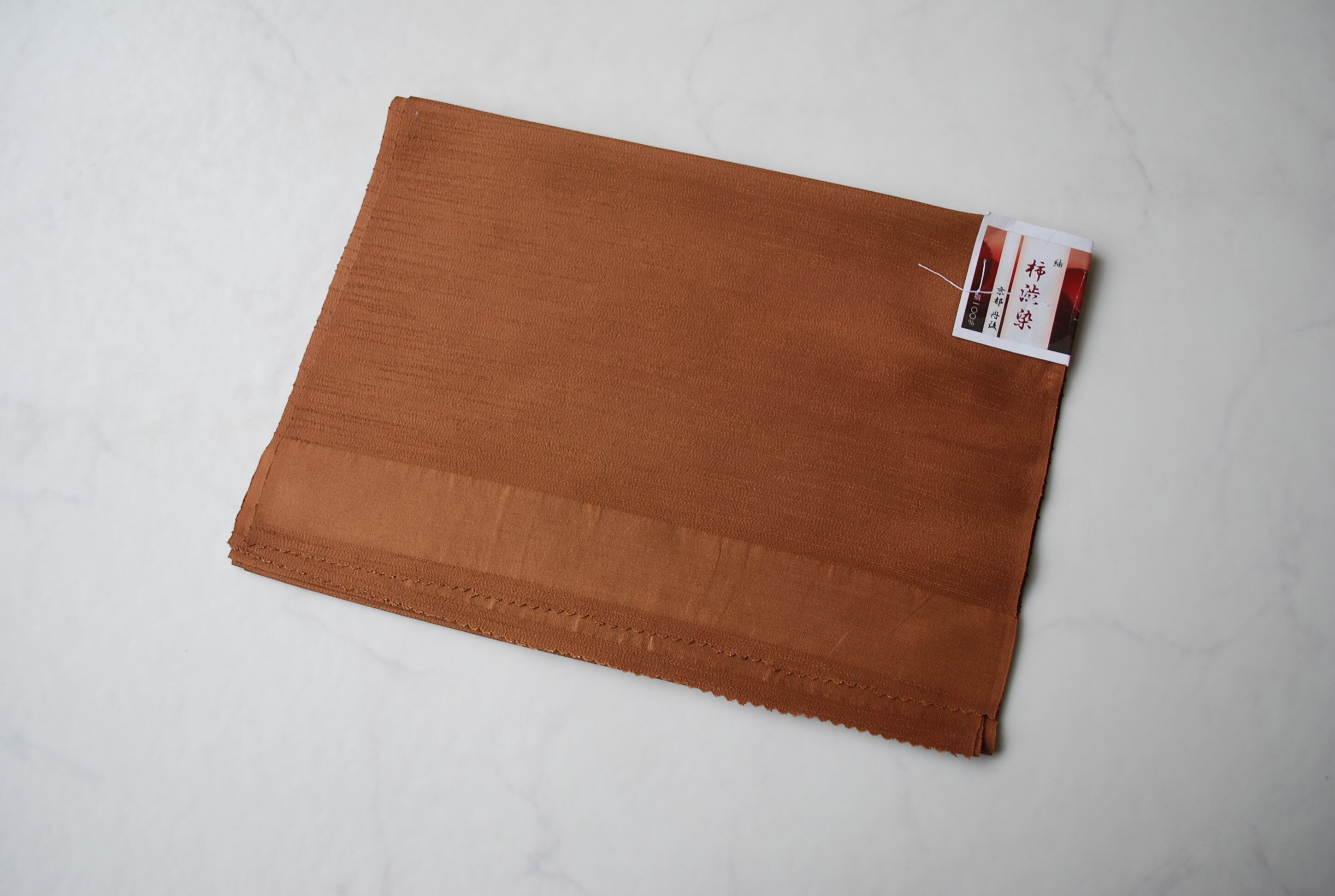 柿渋染によるこっくりとしたお色が魅力の帯揚げ。