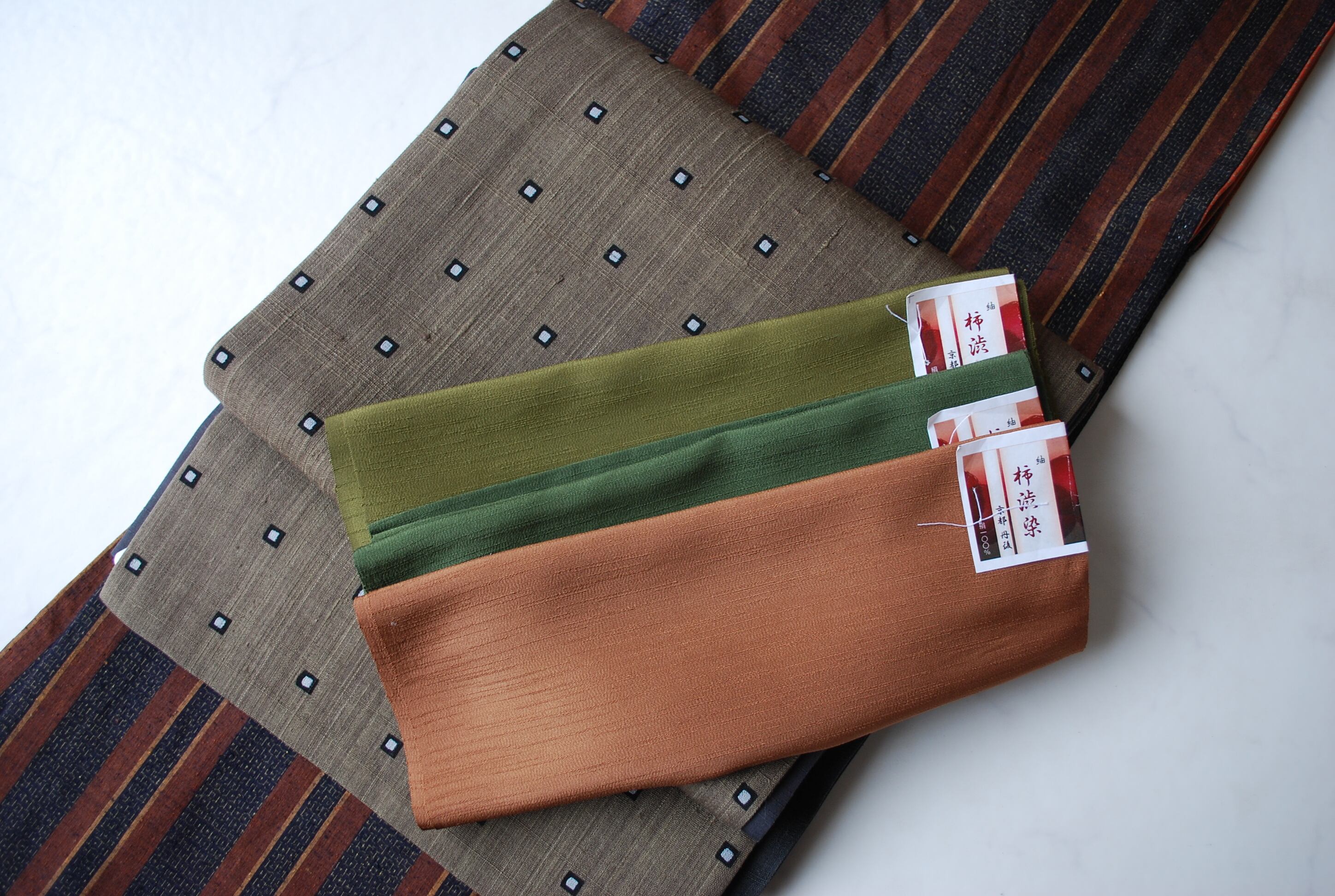 【衿秀・帯揚げ】草色 柿渋染 帯揚げ 250912⑪