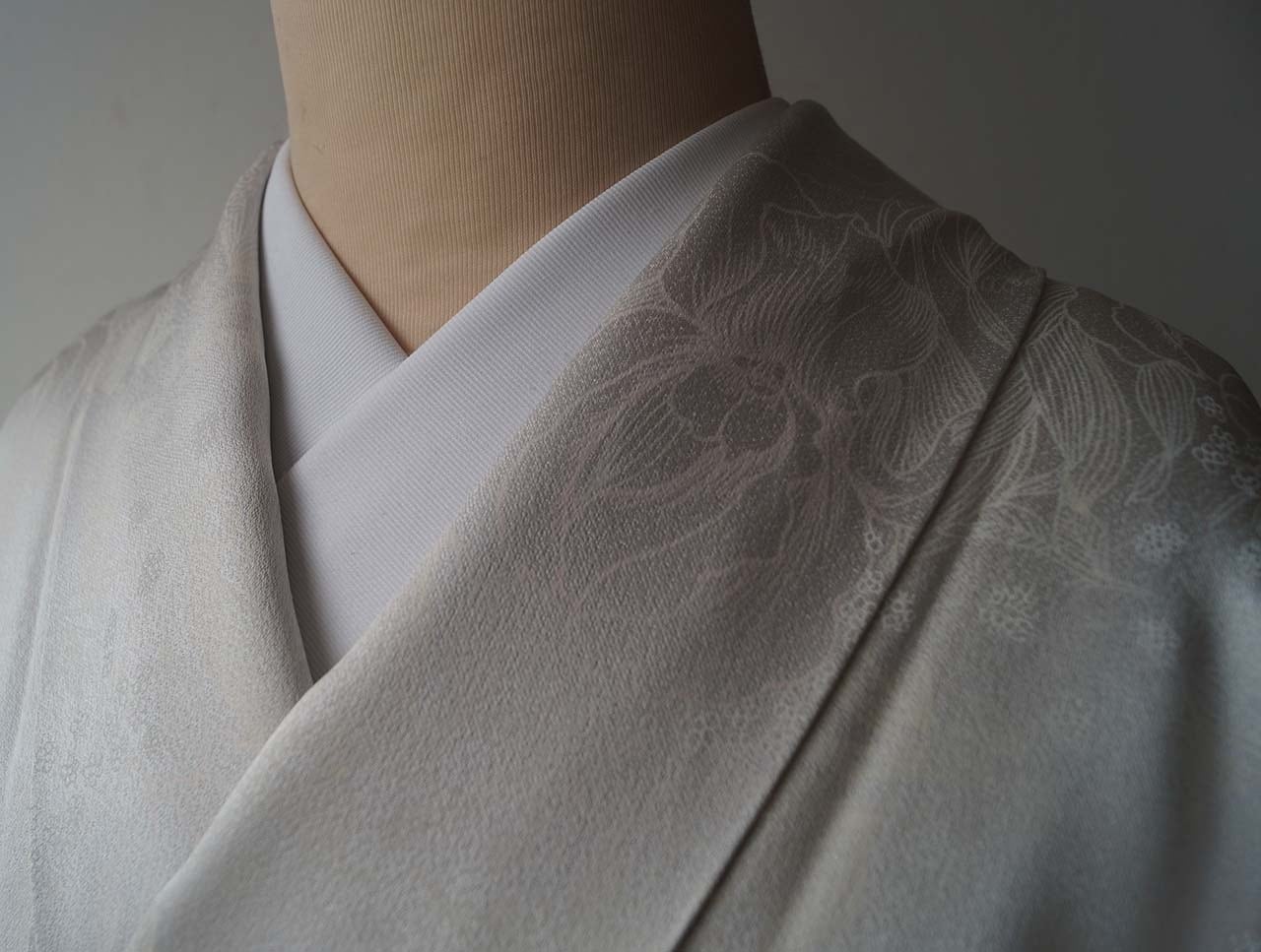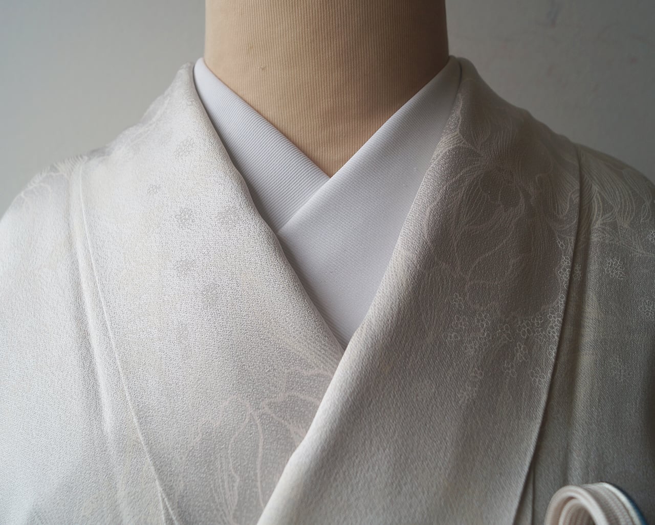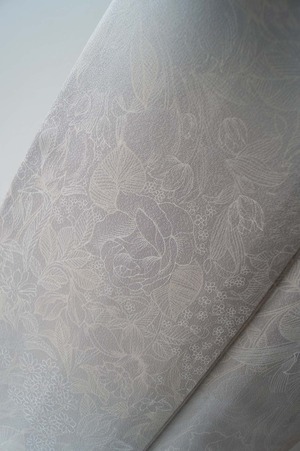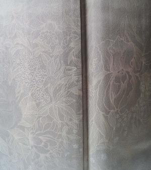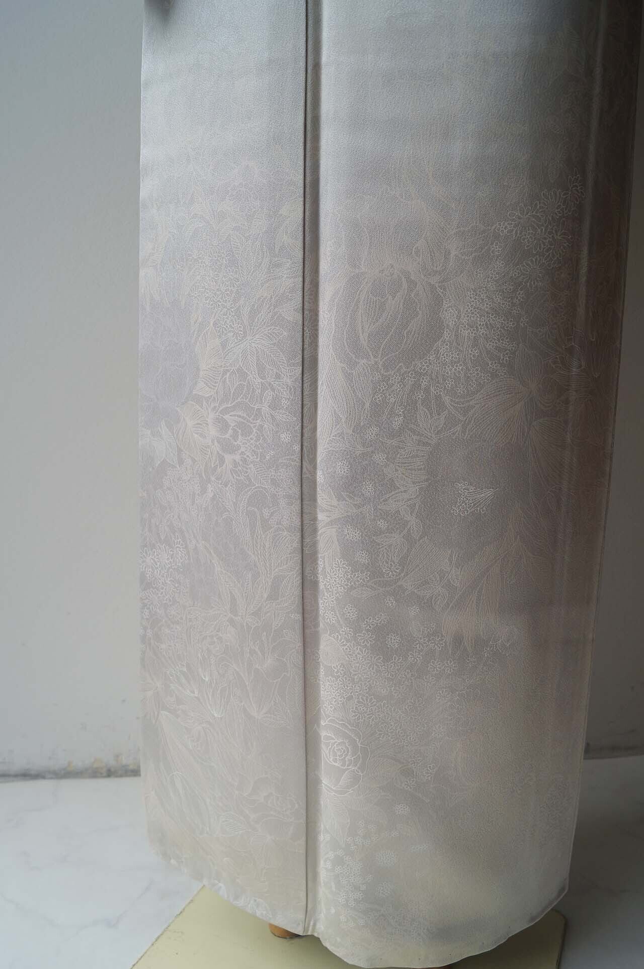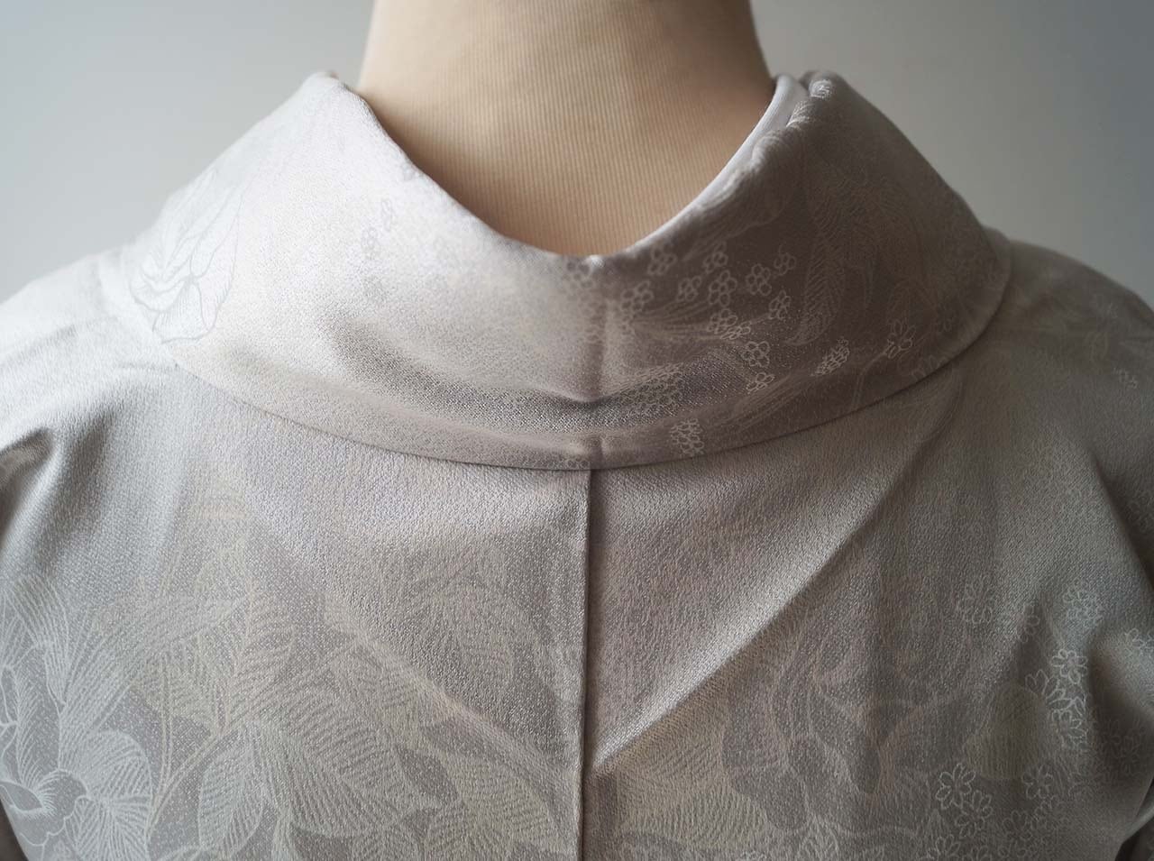 【袷】灰白色 薔薇に小花文 小紋 プチサイズ