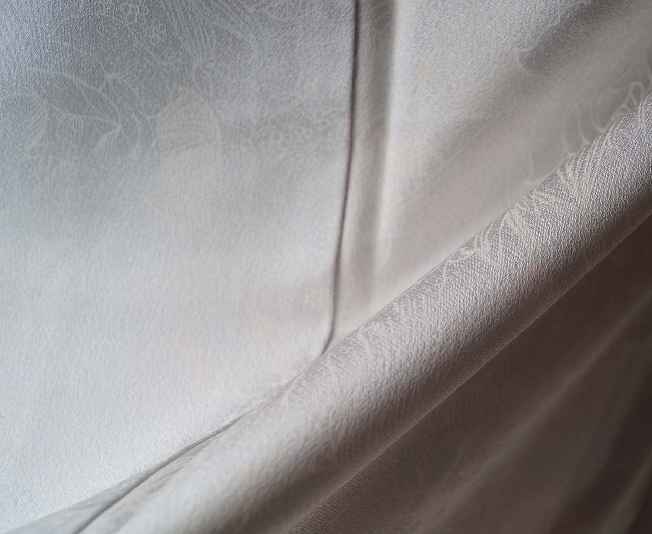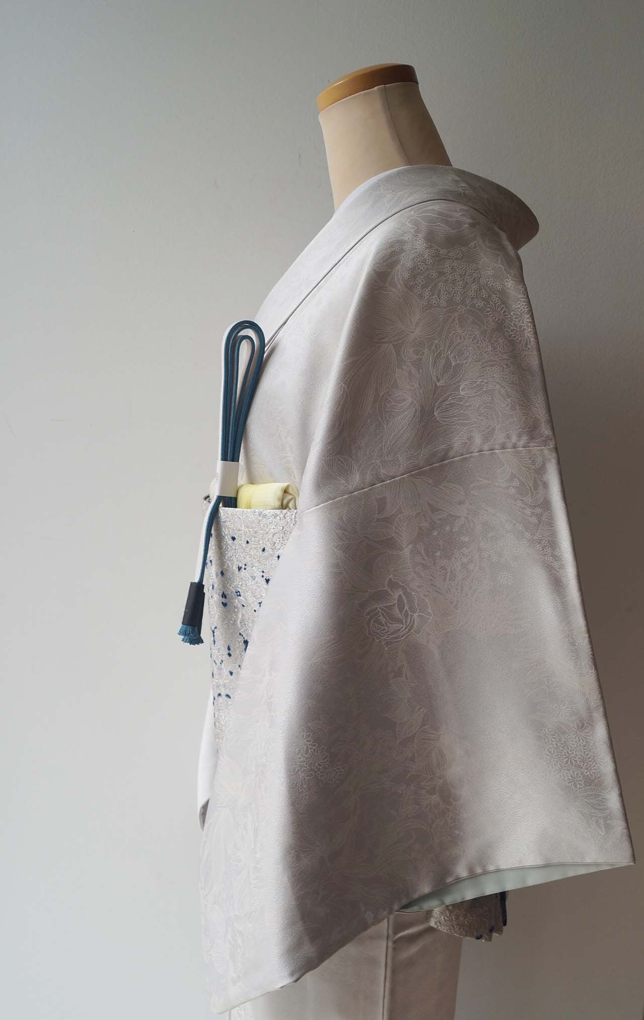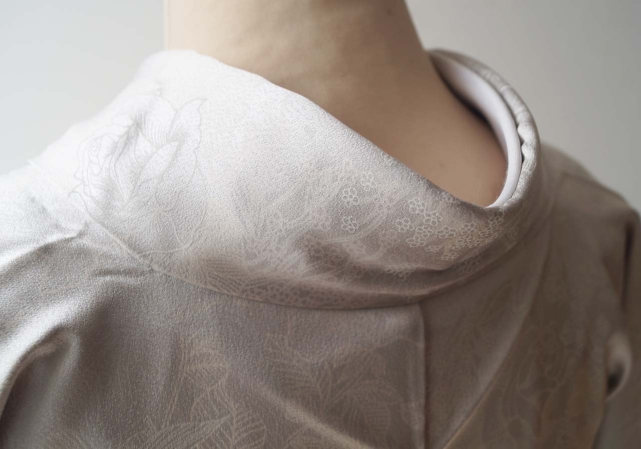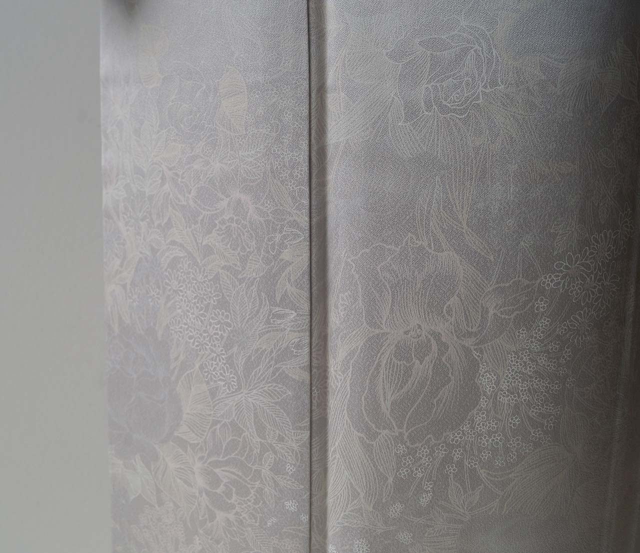 【袷】灰白色 薔薇に小花文 小紋 プチサイズ