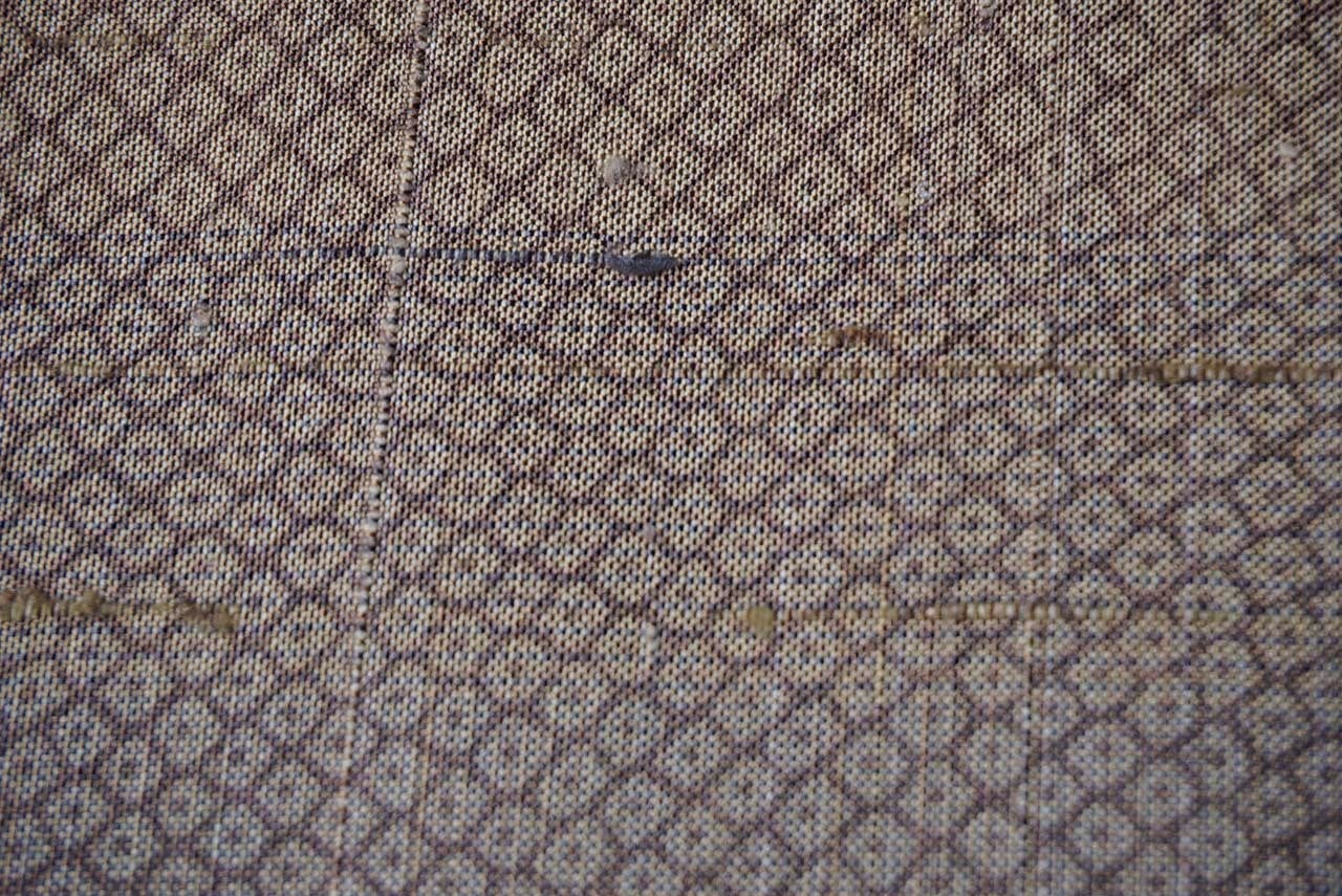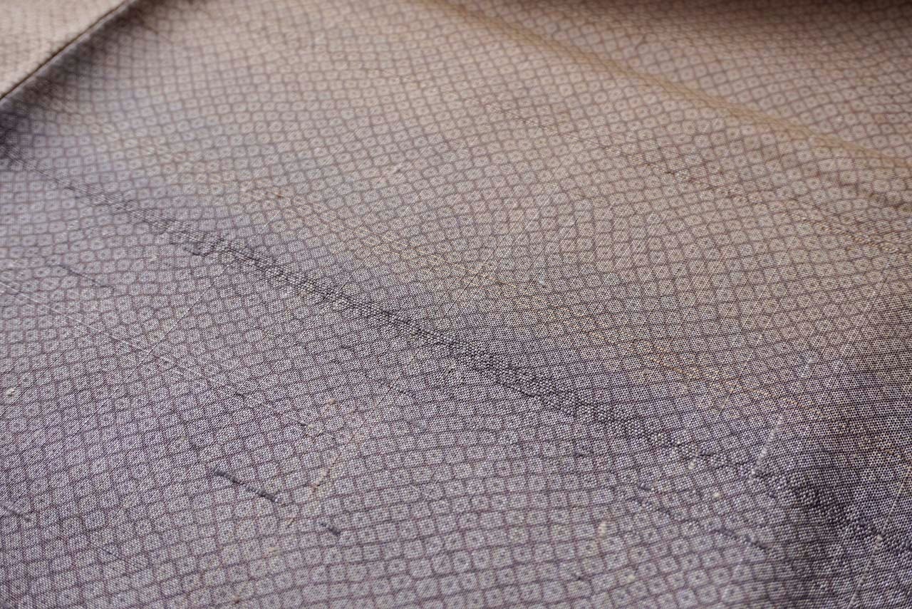 紬の暈かし織りに染めの疋田文が全体に施され、