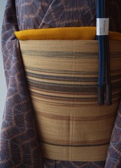 黄土色に縞文の八寸なごや帯です。