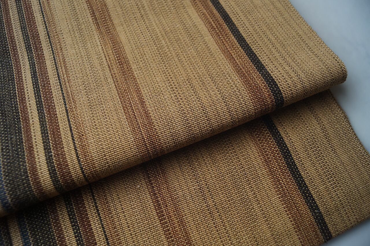 【なごや帯】黄土色 縞文 八寸なごや帯