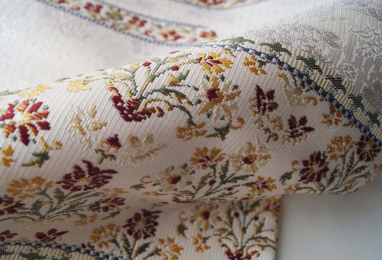 優しいお色地に、抽象花文の