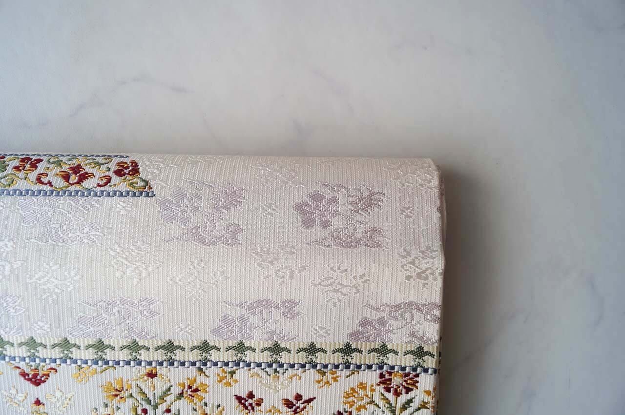 【なごや帯】象牙色 花文抽象柄 なごや帯