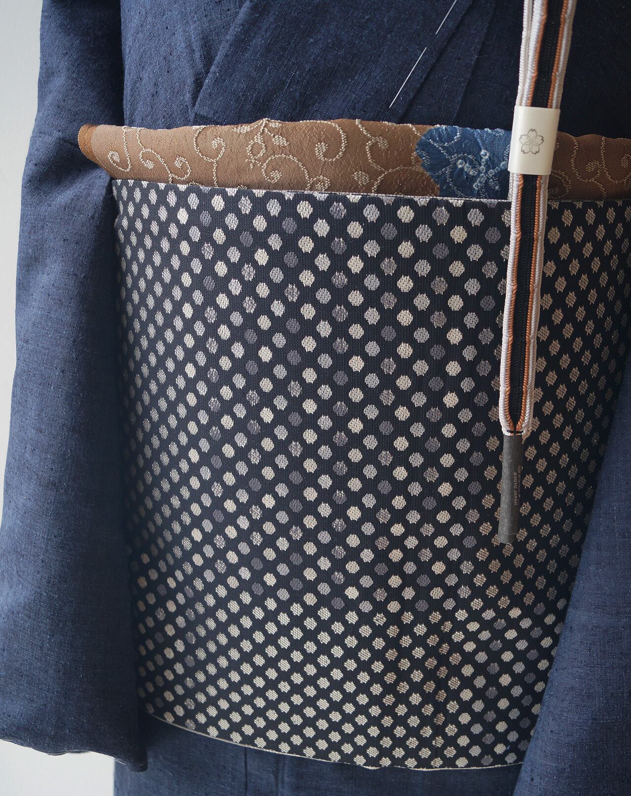 【ふくろ帯】黒地 ドット段文 ふくろ帯