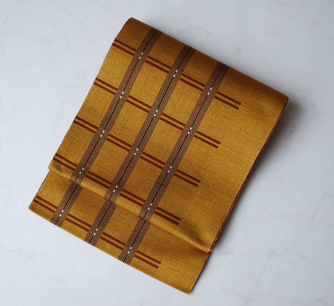 【なごや帯】本場黄八丈 格子柄なごや帯