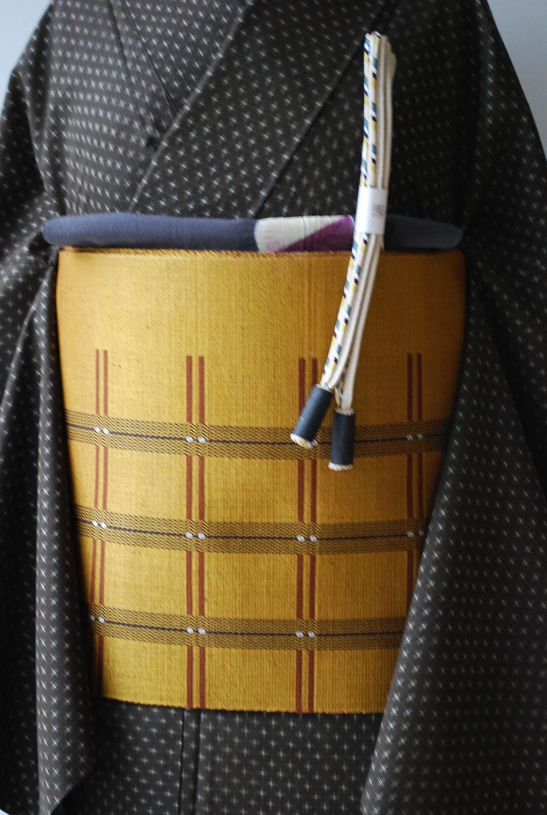 本場黄八丈の八寸なごや帯でございます。