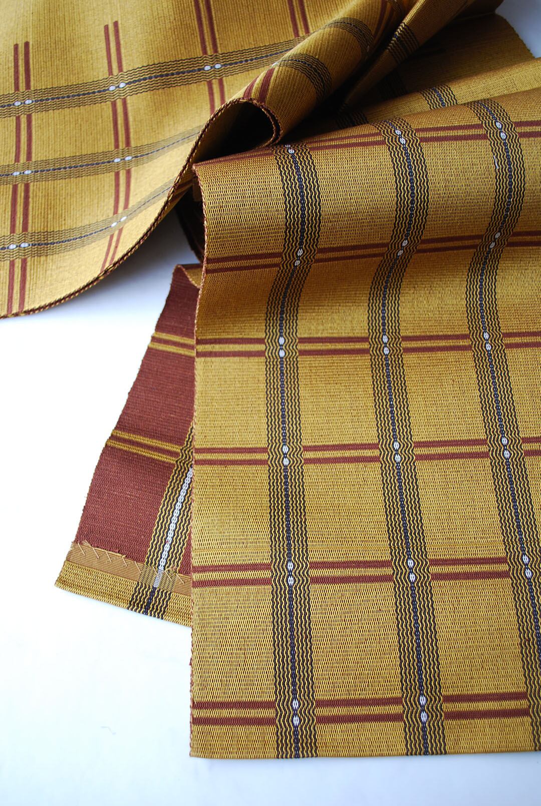 草木染めの自然な色合いと、しっかりとした織りの質感。