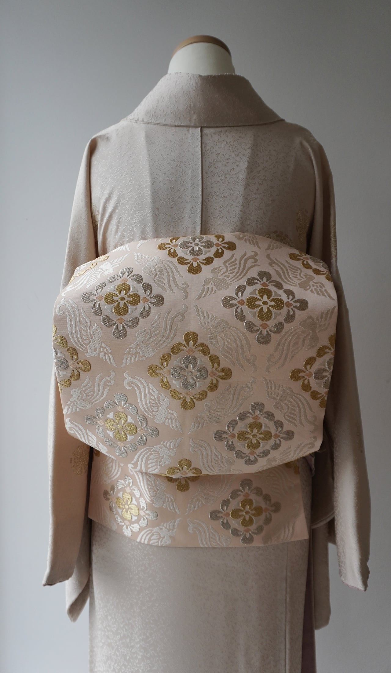 花菱文様を囲むように白い鳳凰が優雅に舞う