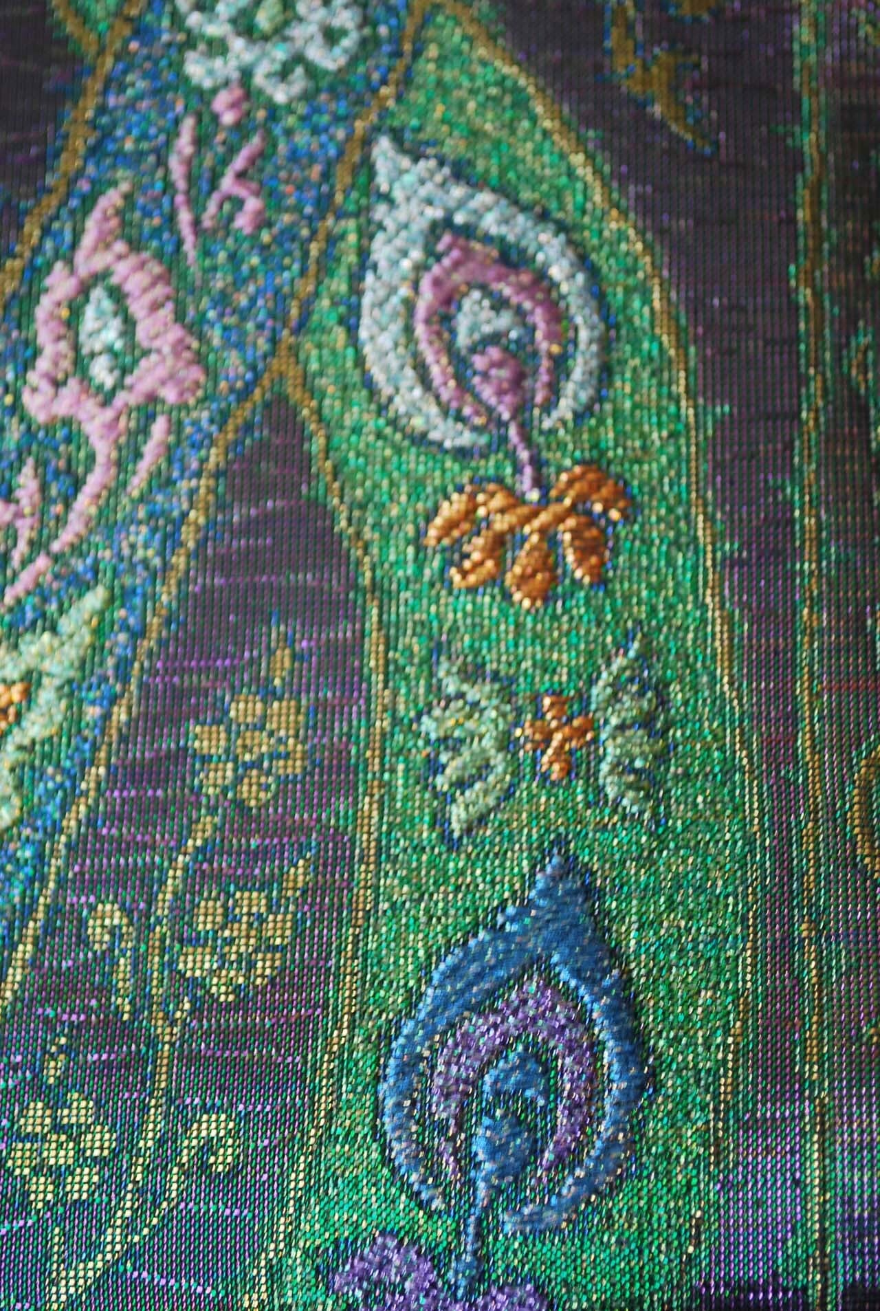 神秘的な玉虫色の袋帯です。